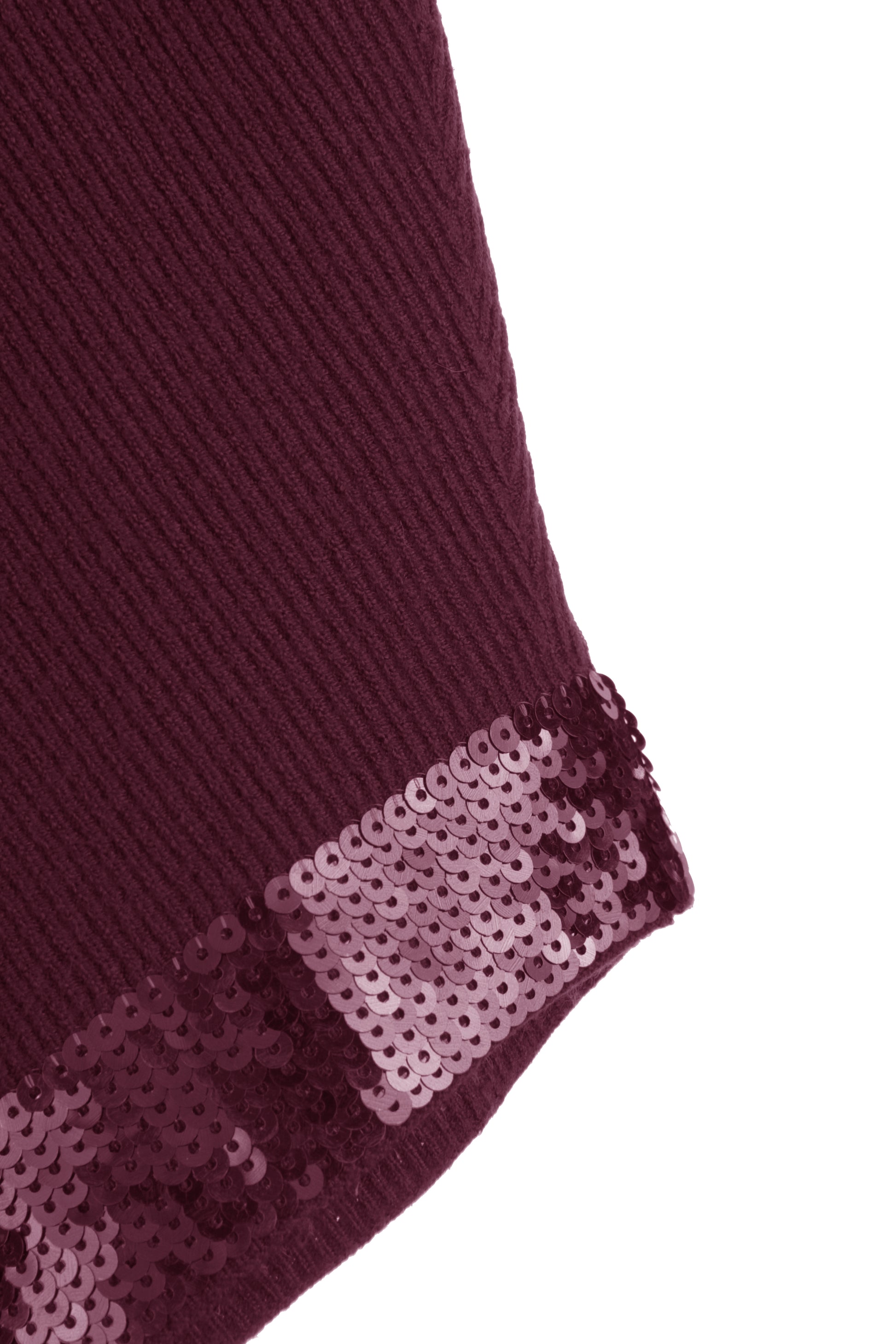 The top features a beautifully crafted ribbed knit design with elegant 3/4 sleeves, complemented by delicate sequin trim detailing.