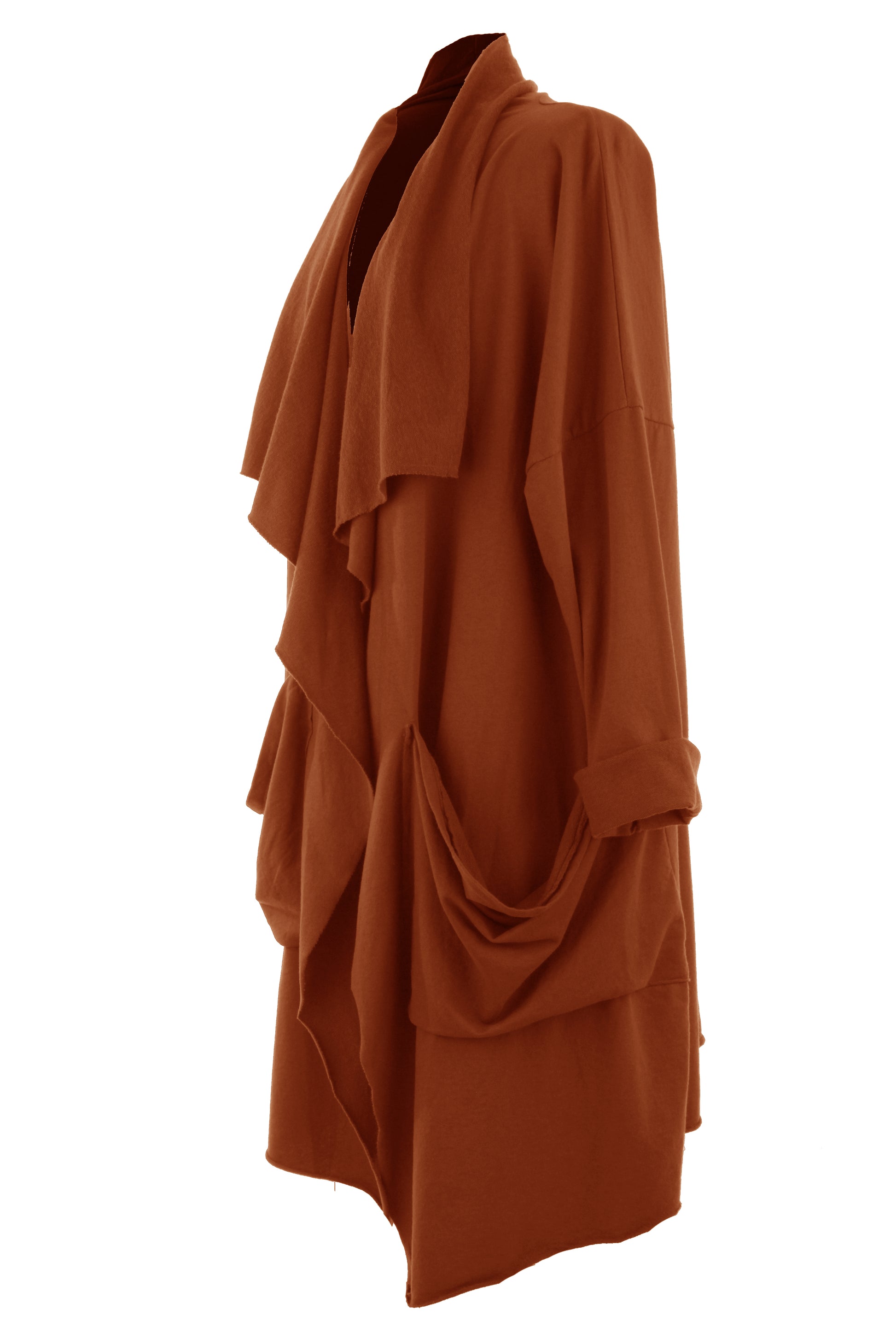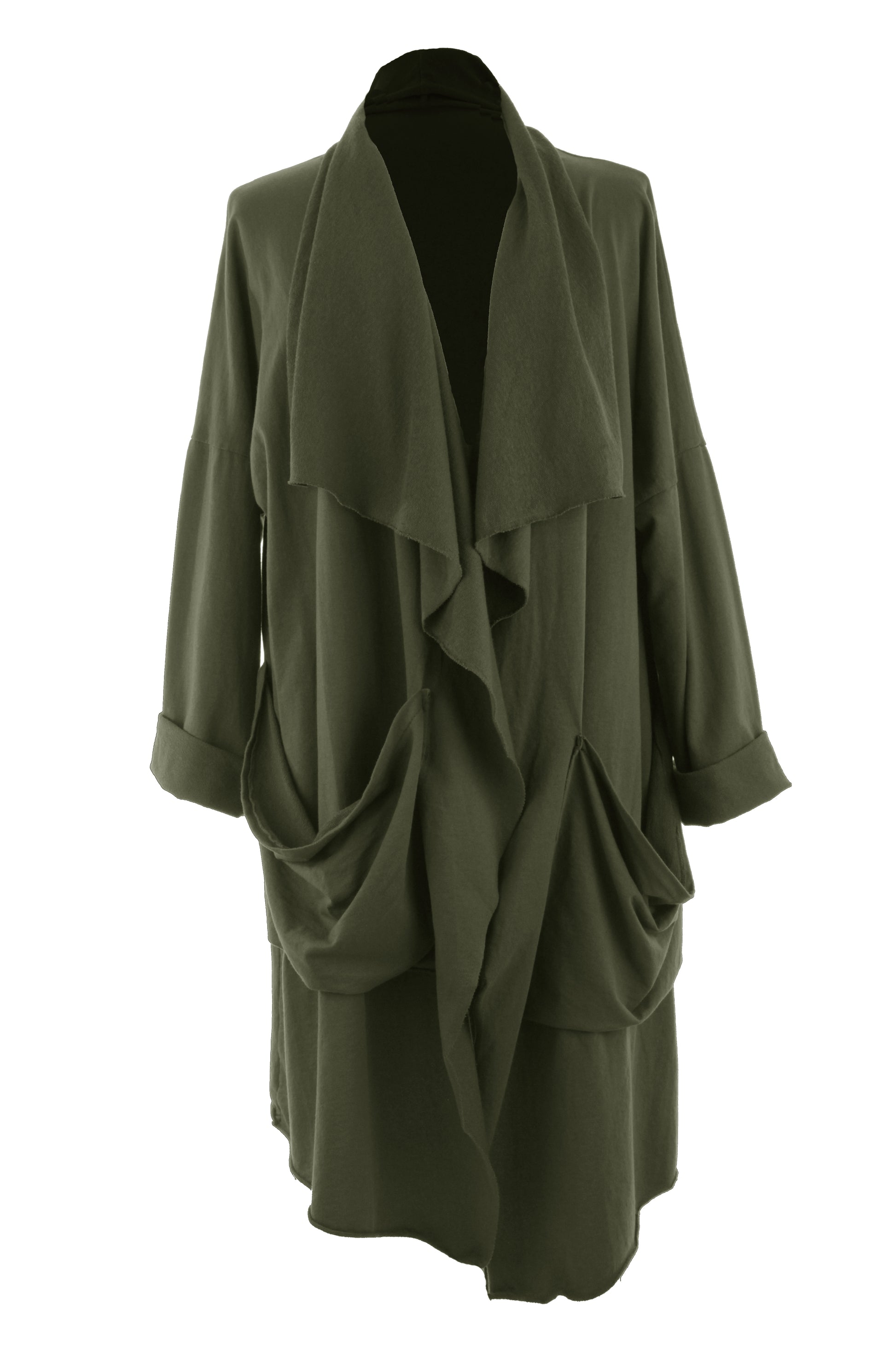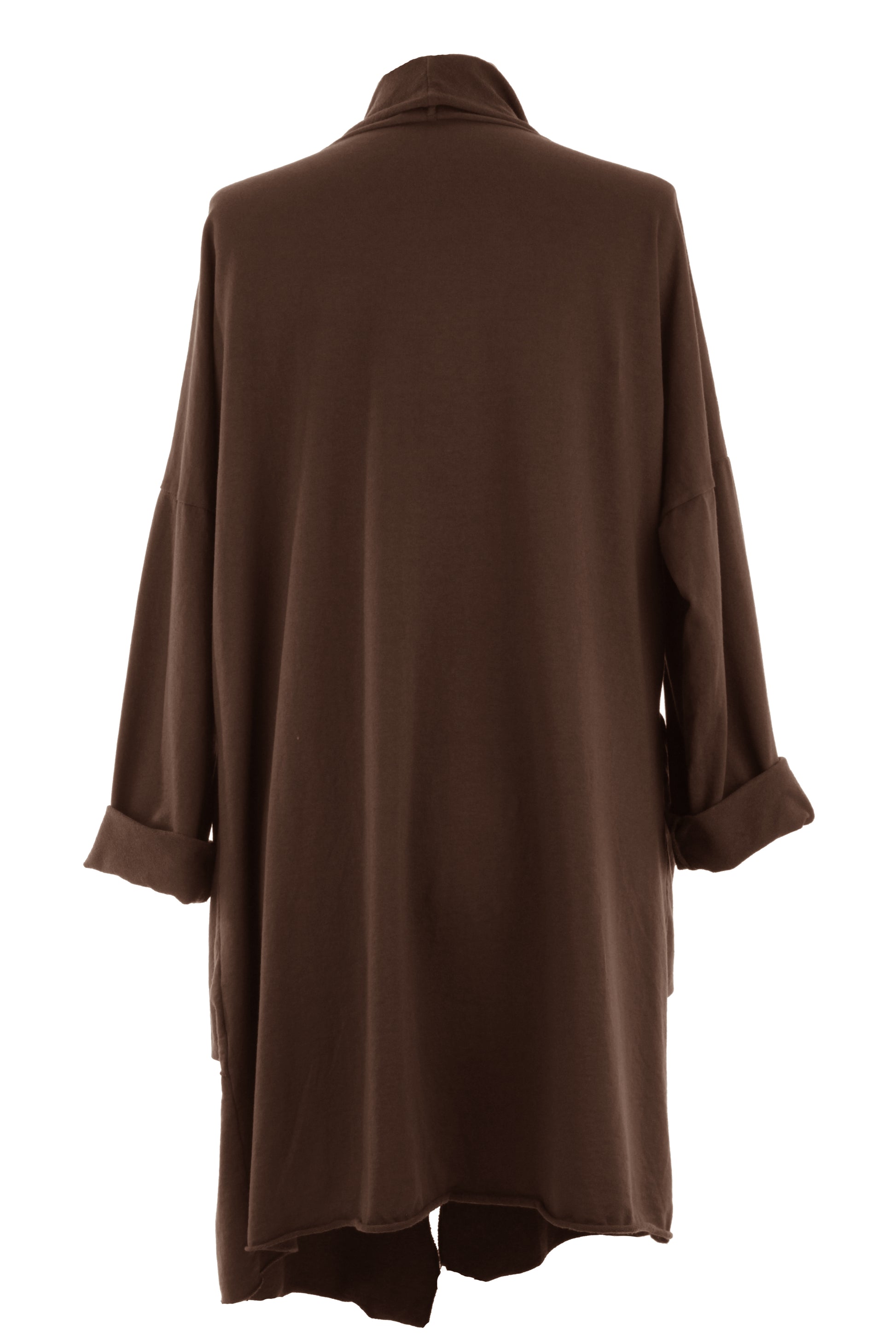 Crafted from high-quality jersey material, this waterfall style open front jacket drapes beautifully, creating a flattering silhouette.