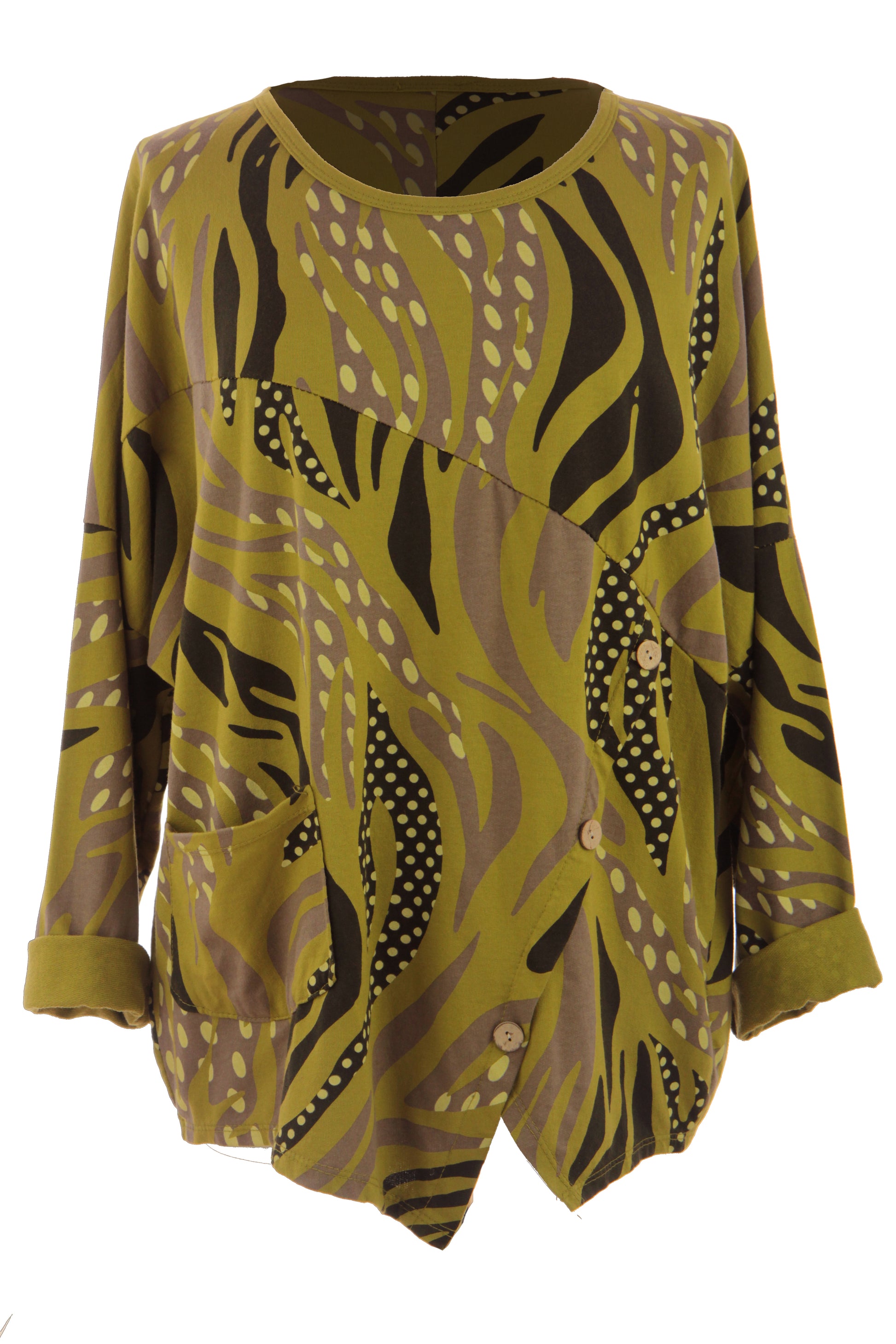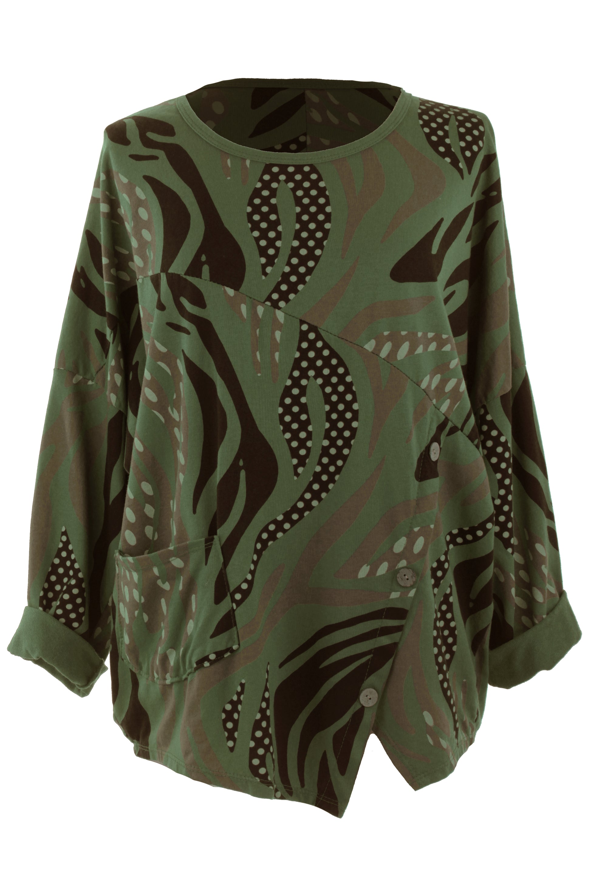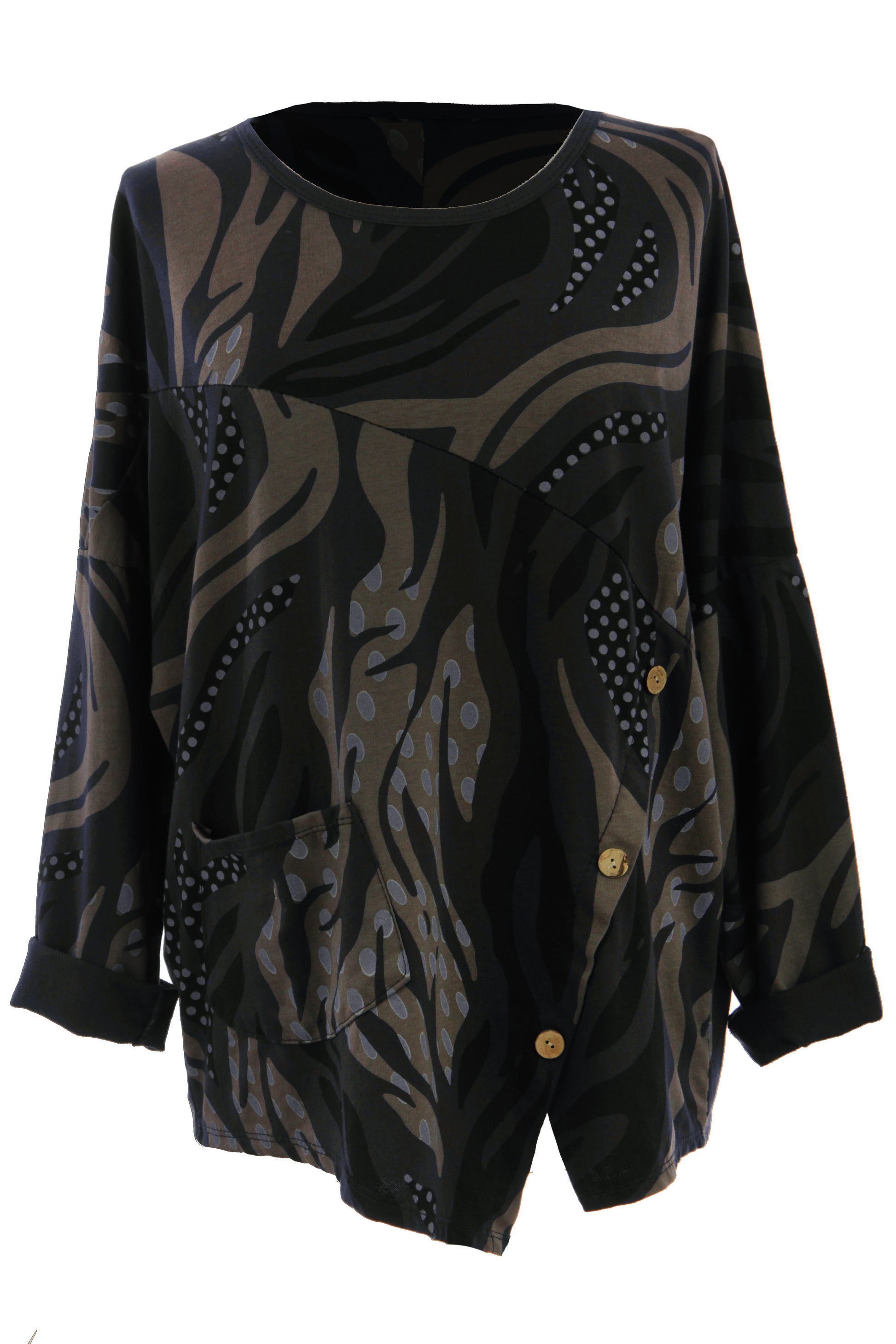 The batwing design adds a touch of whimsy, while the three-button detail and front pocket lend a chic aesthetic.