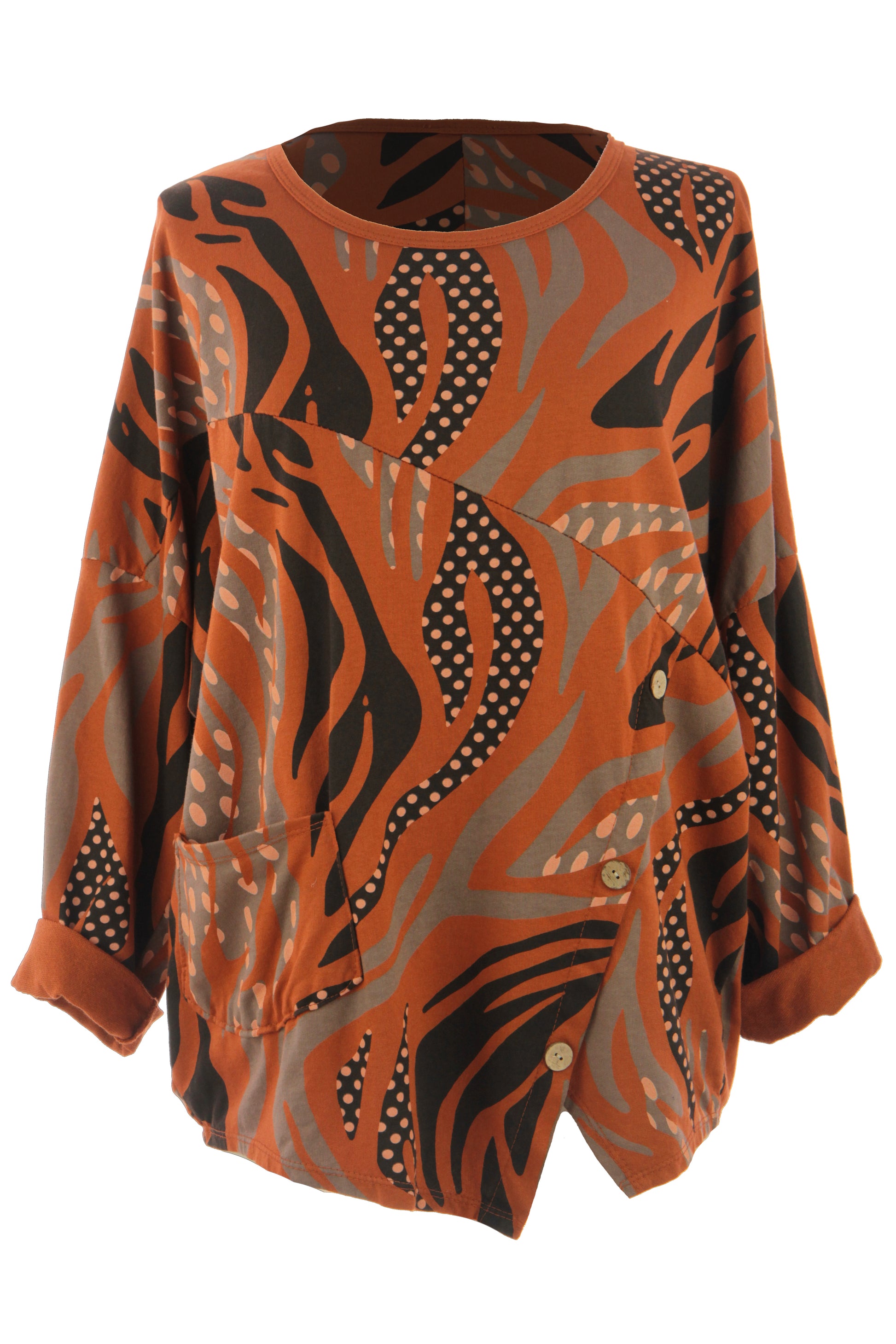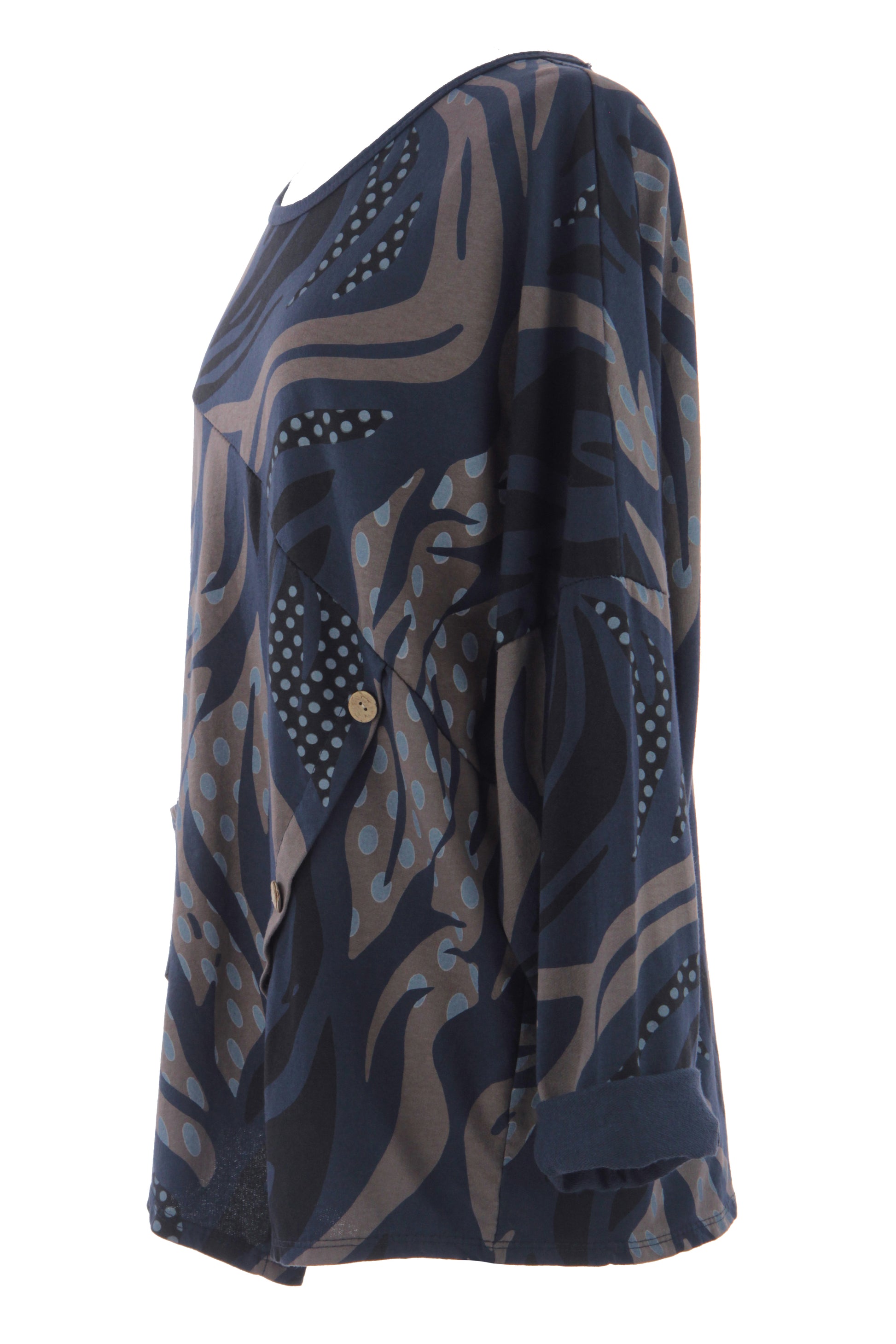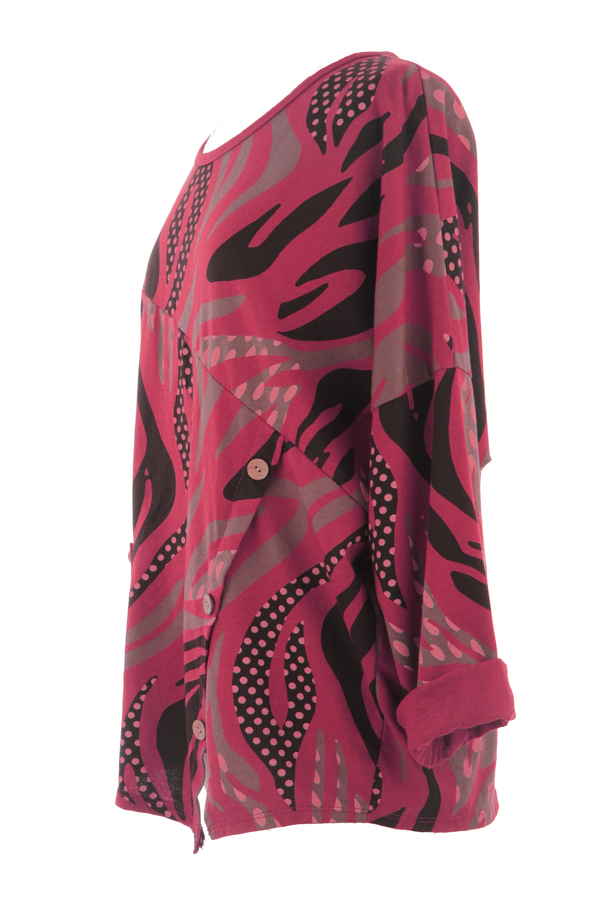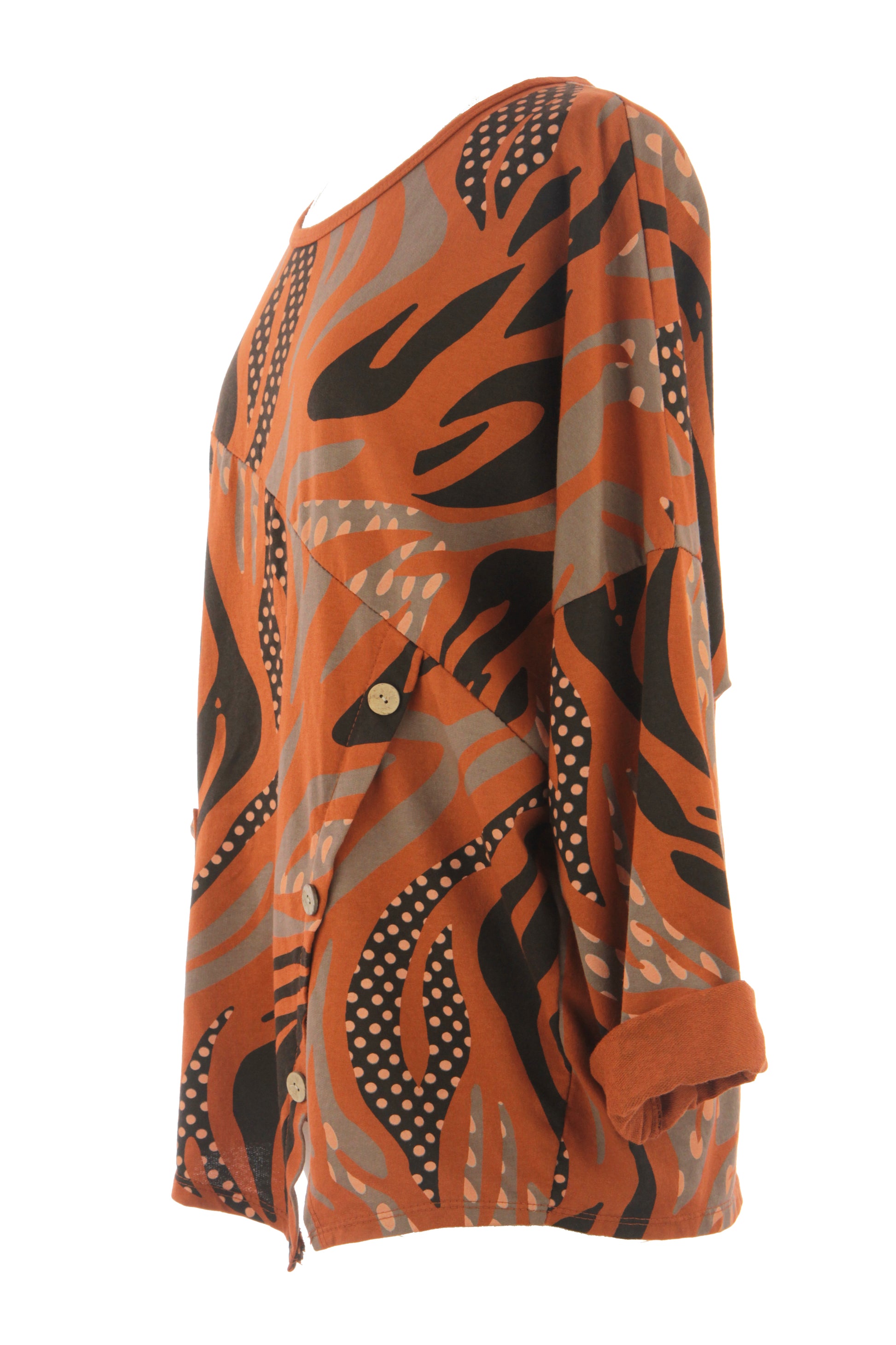 This versatile scoop neck top features an eye-catching printed pattern that adds visual interest.