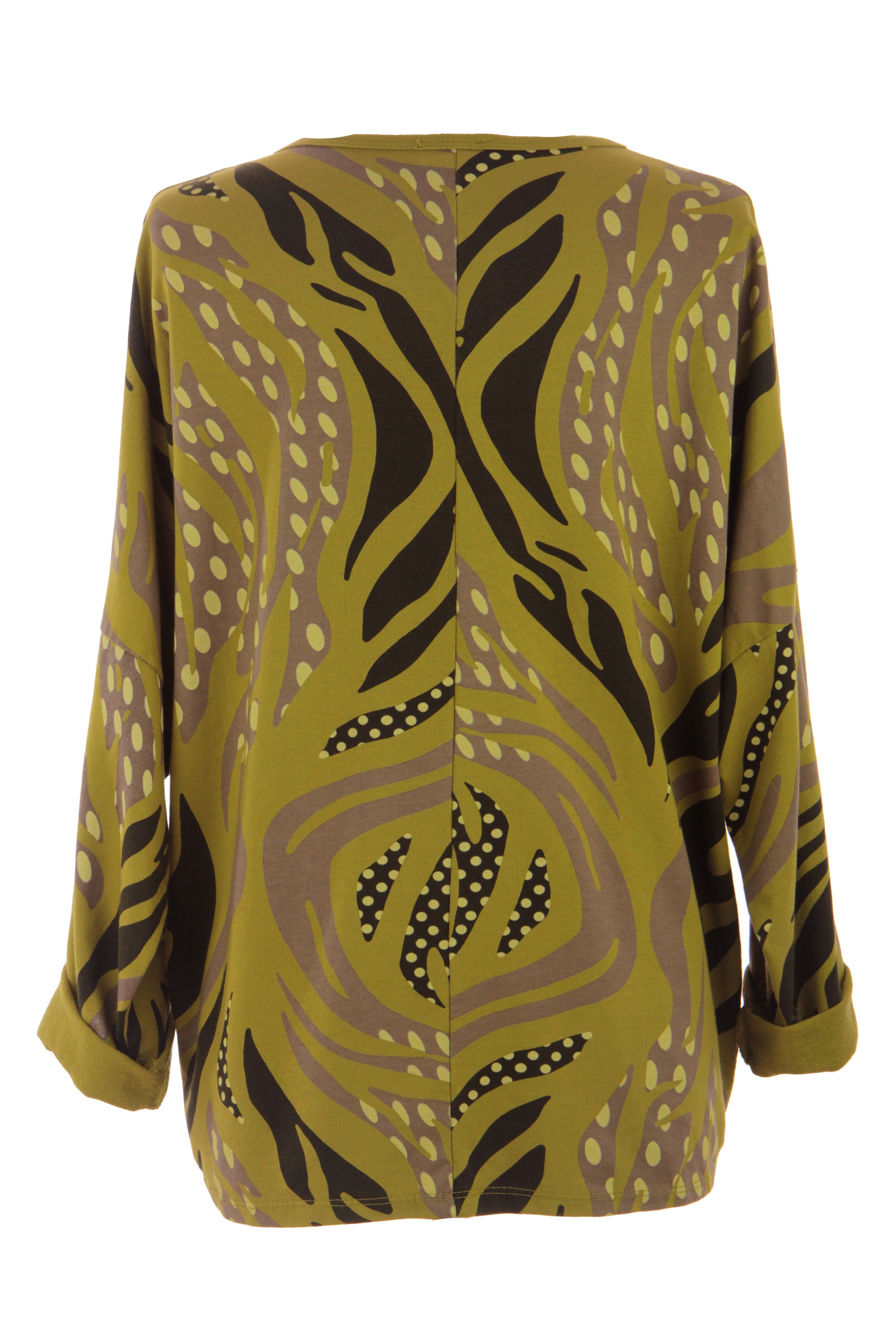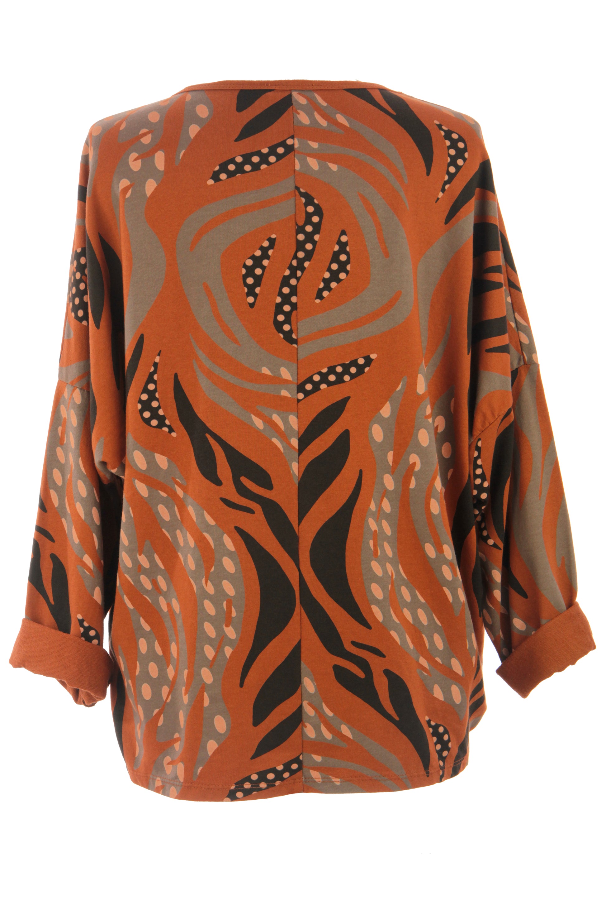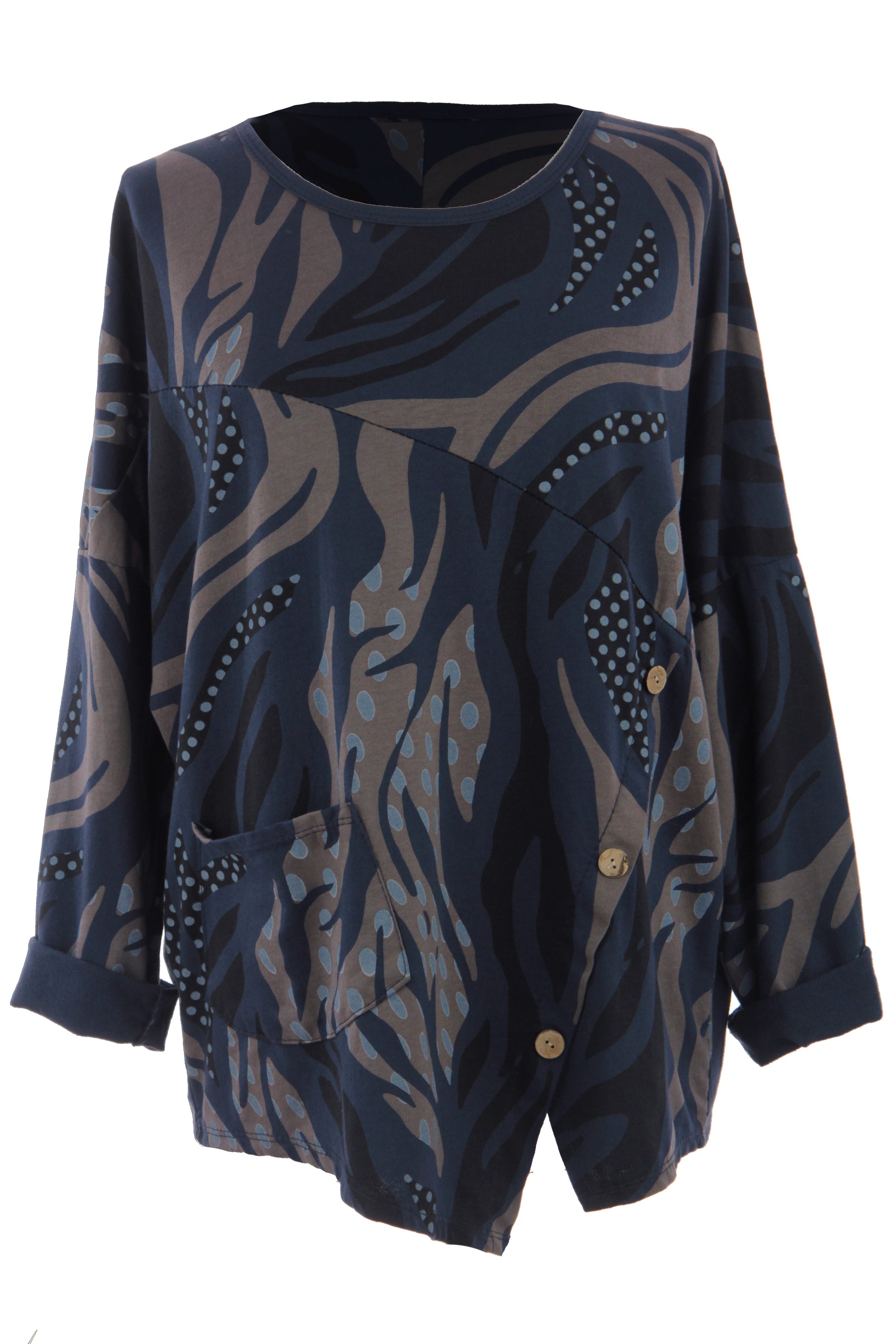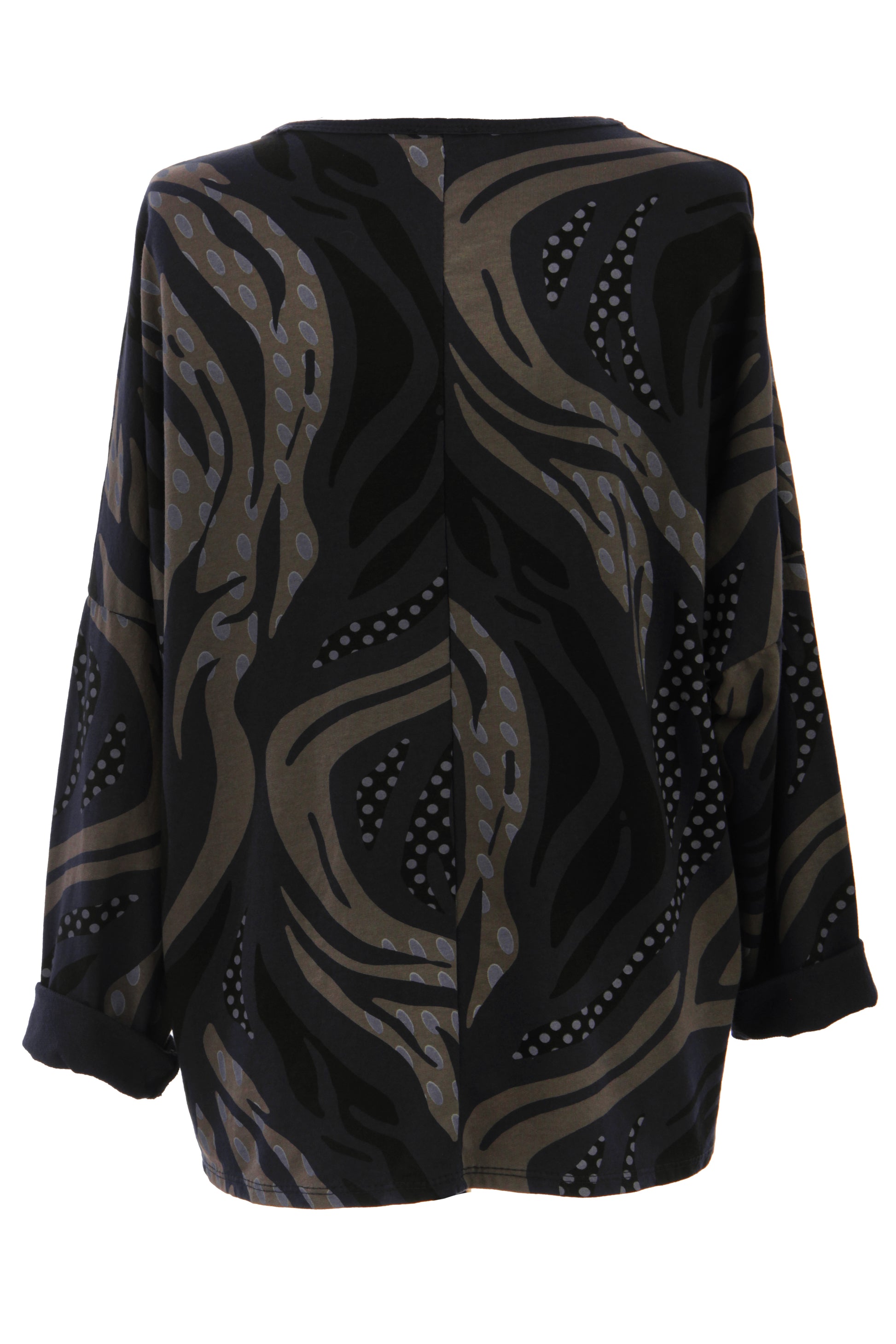 This versatile scoop neck top features an eye-catching printed pattern that adds visual interest.