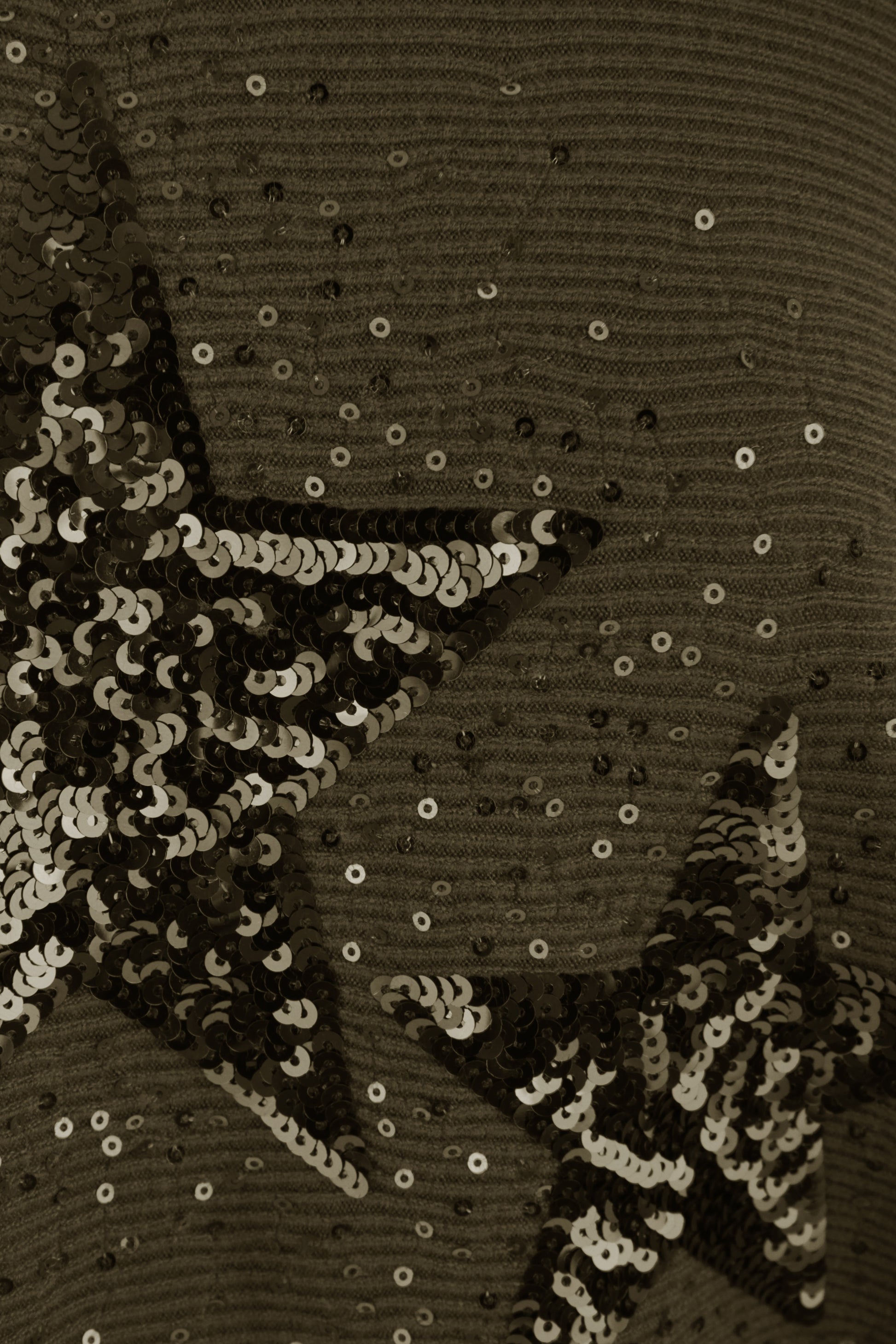 The standout feature is the beautiful sequin star design that adds a touch of sparkle and glamour to this casual piece.