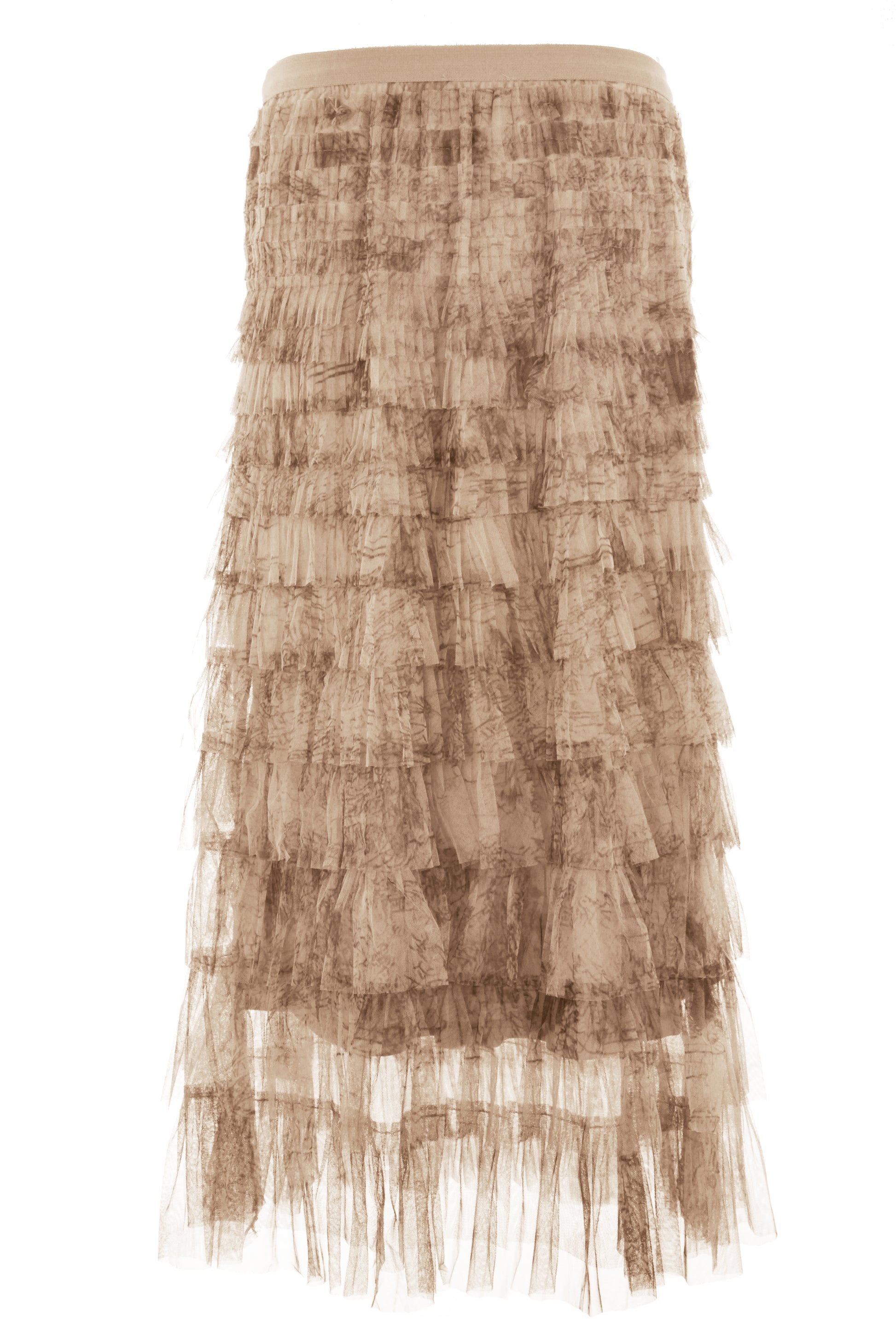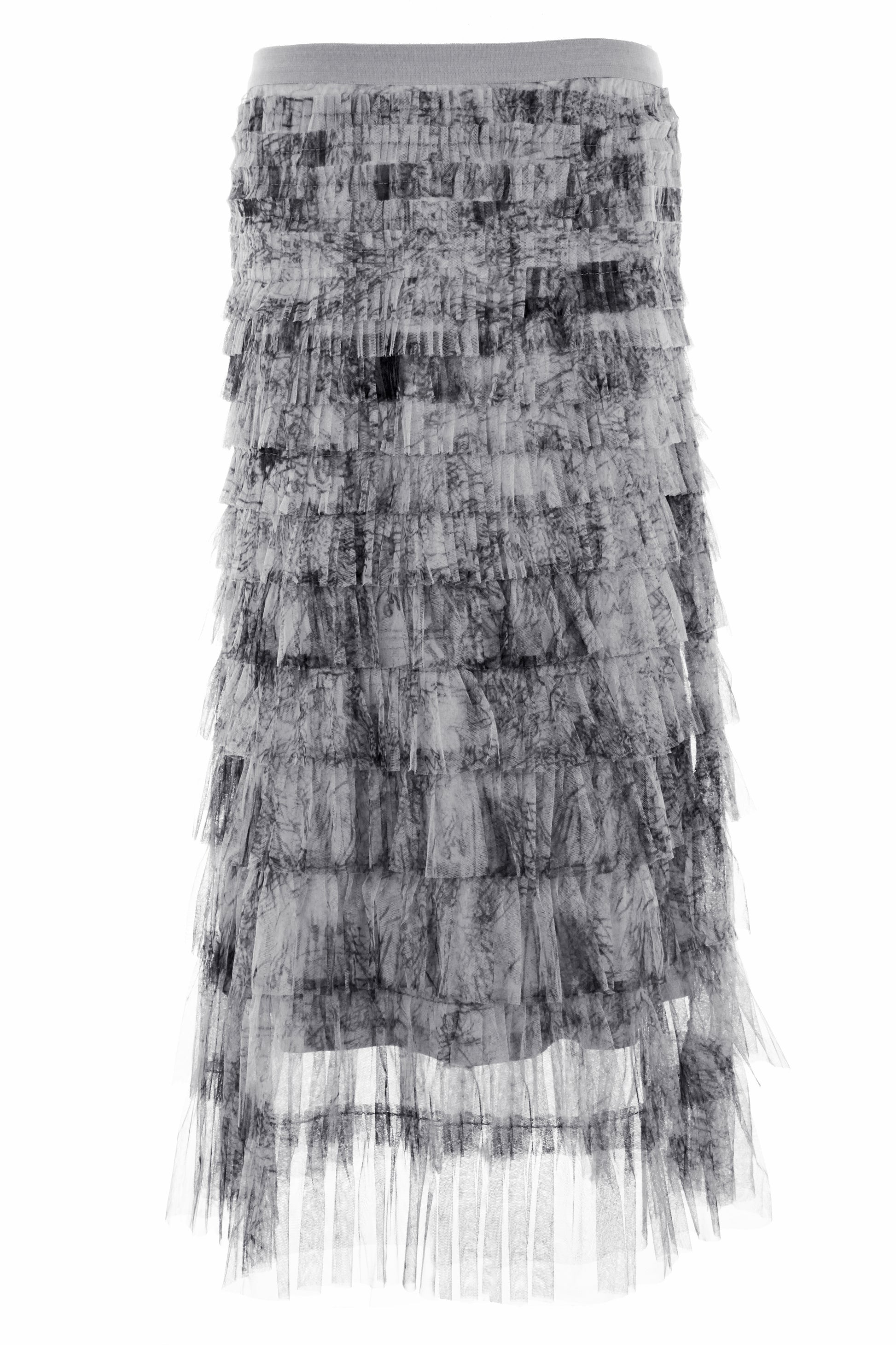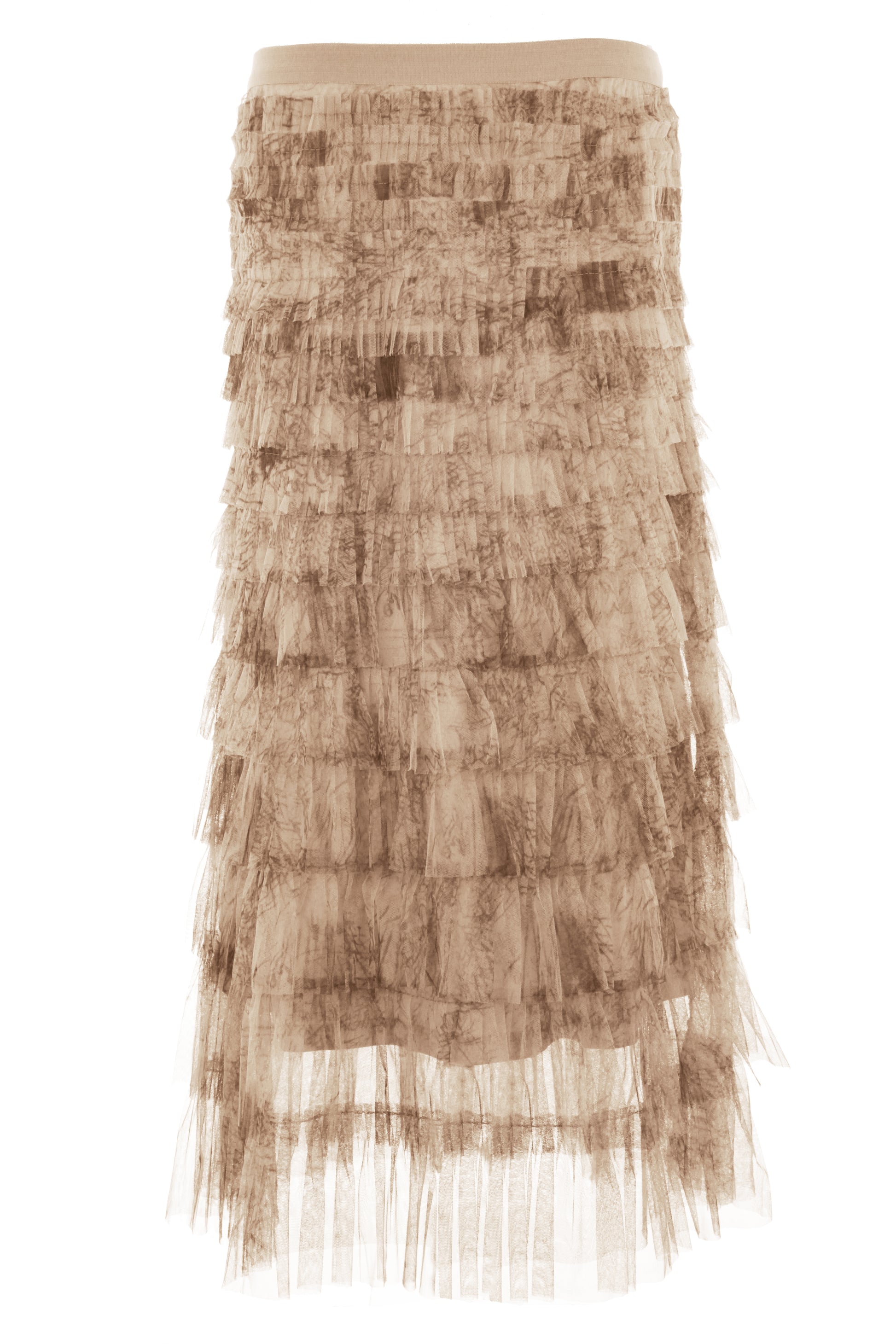 - Prepare to serve the ultimate chic look with this stunning A-line skirt boasting rara pleats made of mesh in a soft hue.