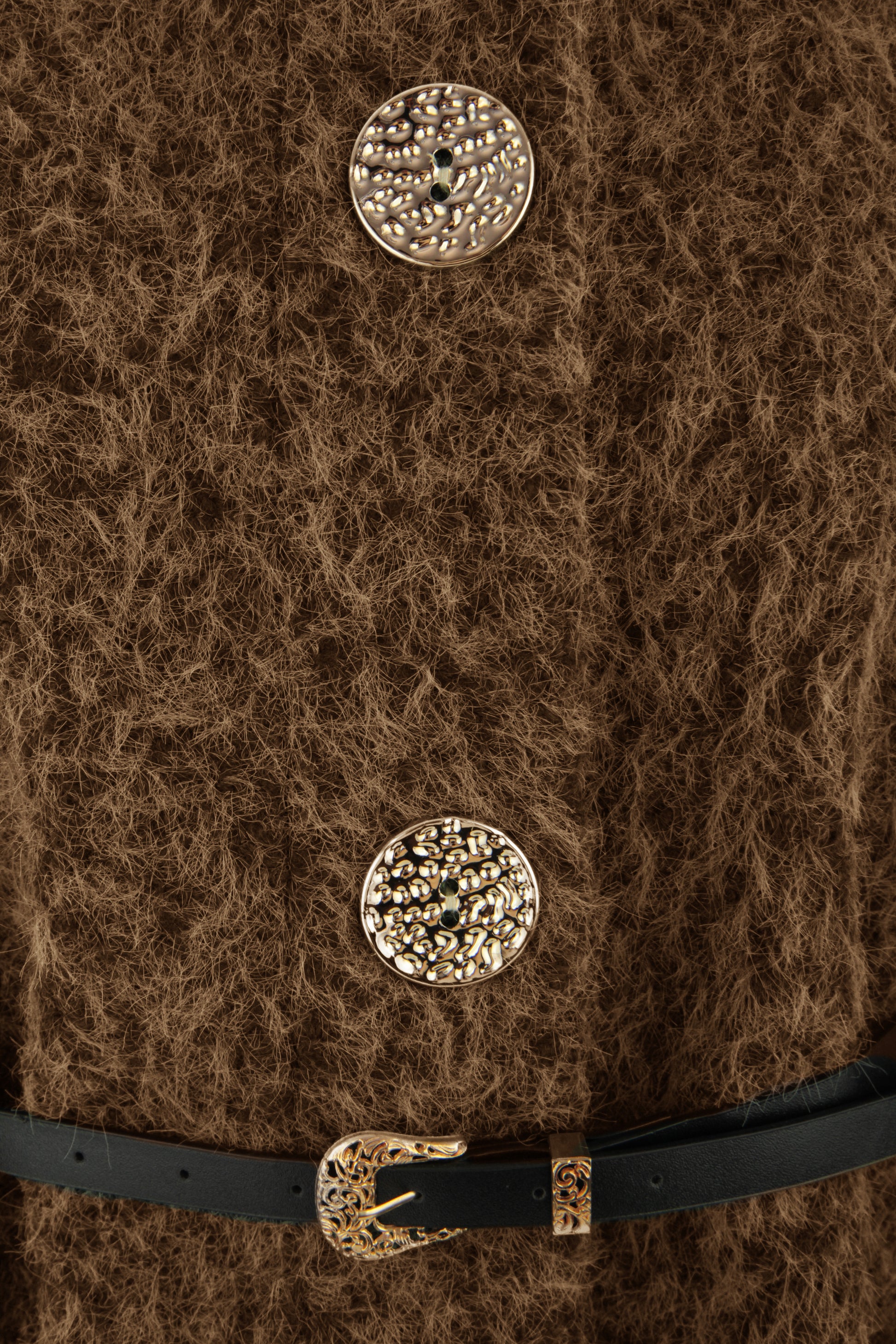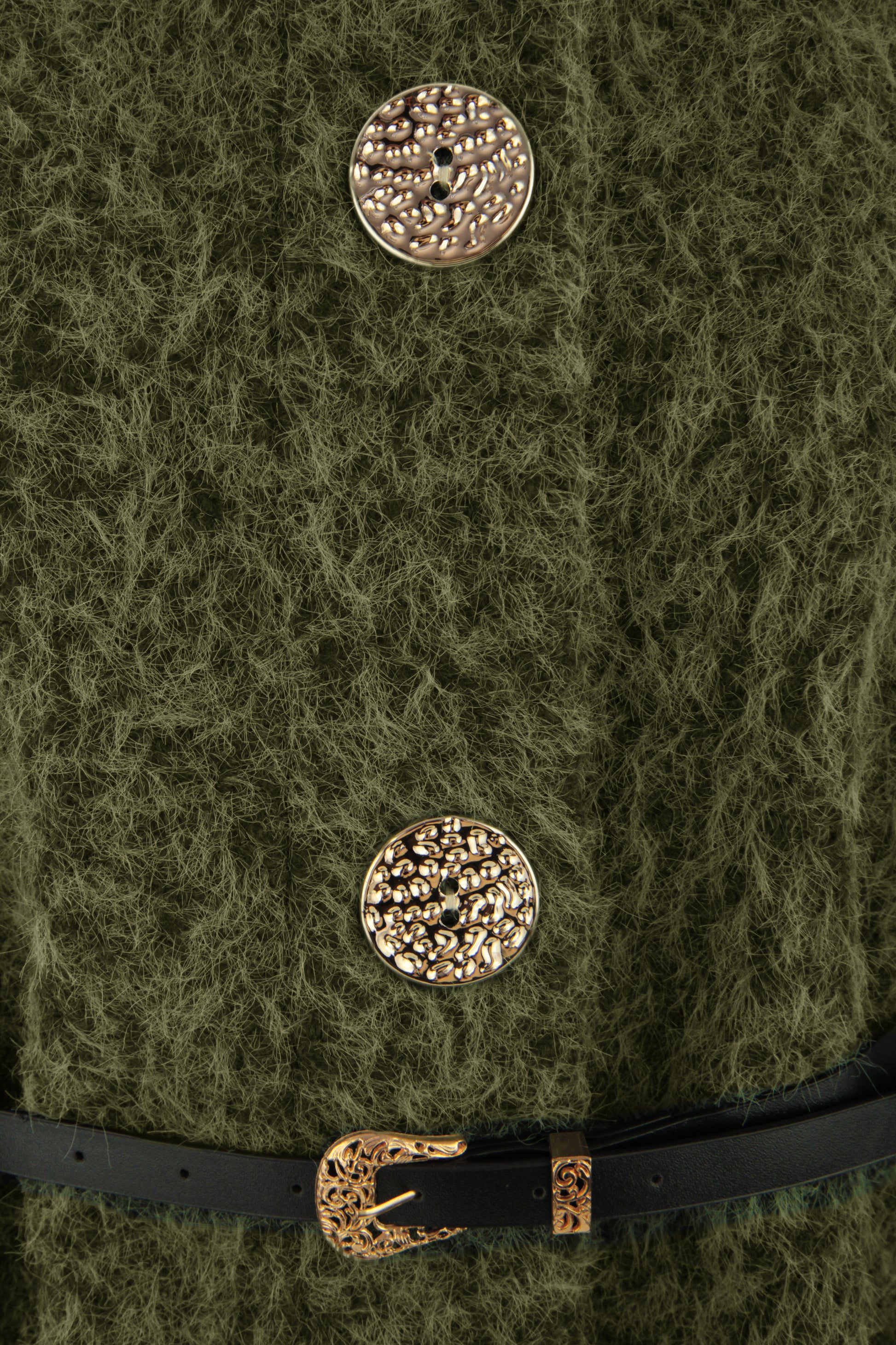 Featuring three buttons opening and a removable sleek black belt to define the waist, this versatile piece combines comfort with contemporary flair.