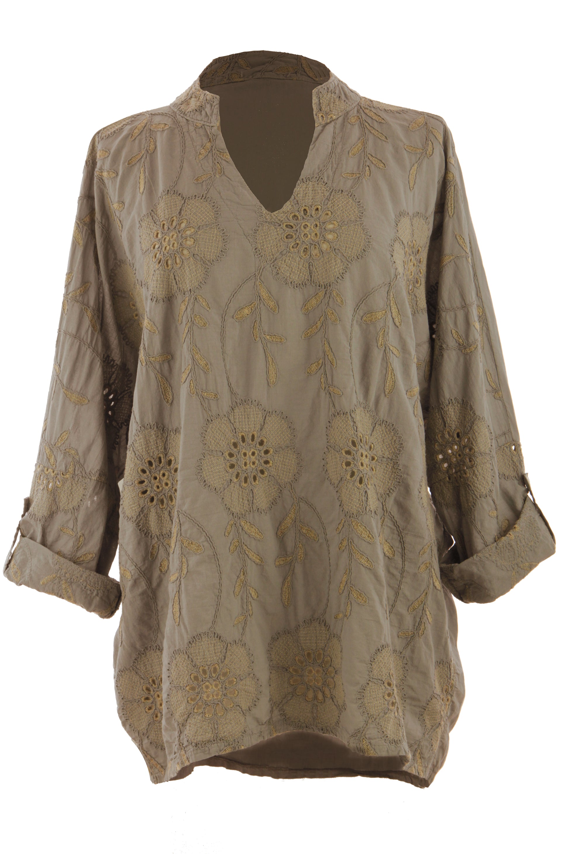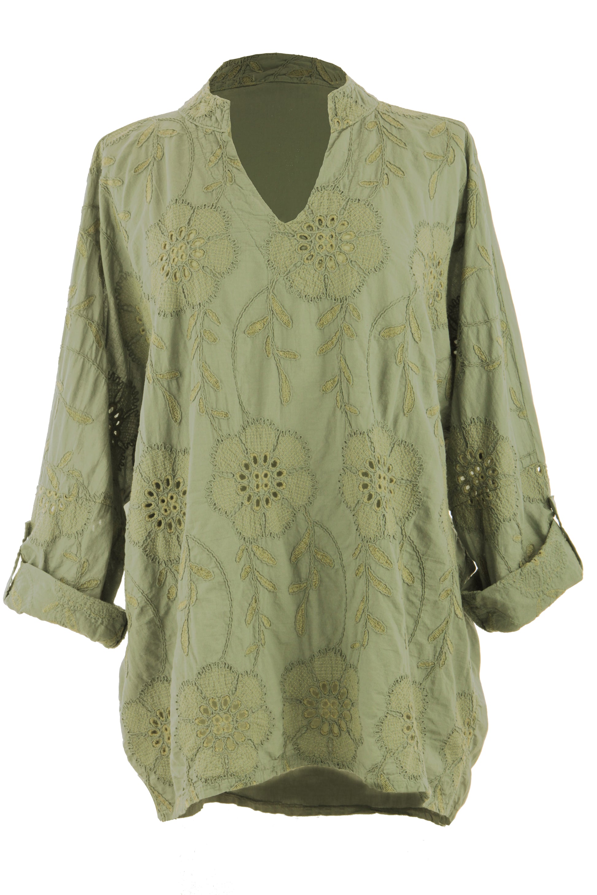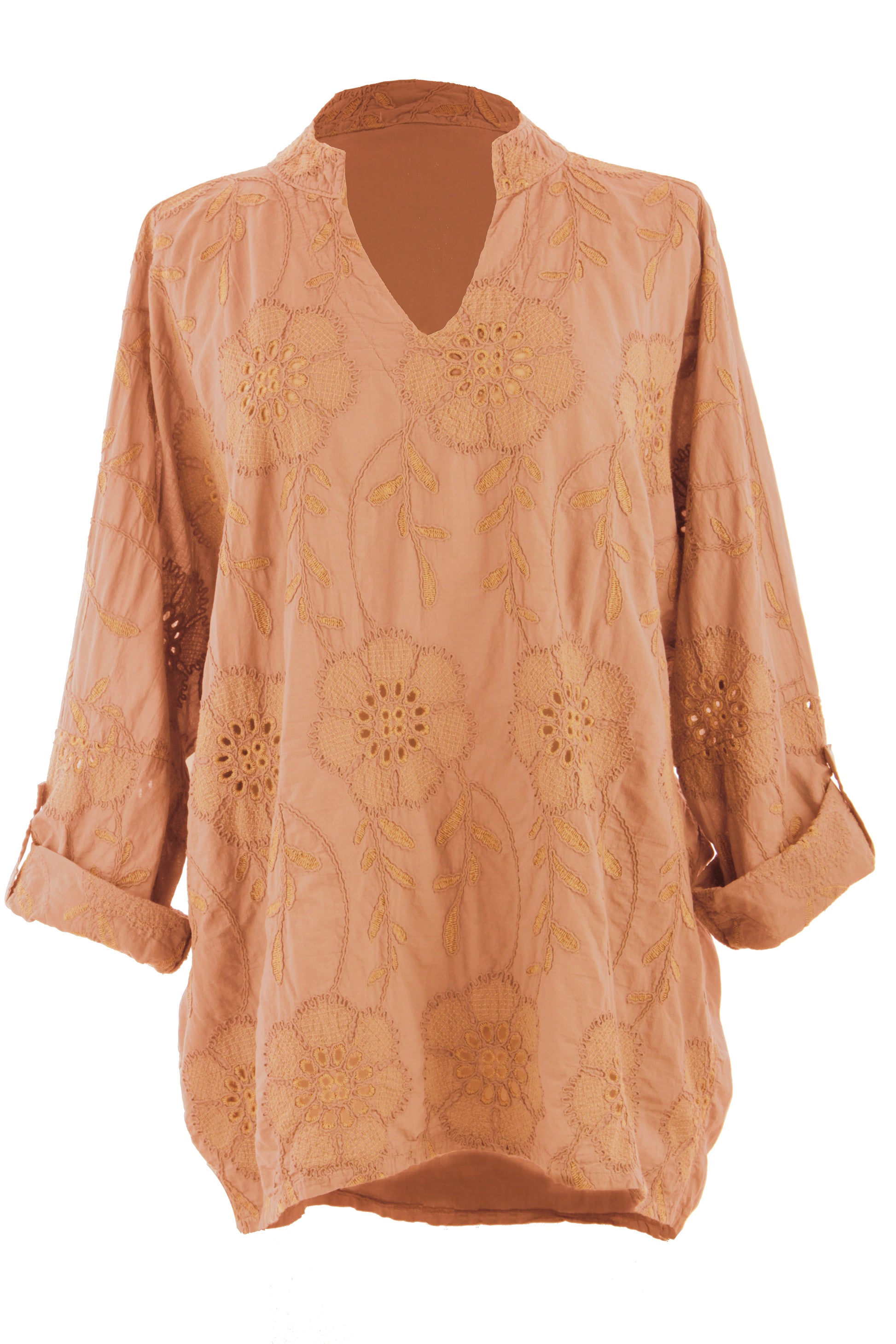 Elevate your wardrobe with this stunning Italian-inspired ladies' top, featuring exquisite broderie anglaise embroidery in an elegant floral pattern.