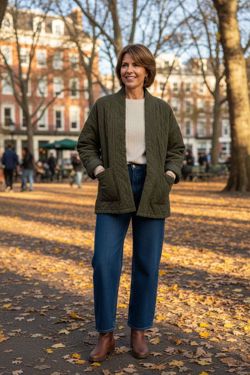 Elevate your autumn and winter wardrobe with this sophisticated quilted corduroy jacket.
