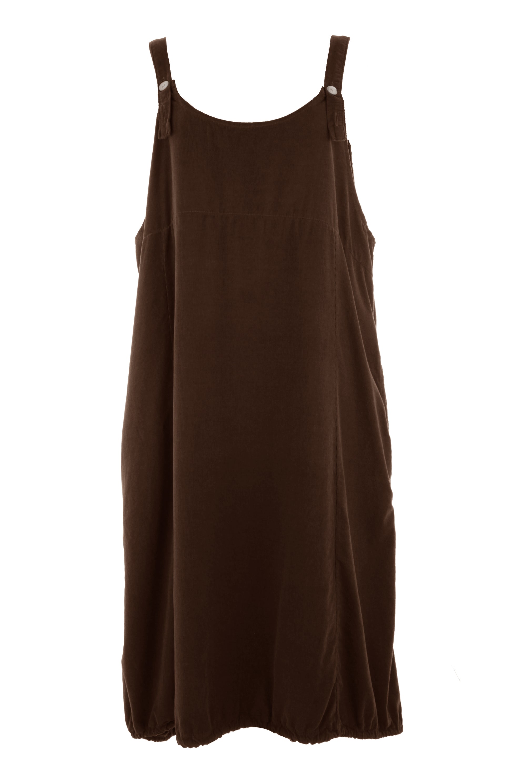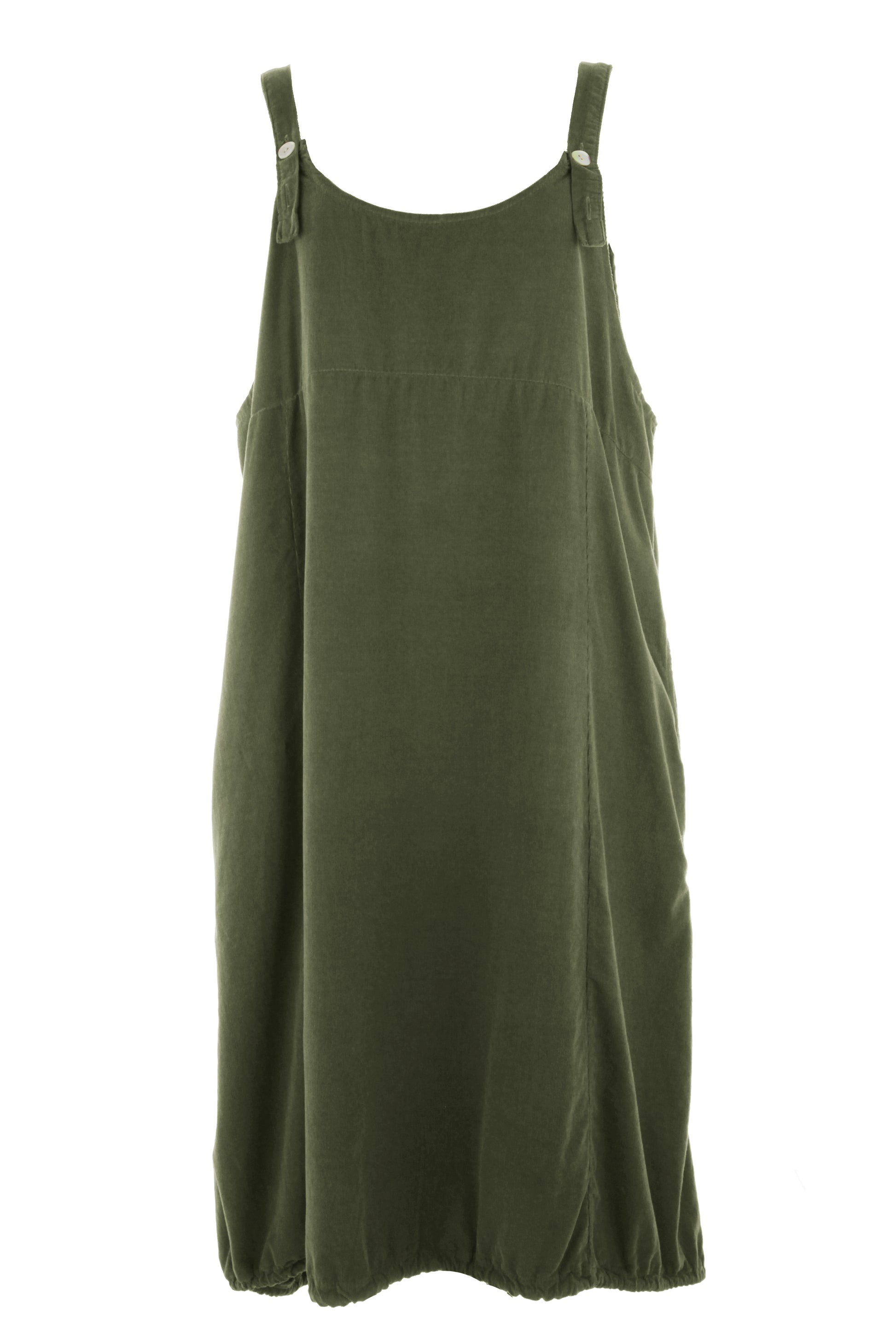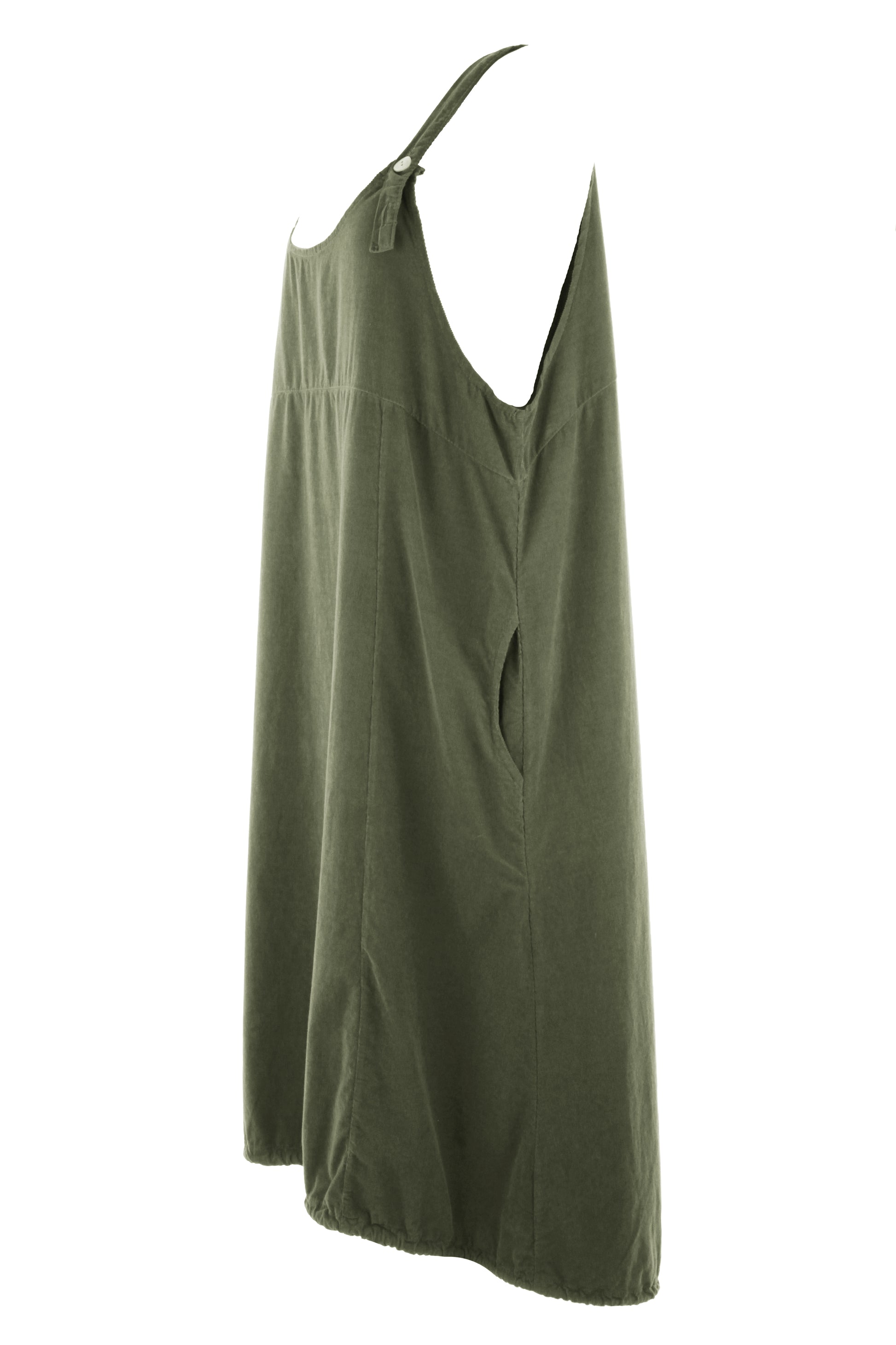 Effortlessly chic and comfortable, this Italian corduroy pinafore midi dress is a versatile wardrobe staple.