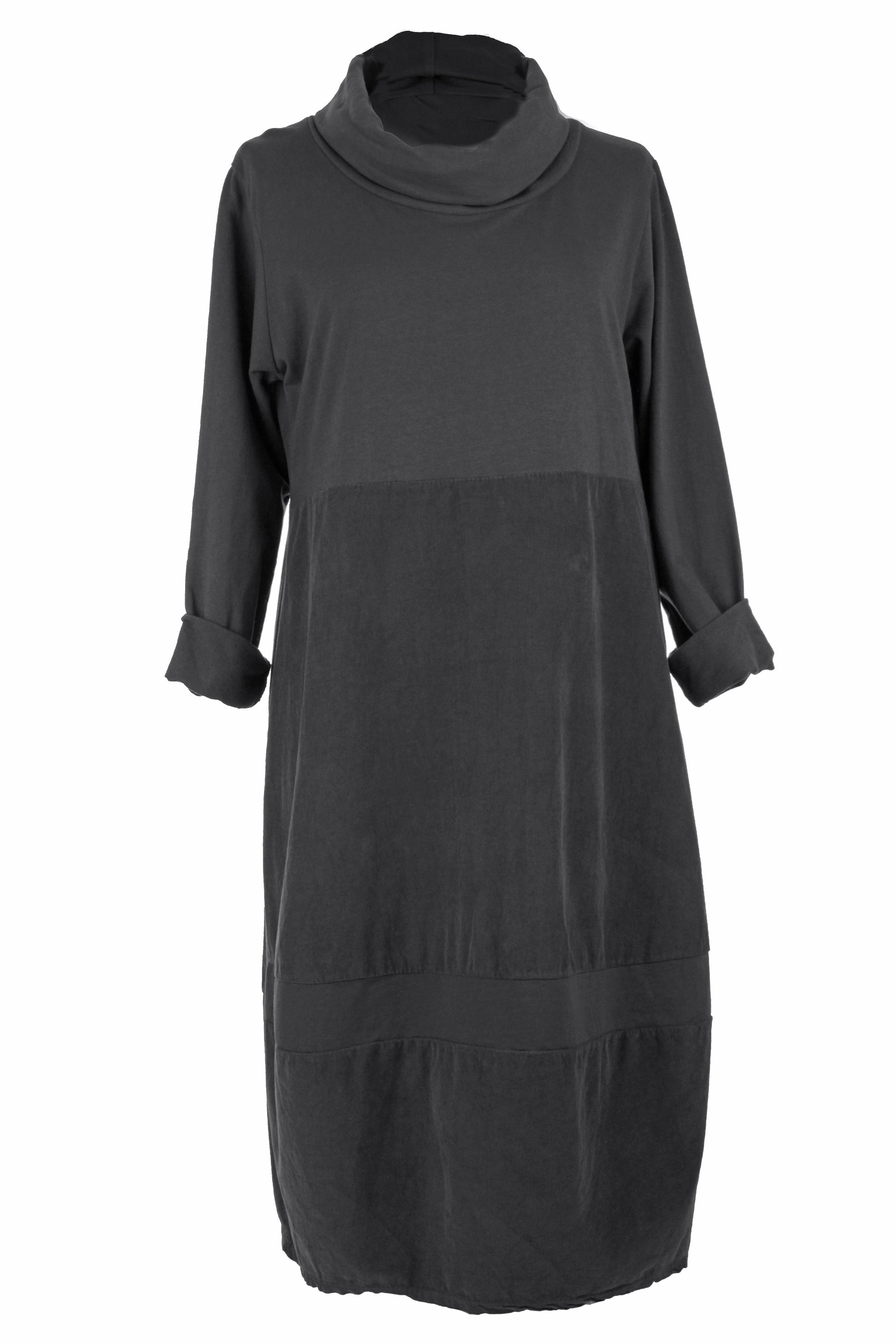 Crafted from soft cotton fabric with stylish corduroy panel detailing, this dress combines comfort with contemporary design.