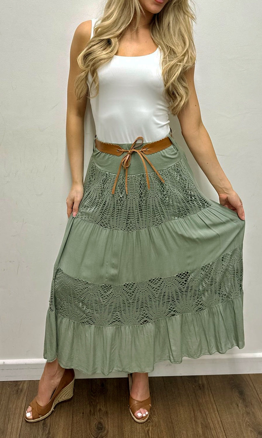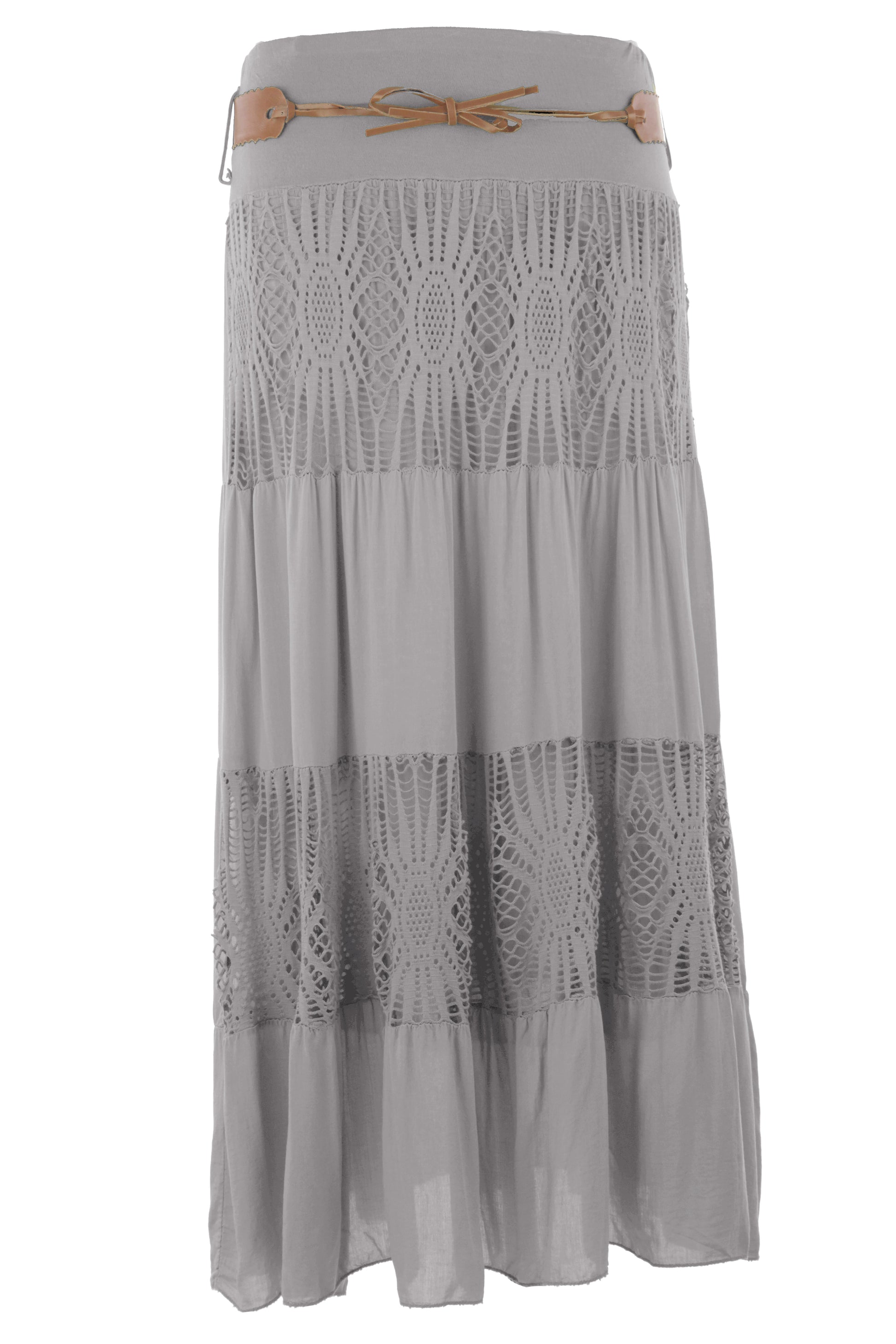 Crochet Tiered Belt Midi Skirt