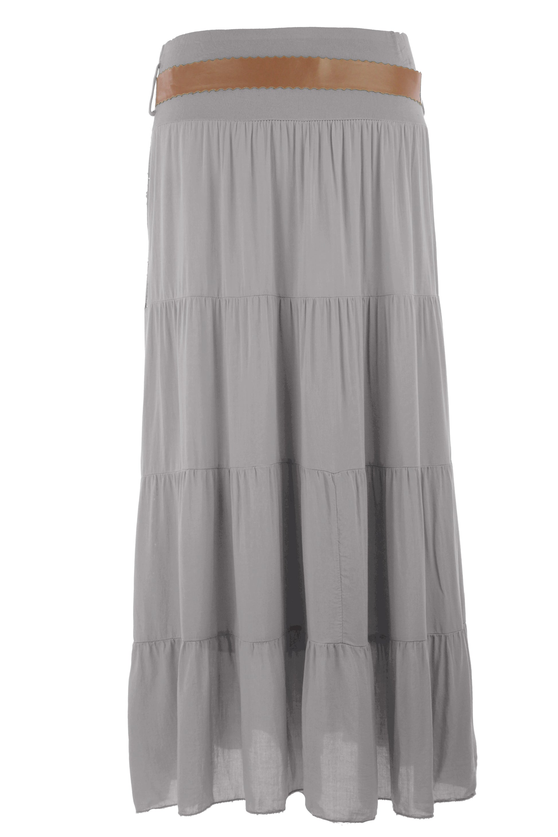 Inspired by laid-back lifestyle, this breezy skirt has beautiful crochet panels in tiered design, crafted from a super soft fabric in a complementary hue.