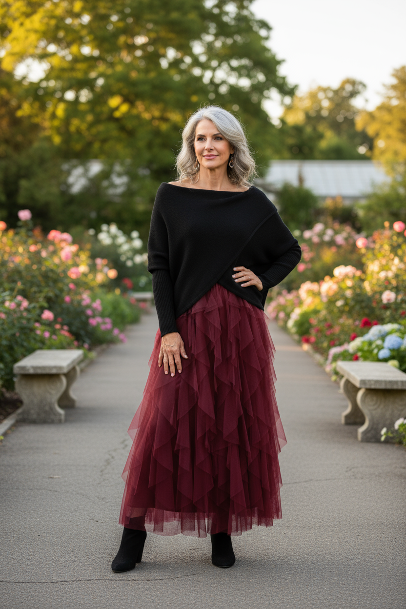 - Looks great with our skirts, trousers or jeans.