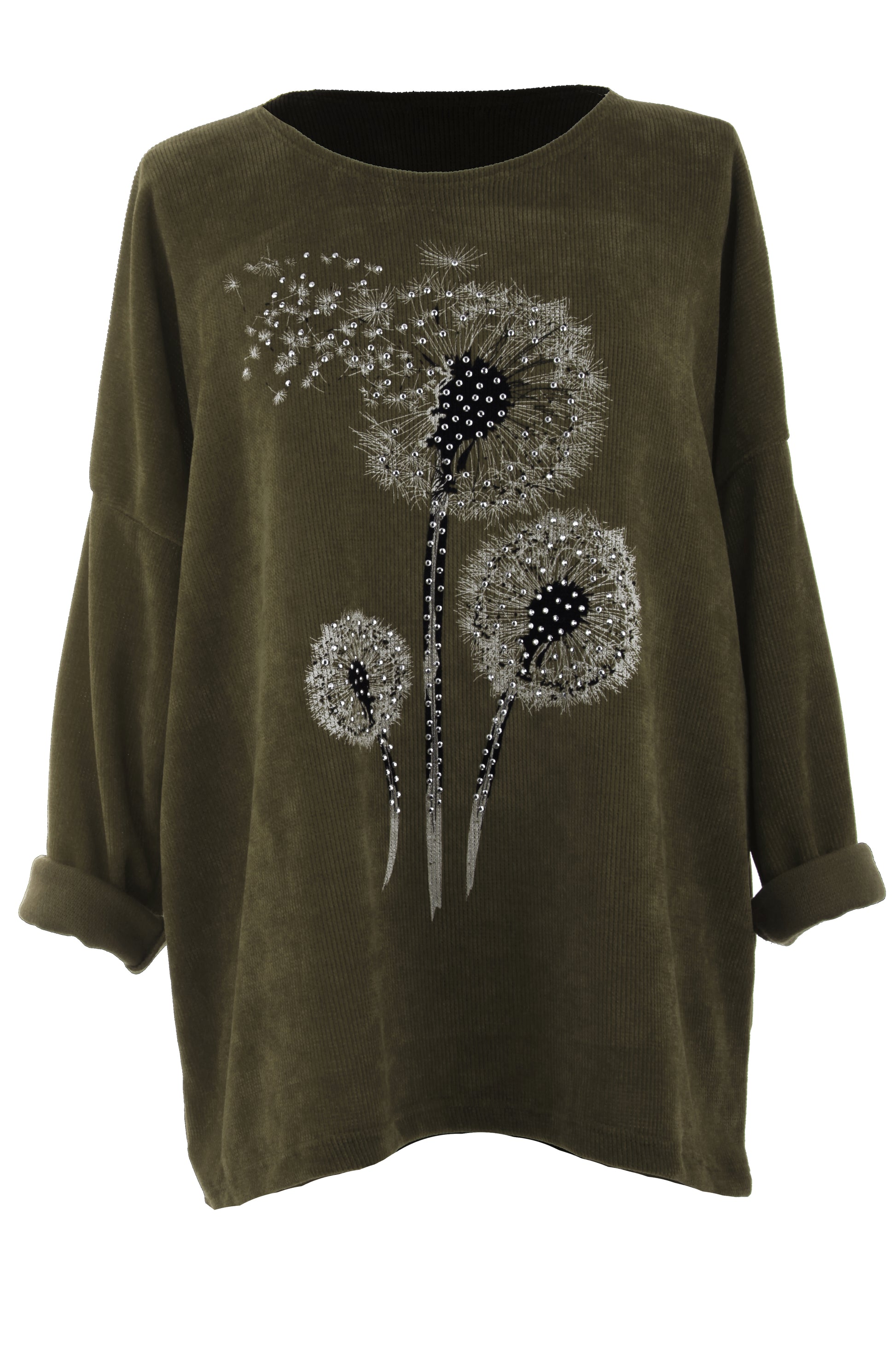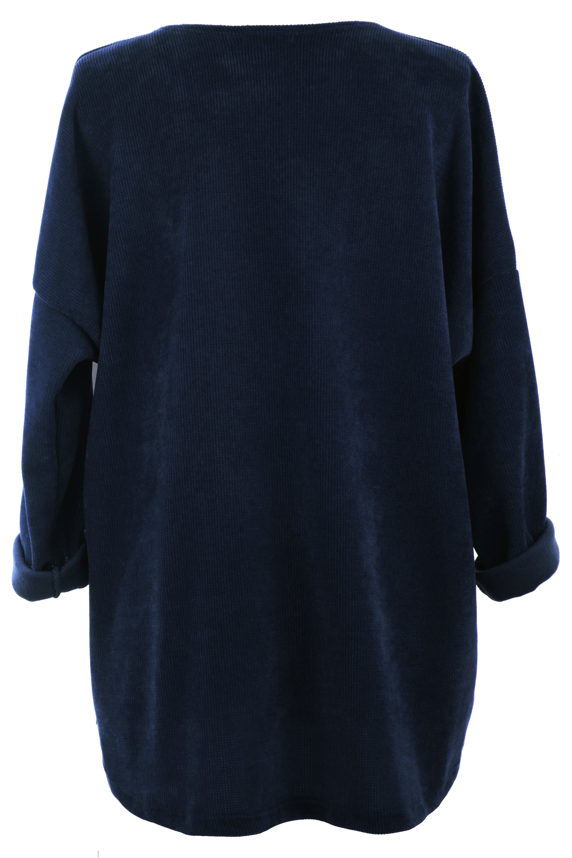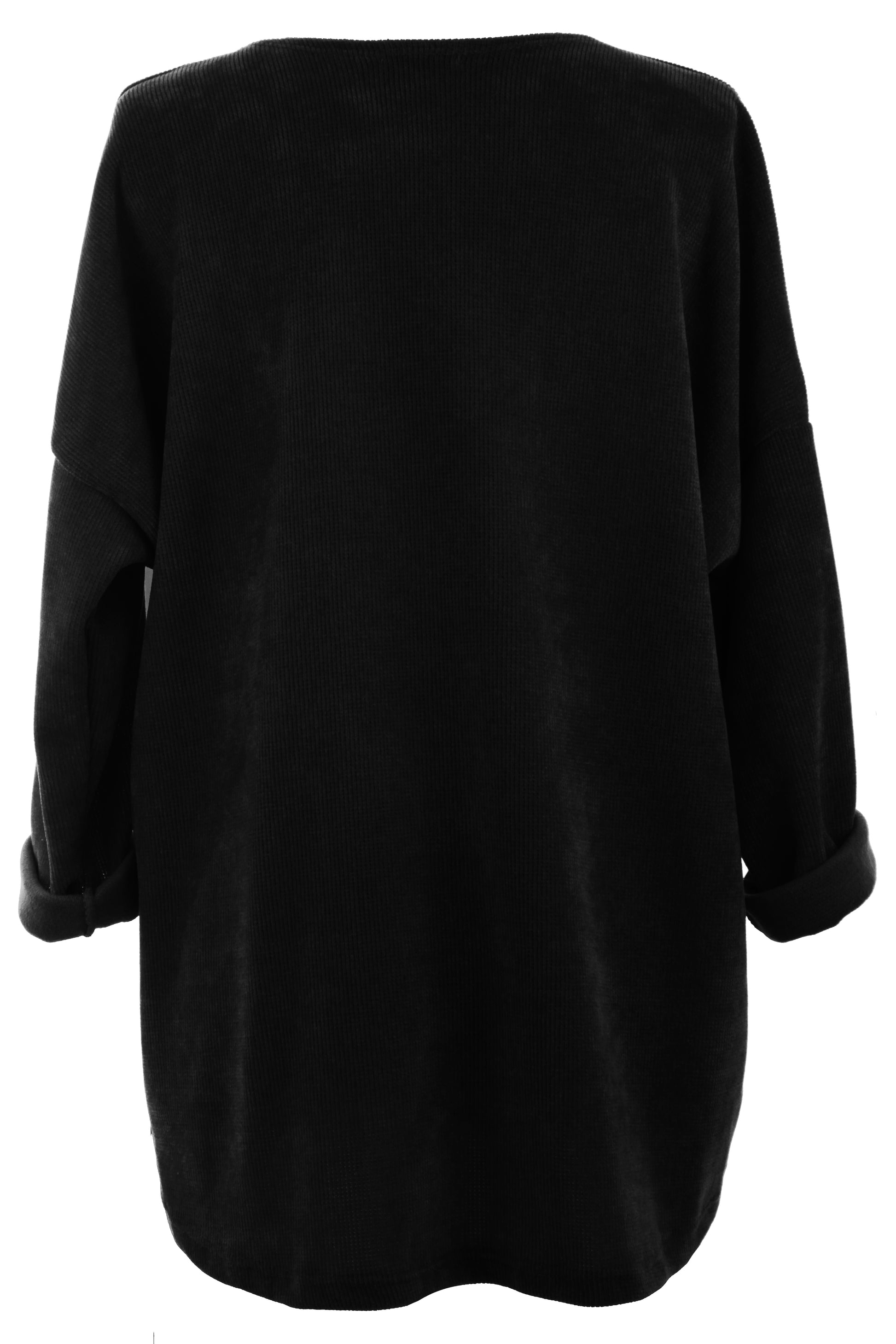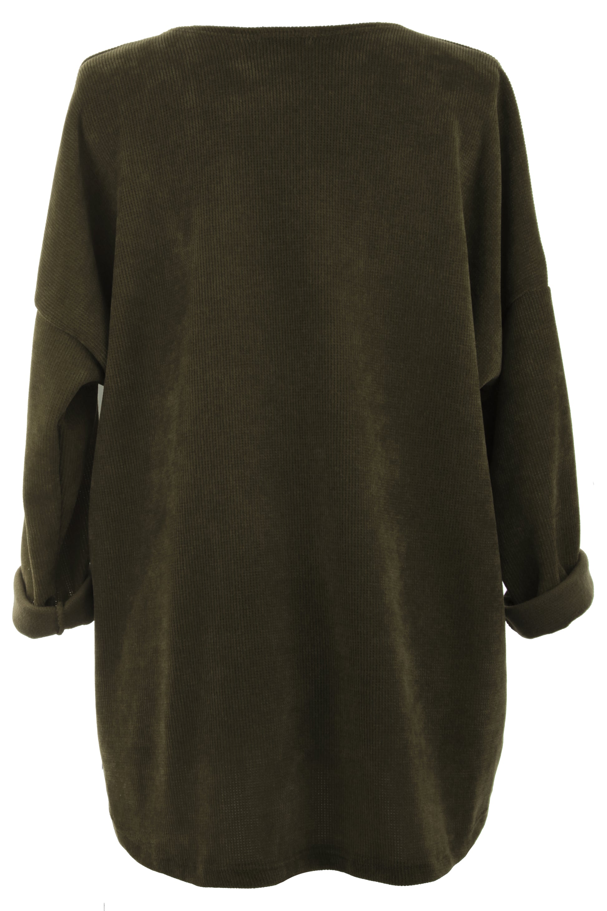 Crafted from soft and cosy chenille corduroy fabric, it features a scoop neckline, long batwing sleeves, and a flattering high-low hemline.