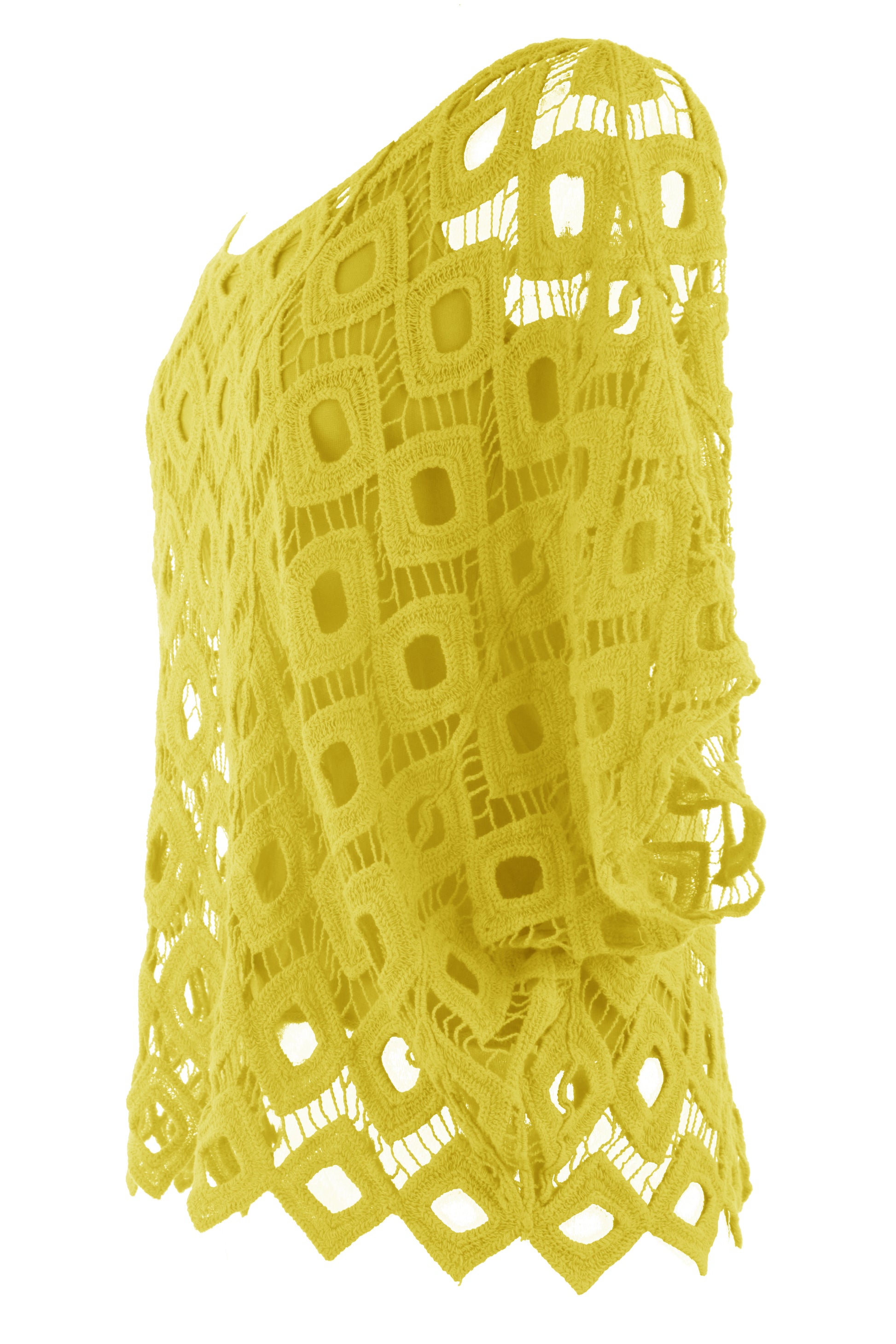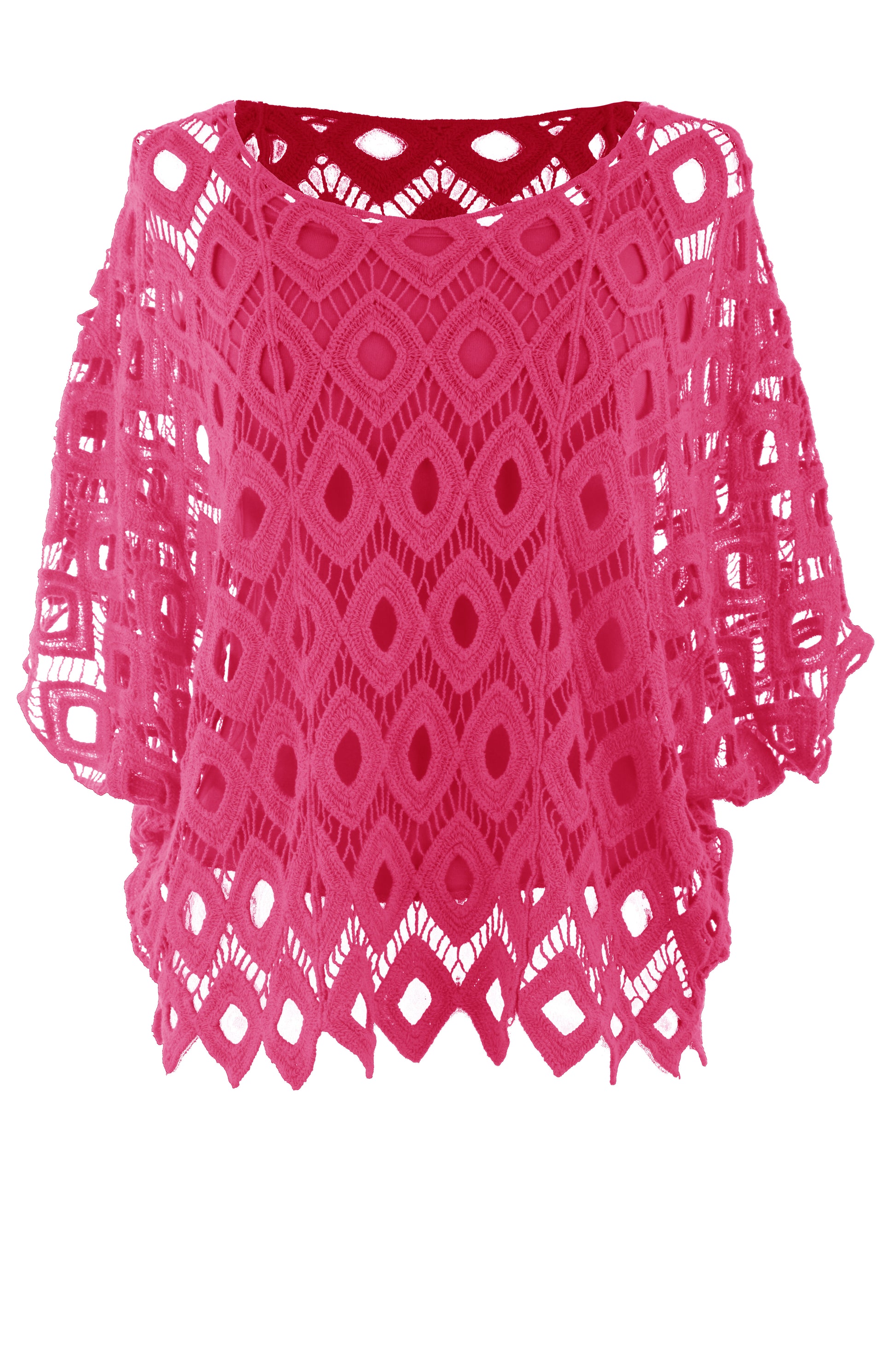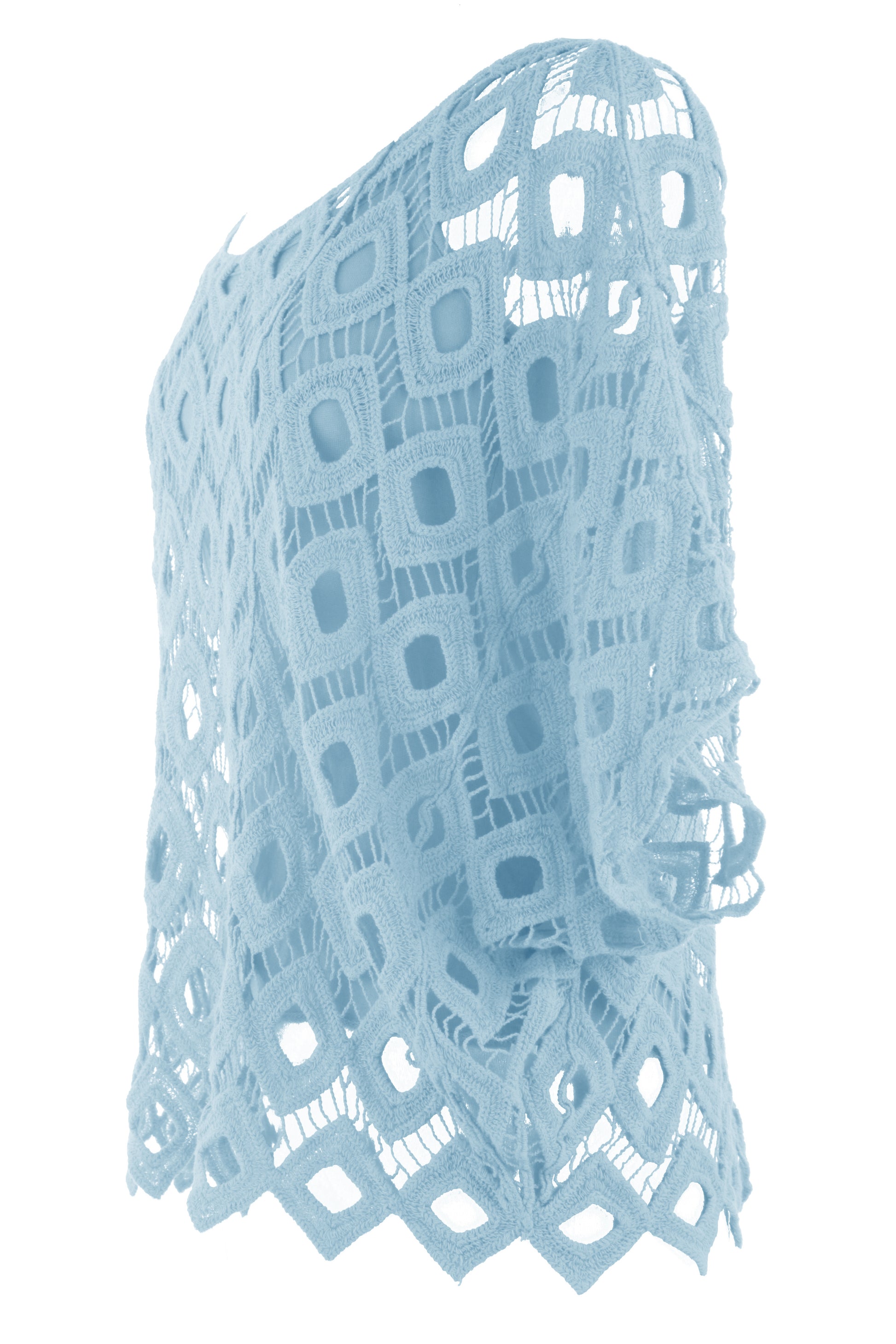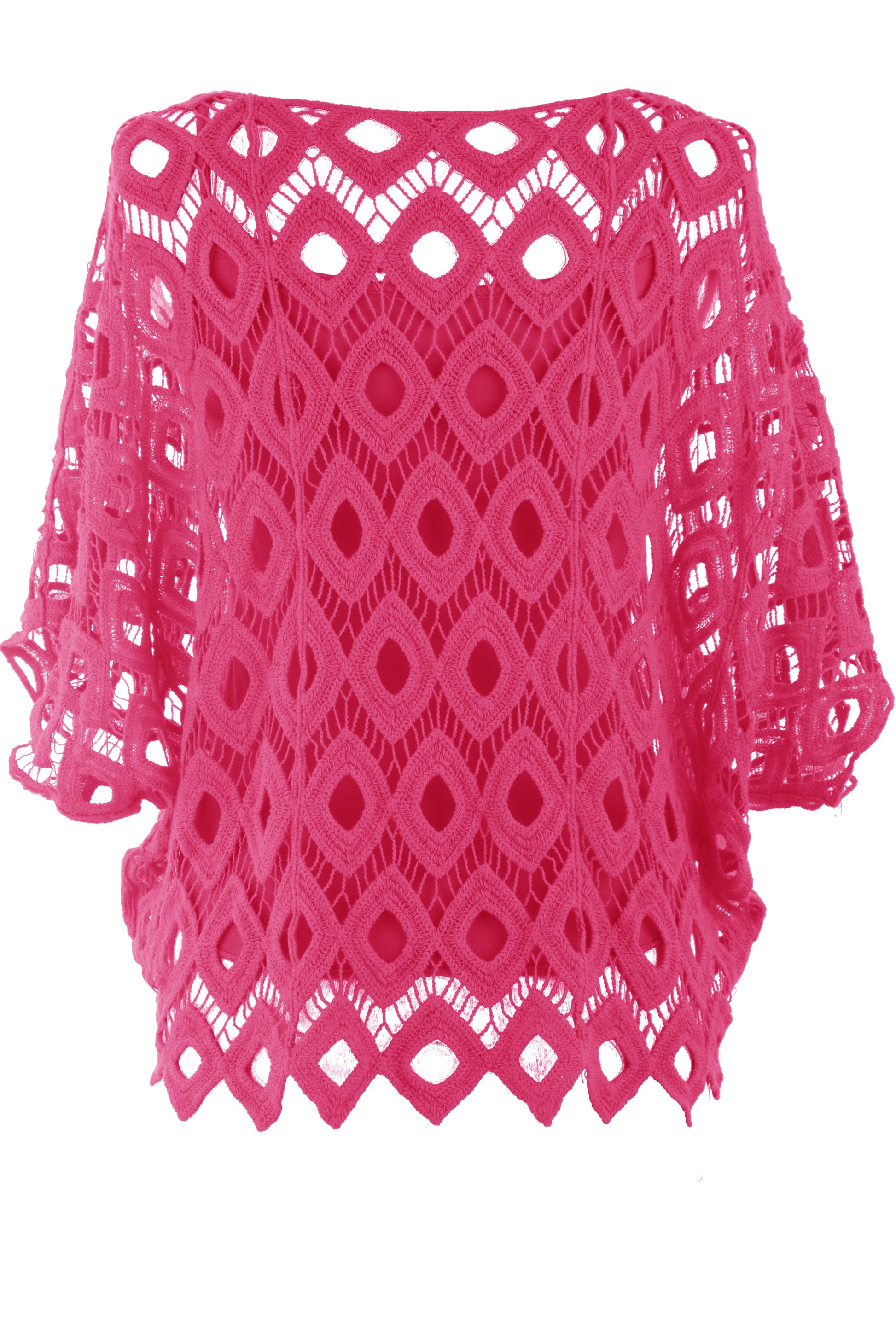 The eye-catching diamond crochet pattern adds a touch of sophistication, whilst the relaxed batwing short sleeves create a flattering silhouette that drapes beautifully.