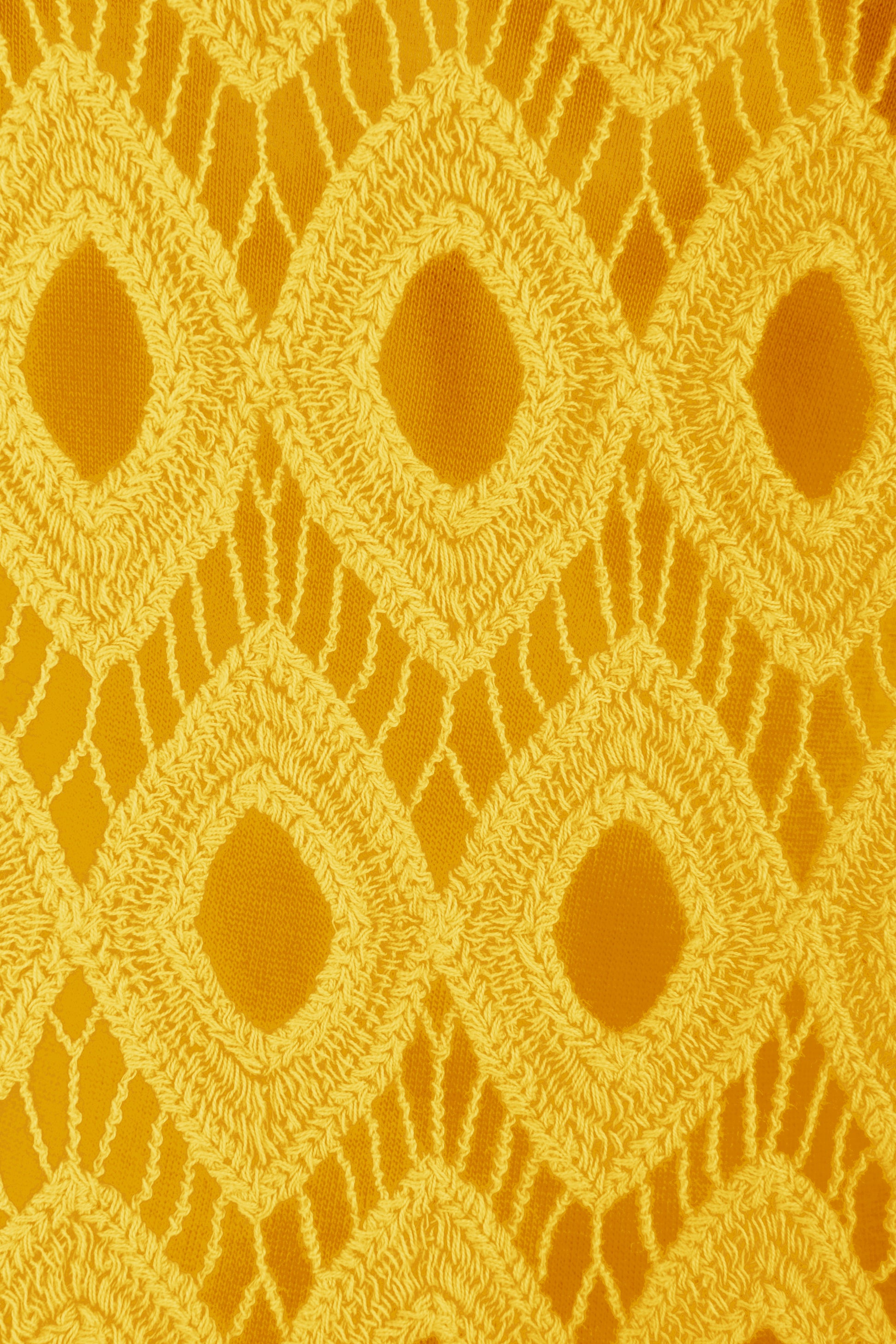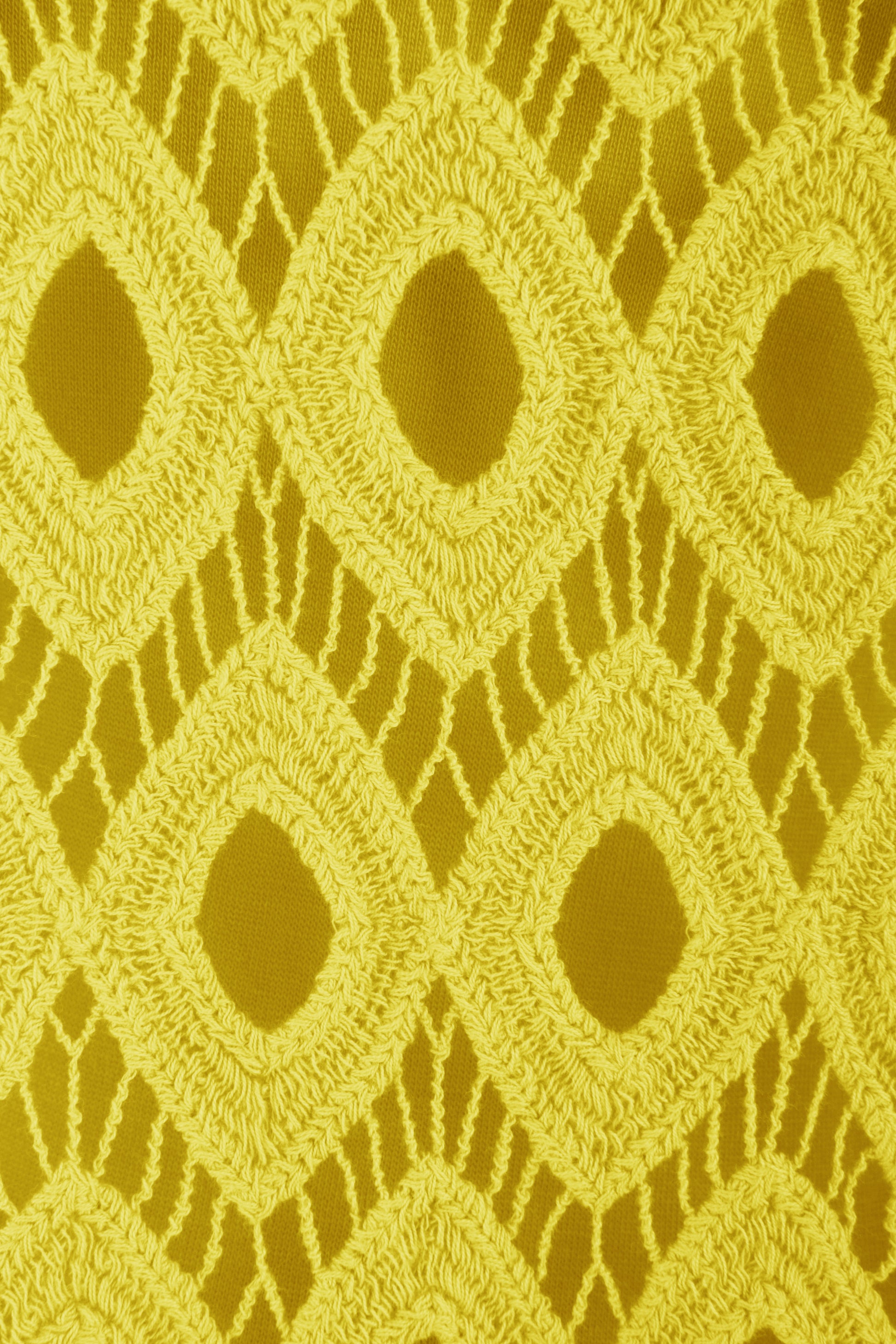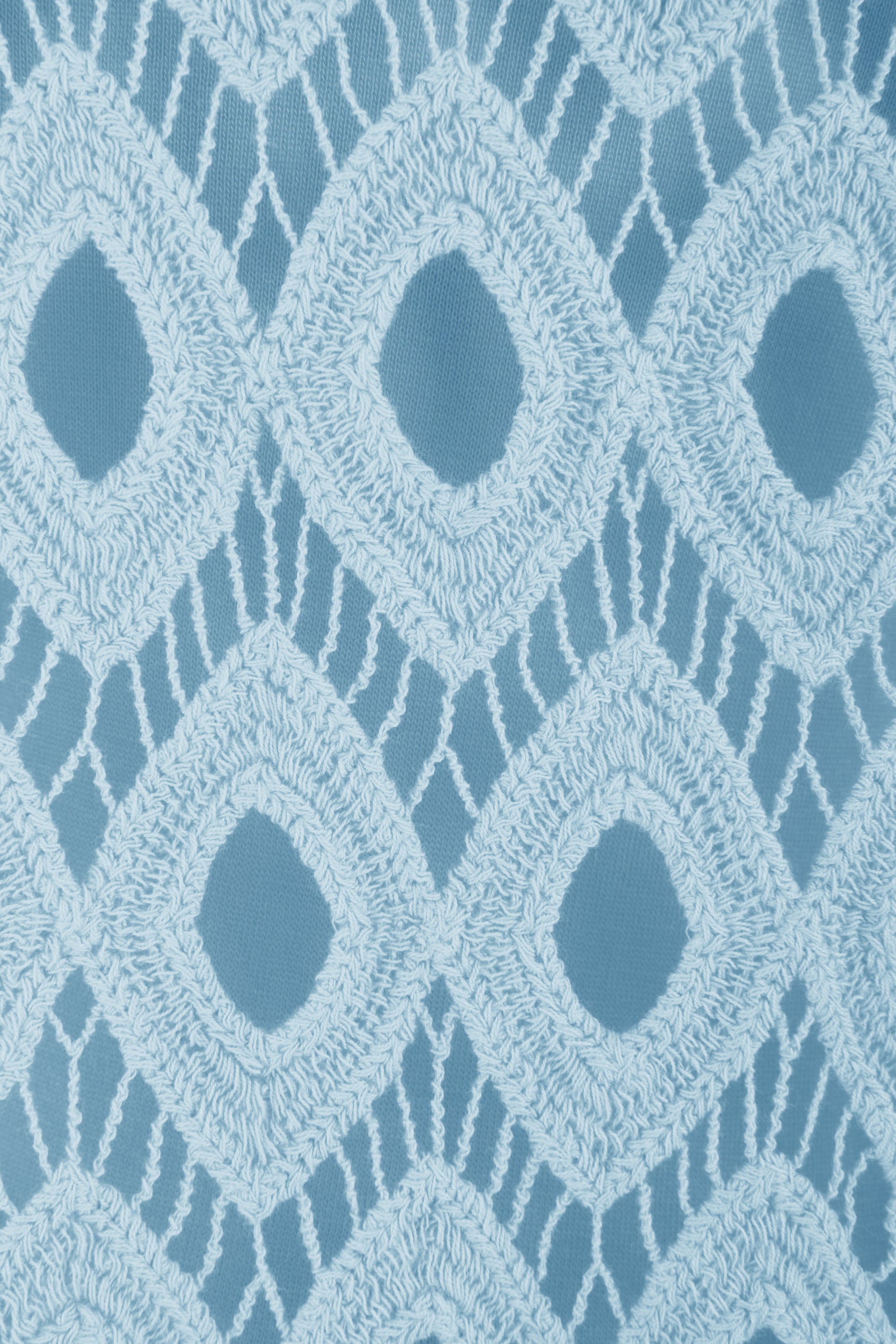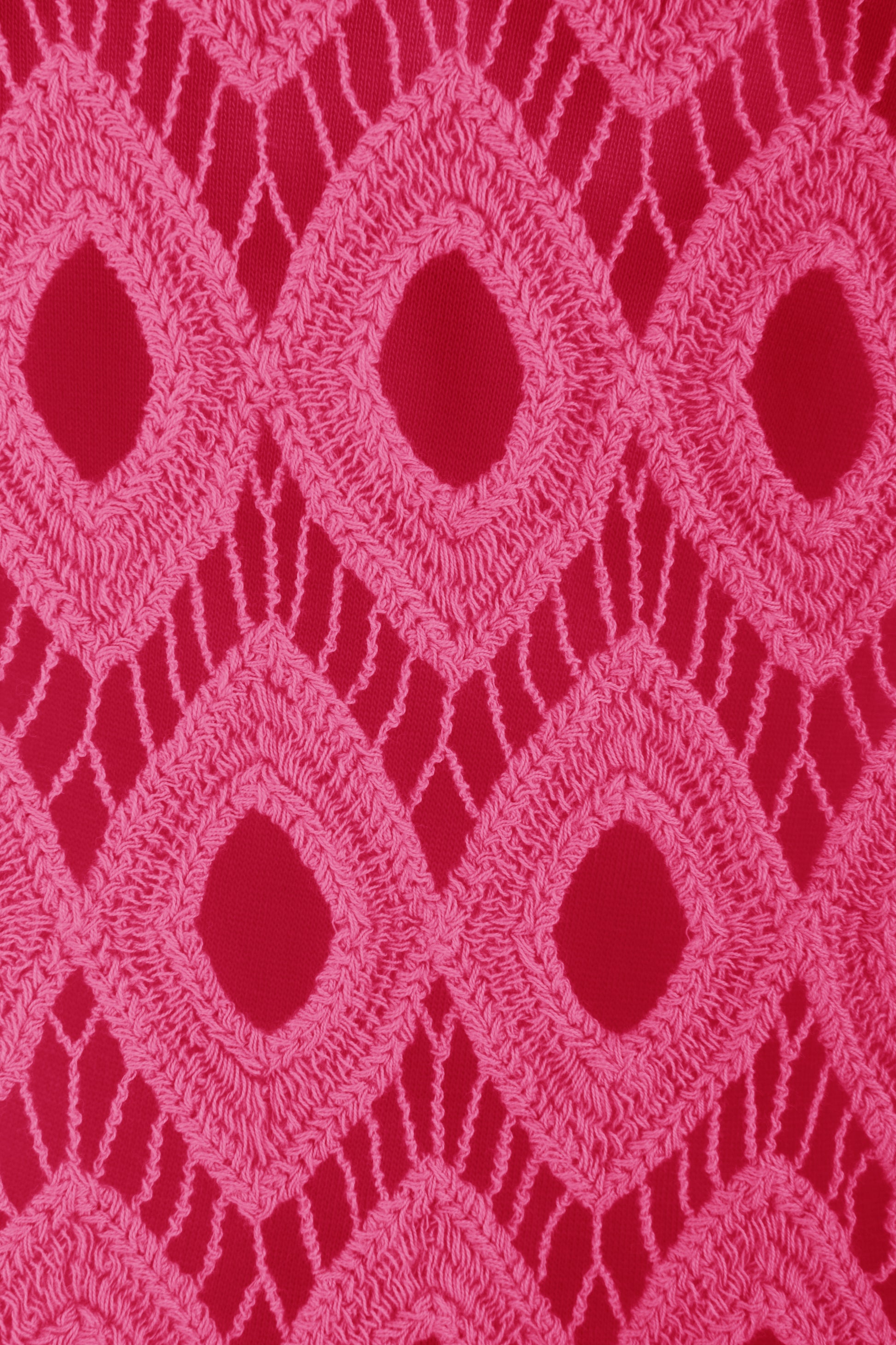 The eye-catching diamond crochet pattern adds a touch of sophistication, whilst the relaxed batwing short sleeves create a flattering silhouette that drapes beautifully.
