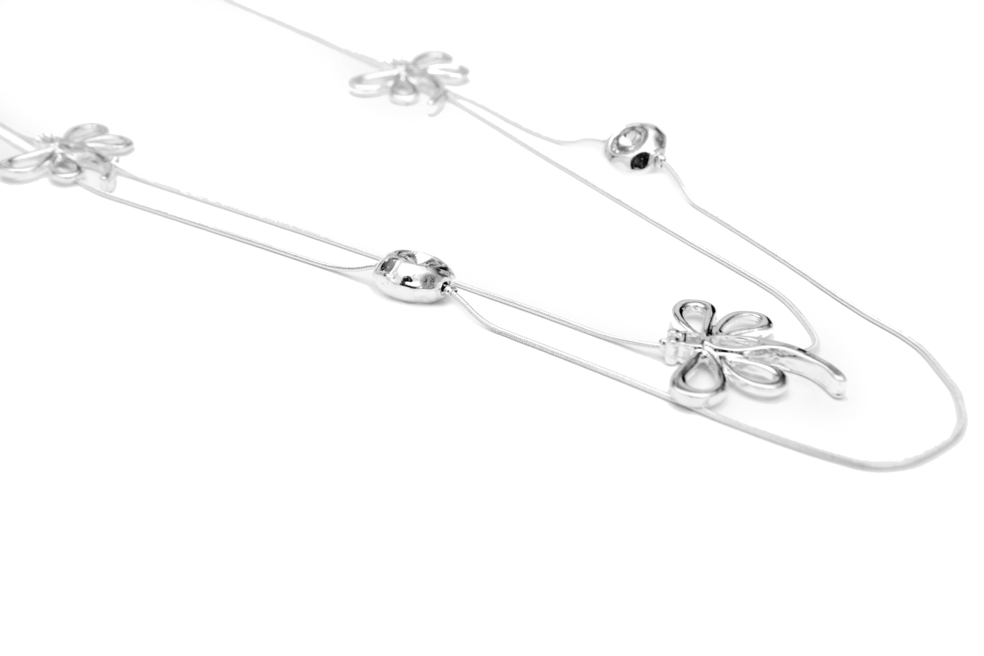 - Small dragonfly and diamond beads on a layered style snake chain.