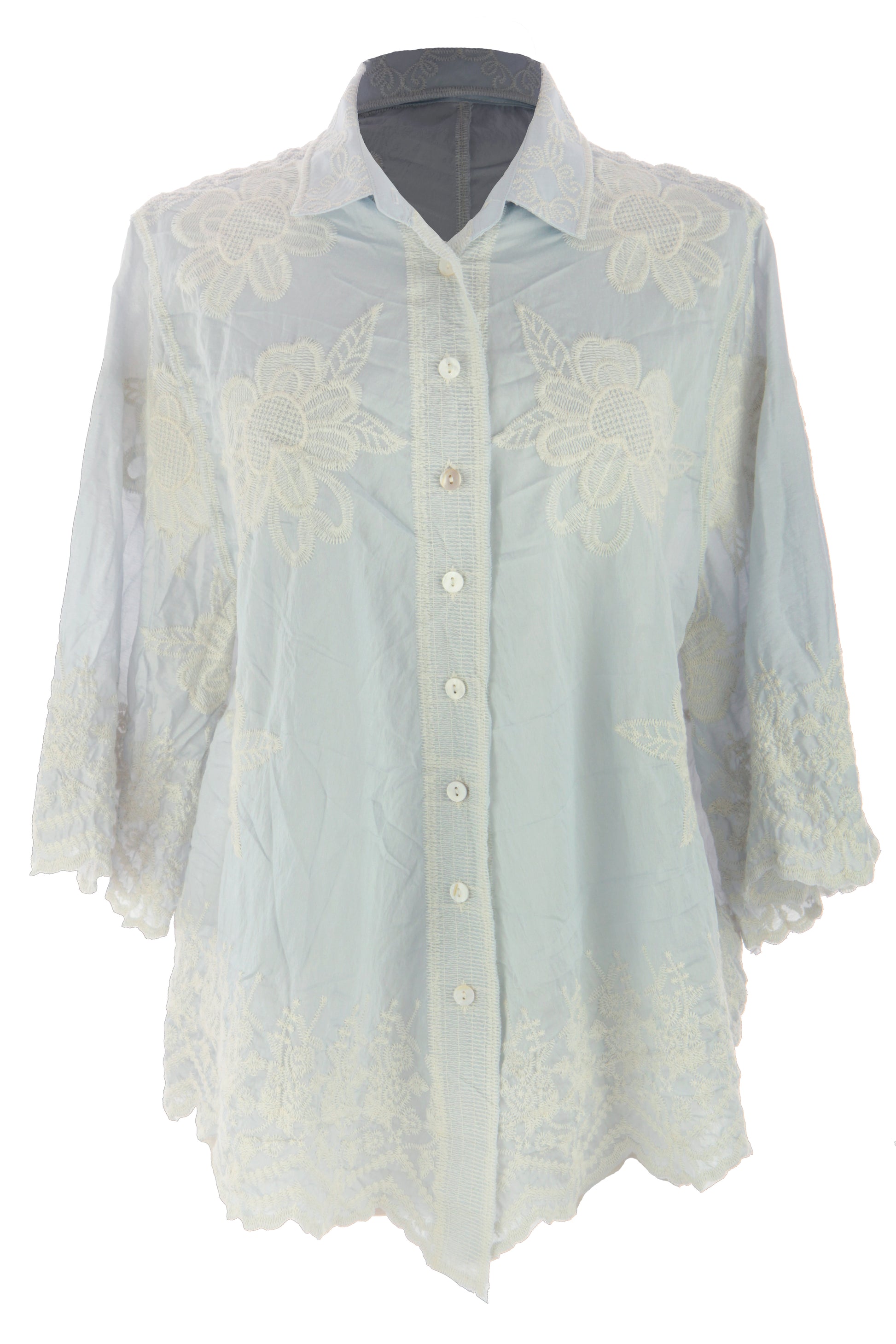Featuring stunning cream floral embroidery throughout, this shirt exudes effortless elegance and feminine charm.