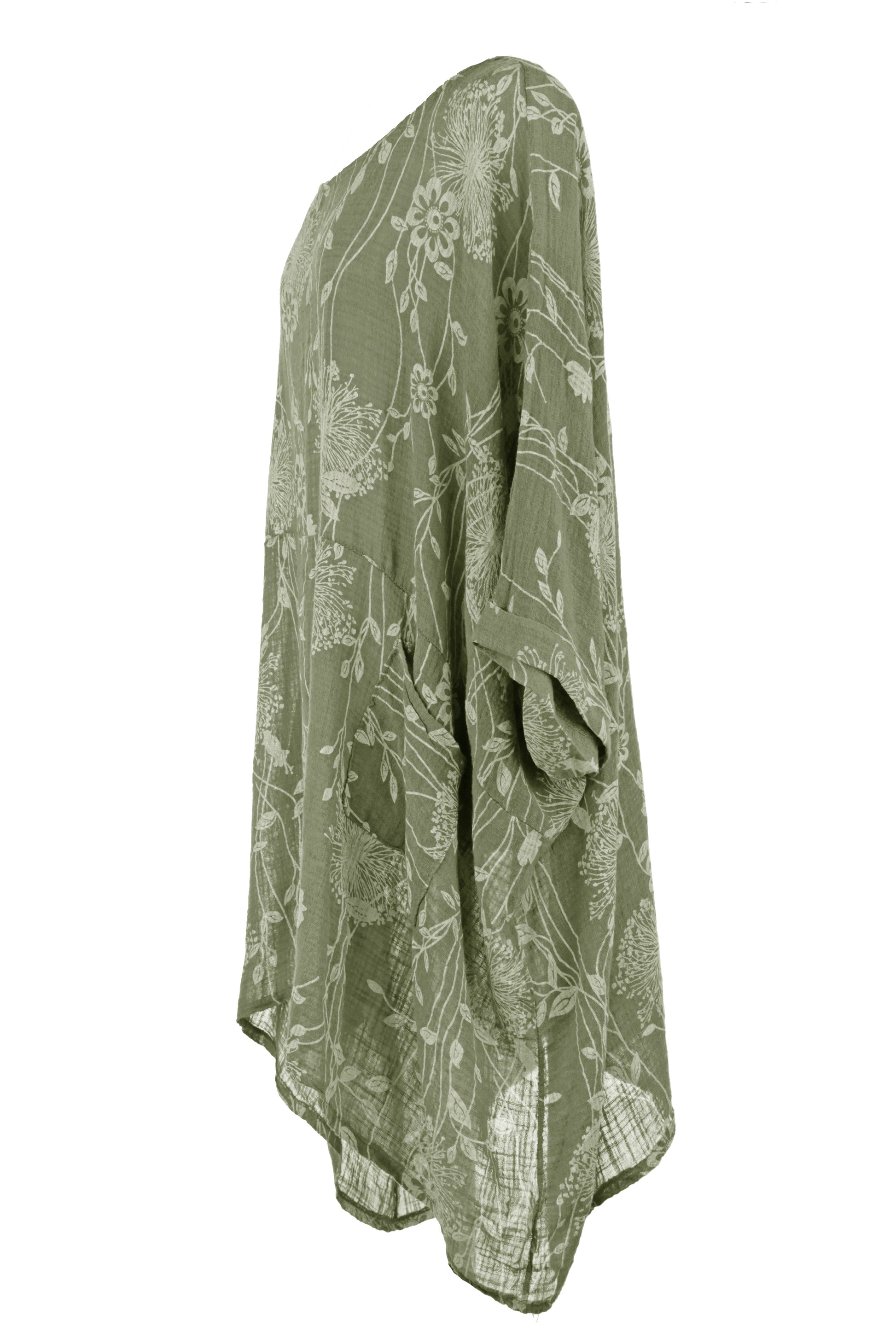 Embrace effortless elegance with this stunning Italian-style kaftan top, featuring an enchanting dandelion and floral print.