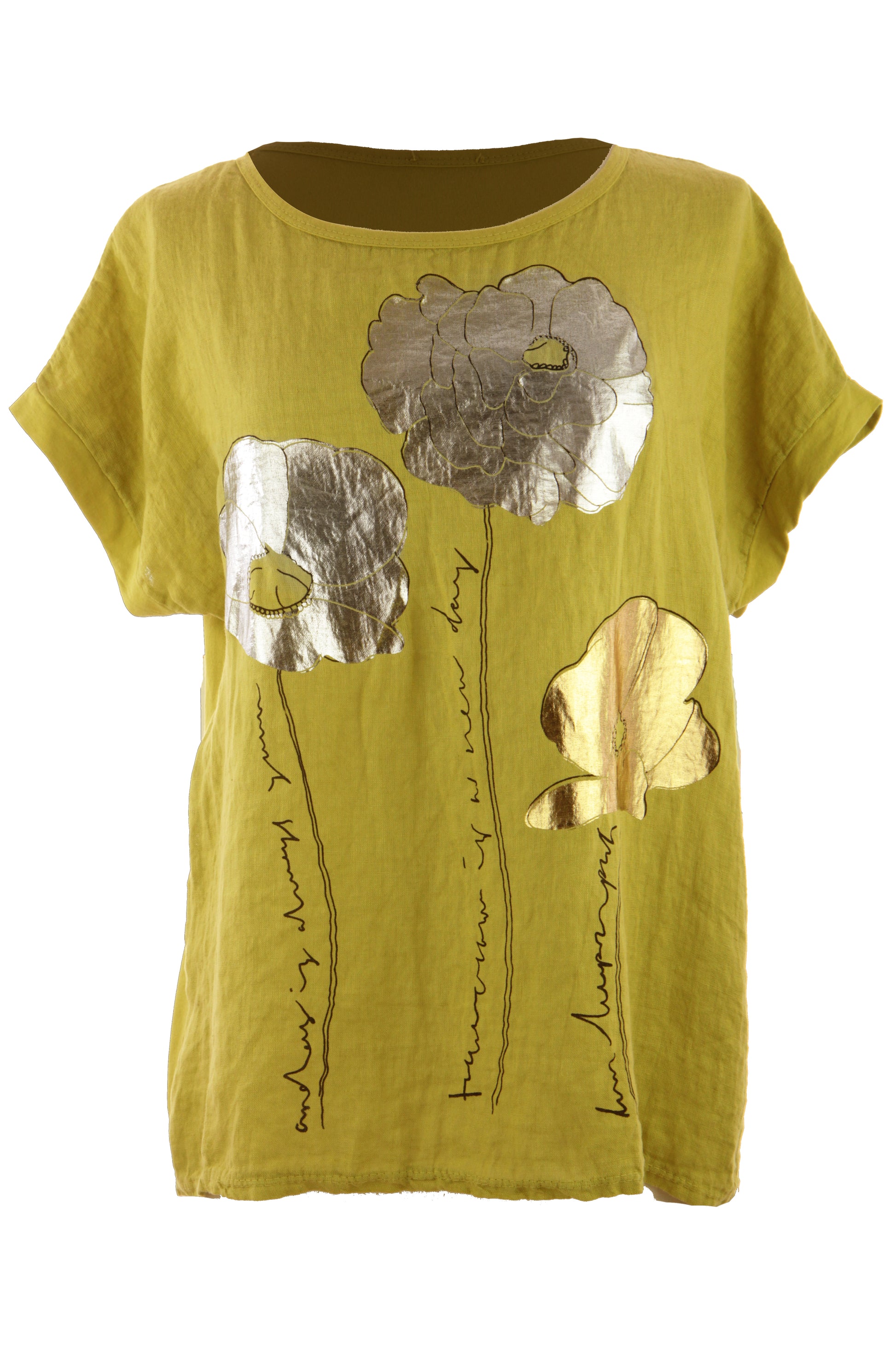 This versatile linen blend blouse features a relaxed silhouette with short sleeves and a classic round neckline.