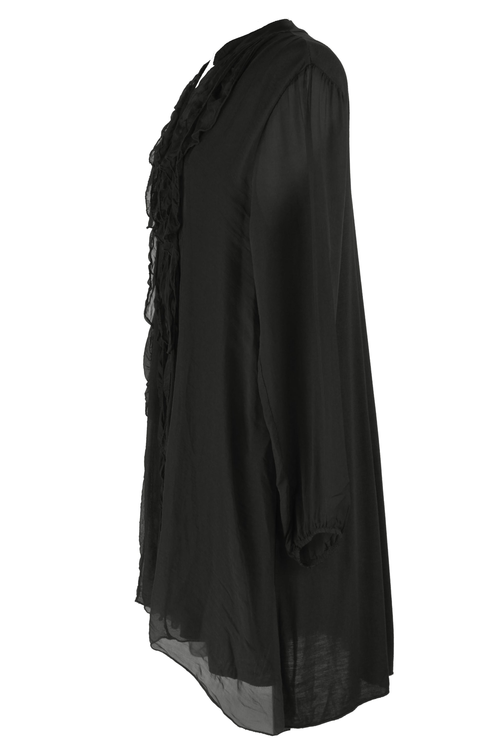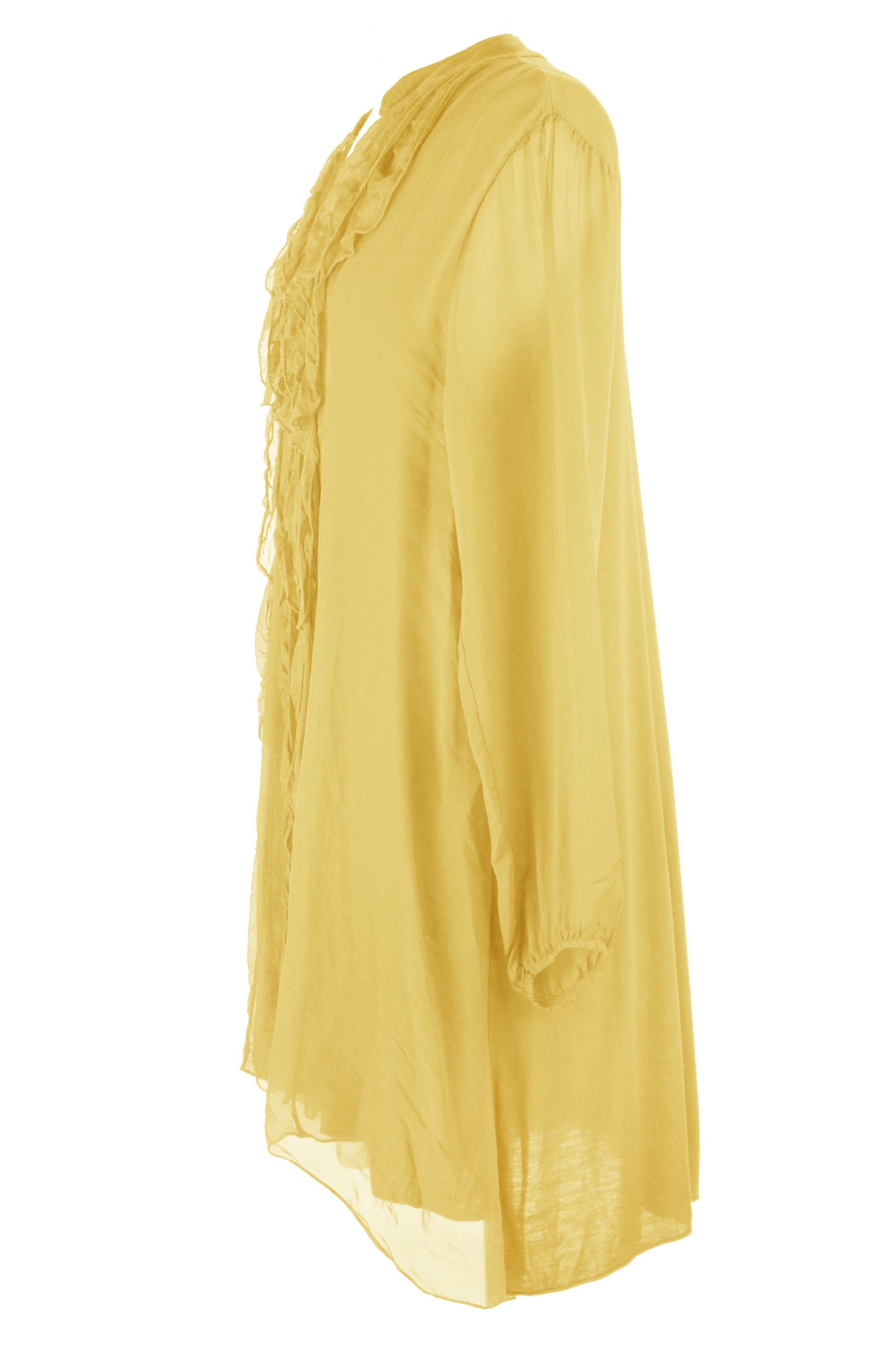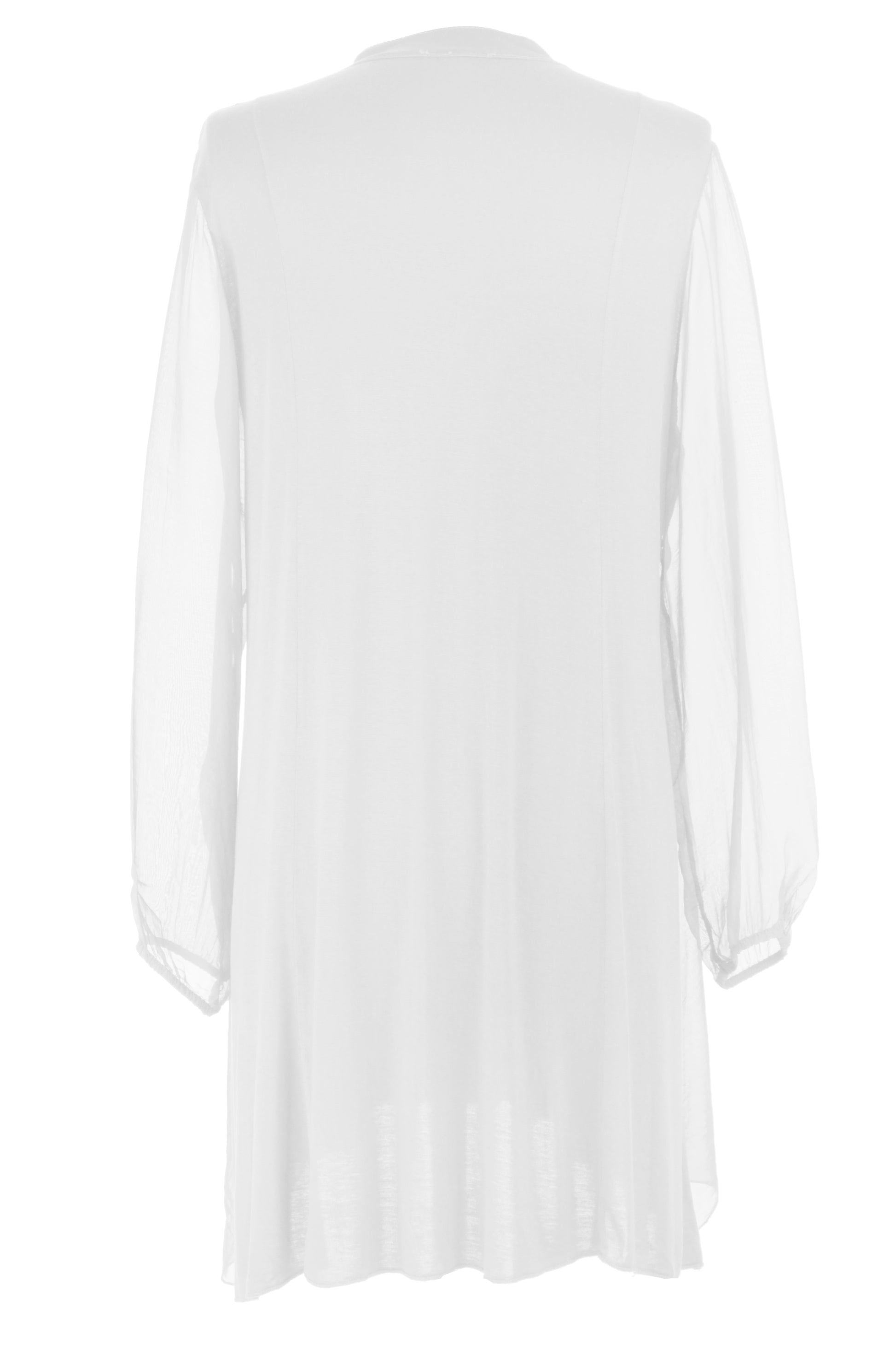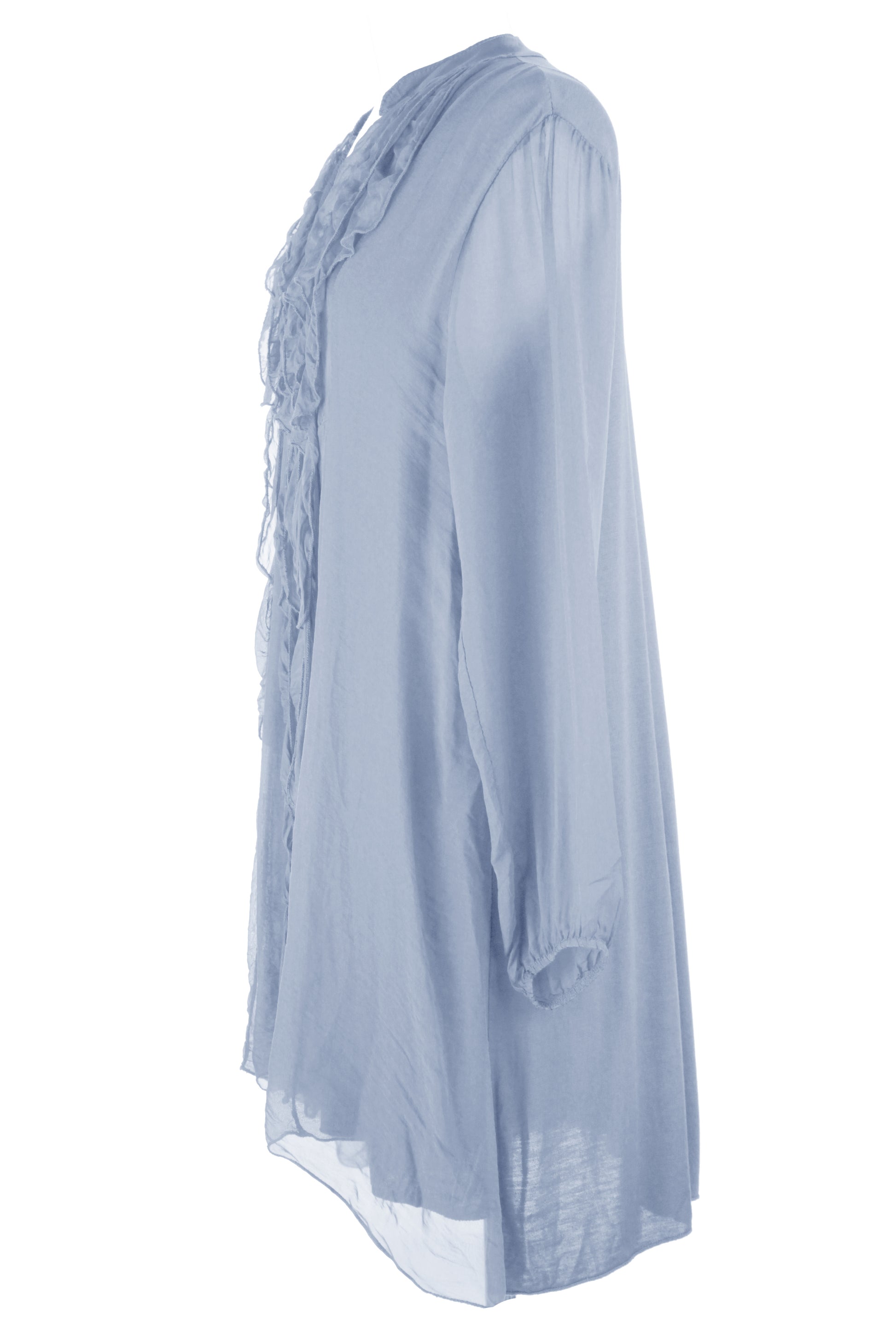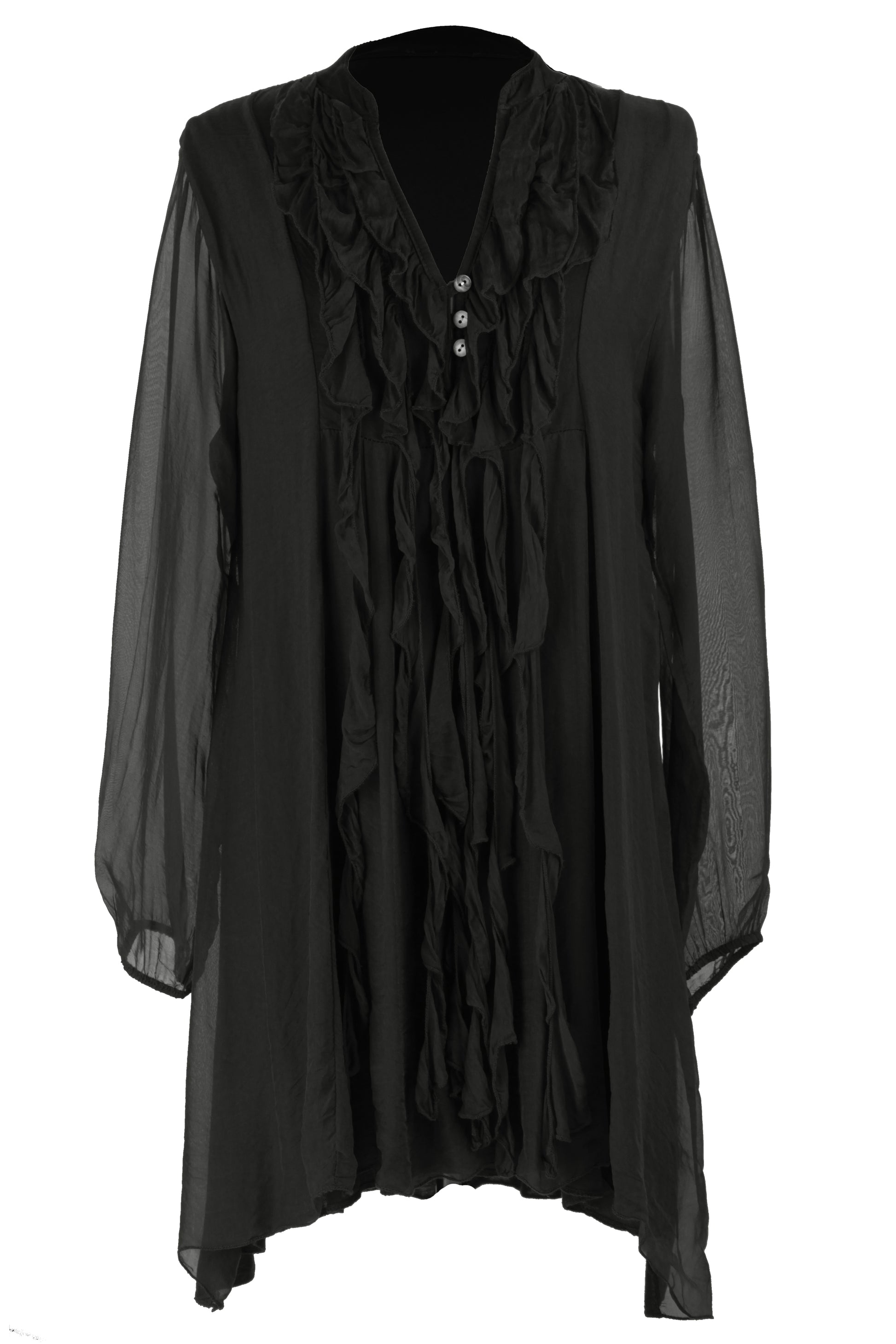 The long, sheer sleeves gather gracefully at the wrists, while the flowing Lagenlook cut offers both comfort and style.