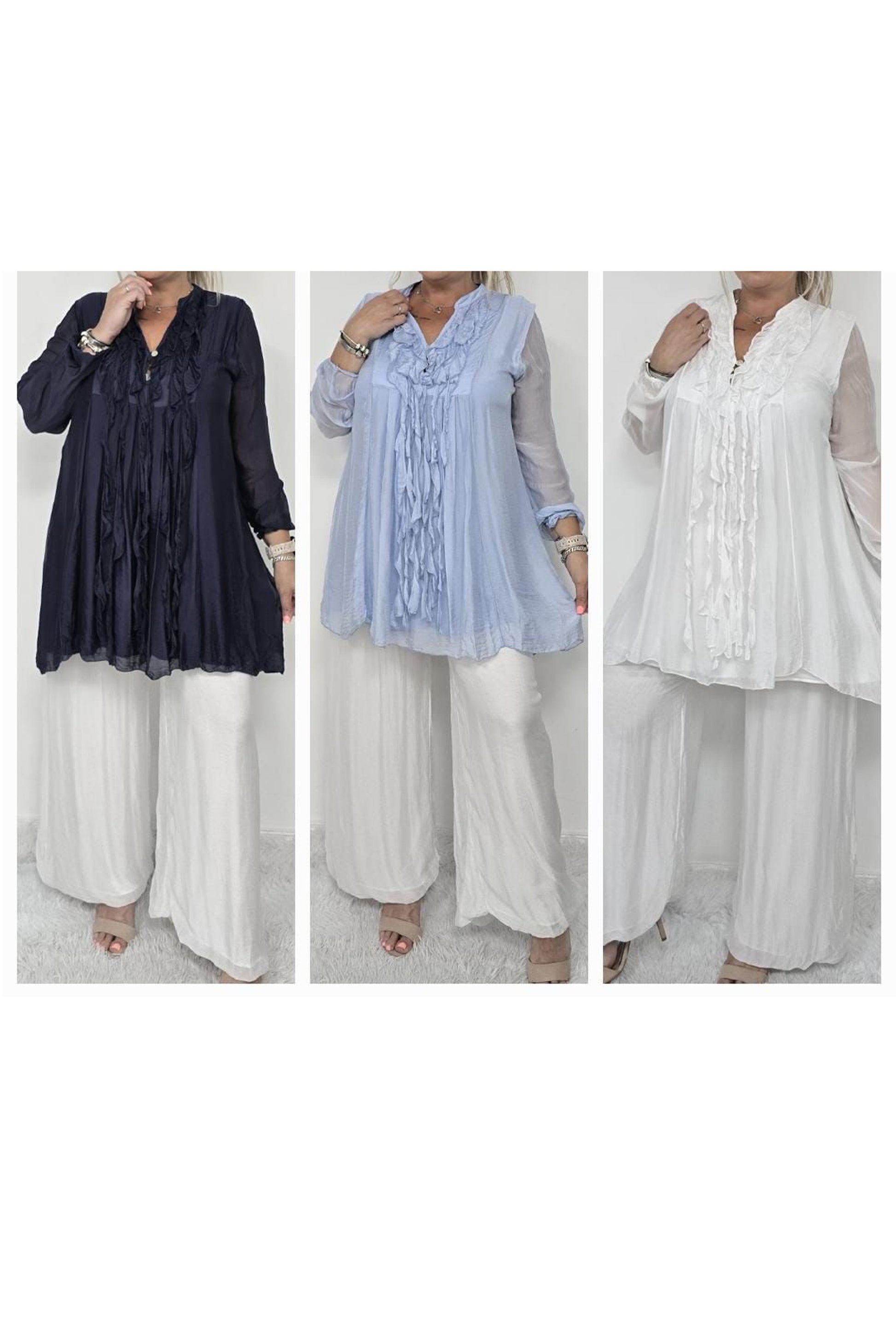 Elevate your wardrobe with this exquisite Italian-style silk blouse that embodies sophistication and versatility.
