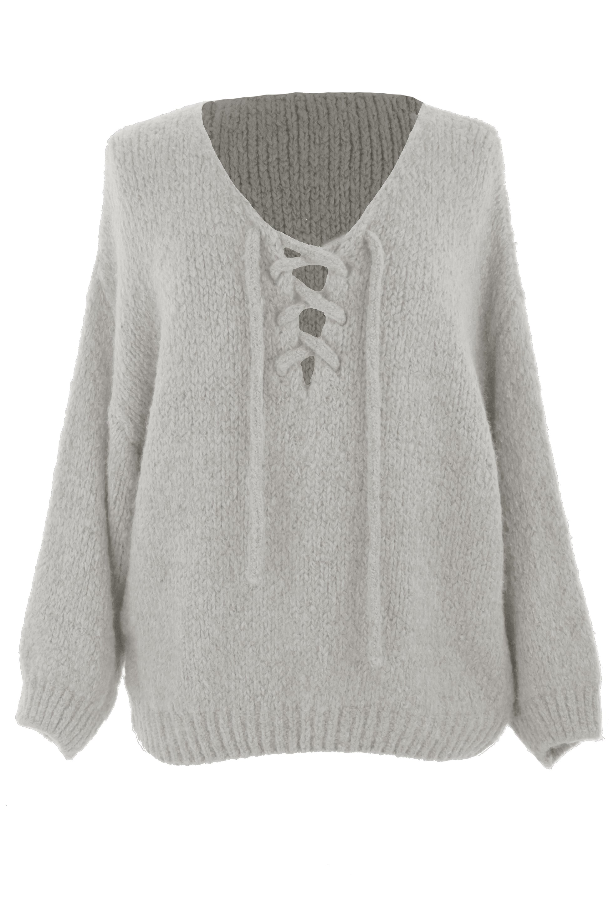 Lace Up Neck Wool Knit Jumper