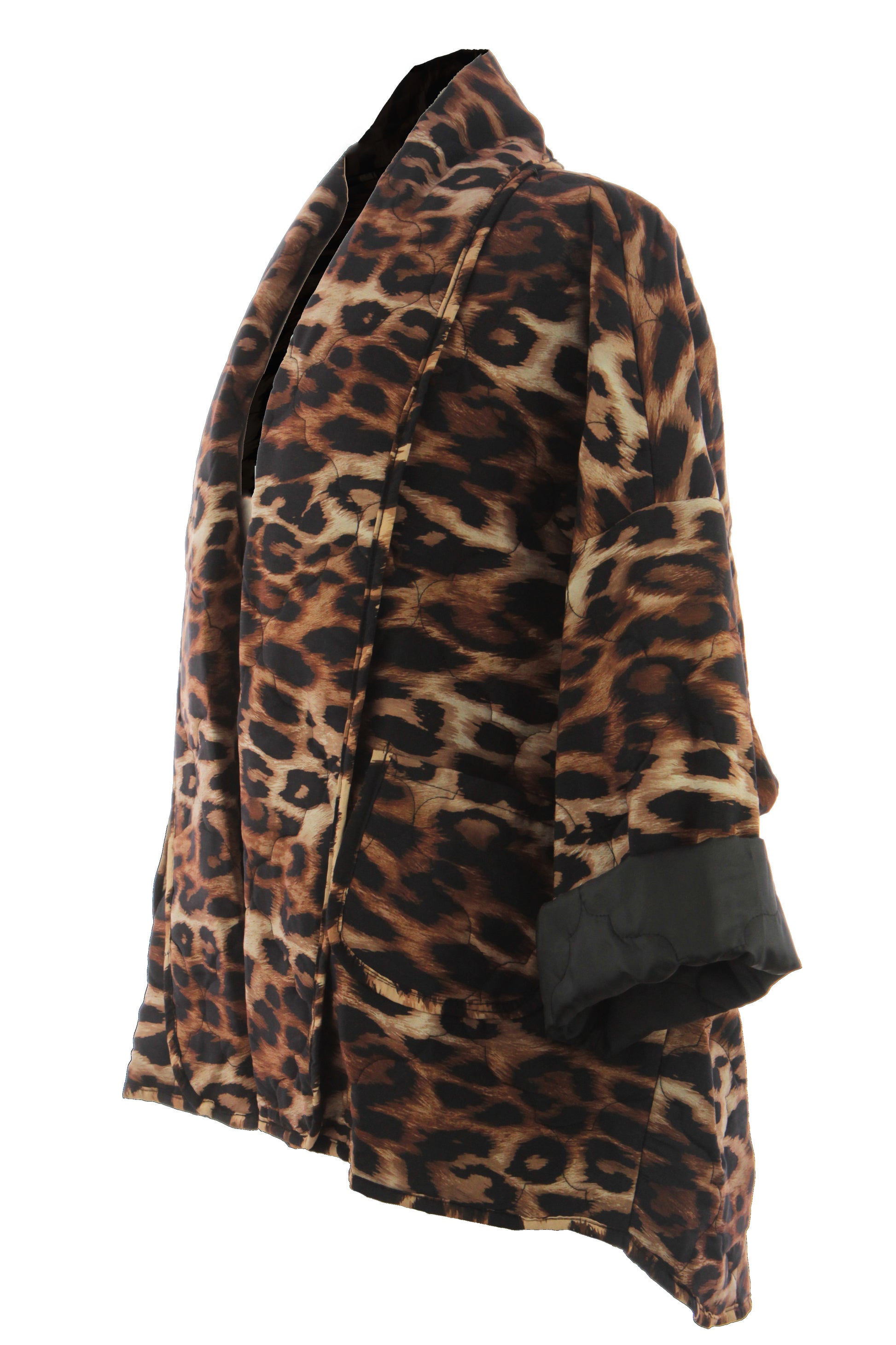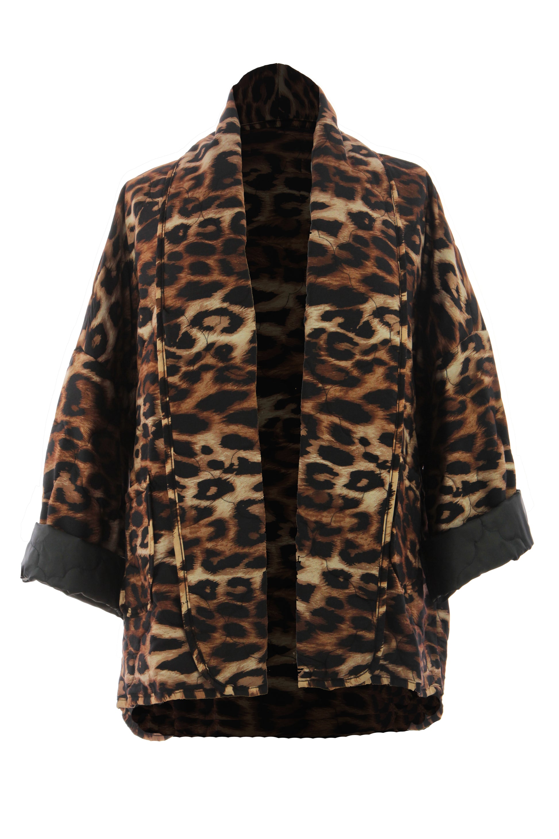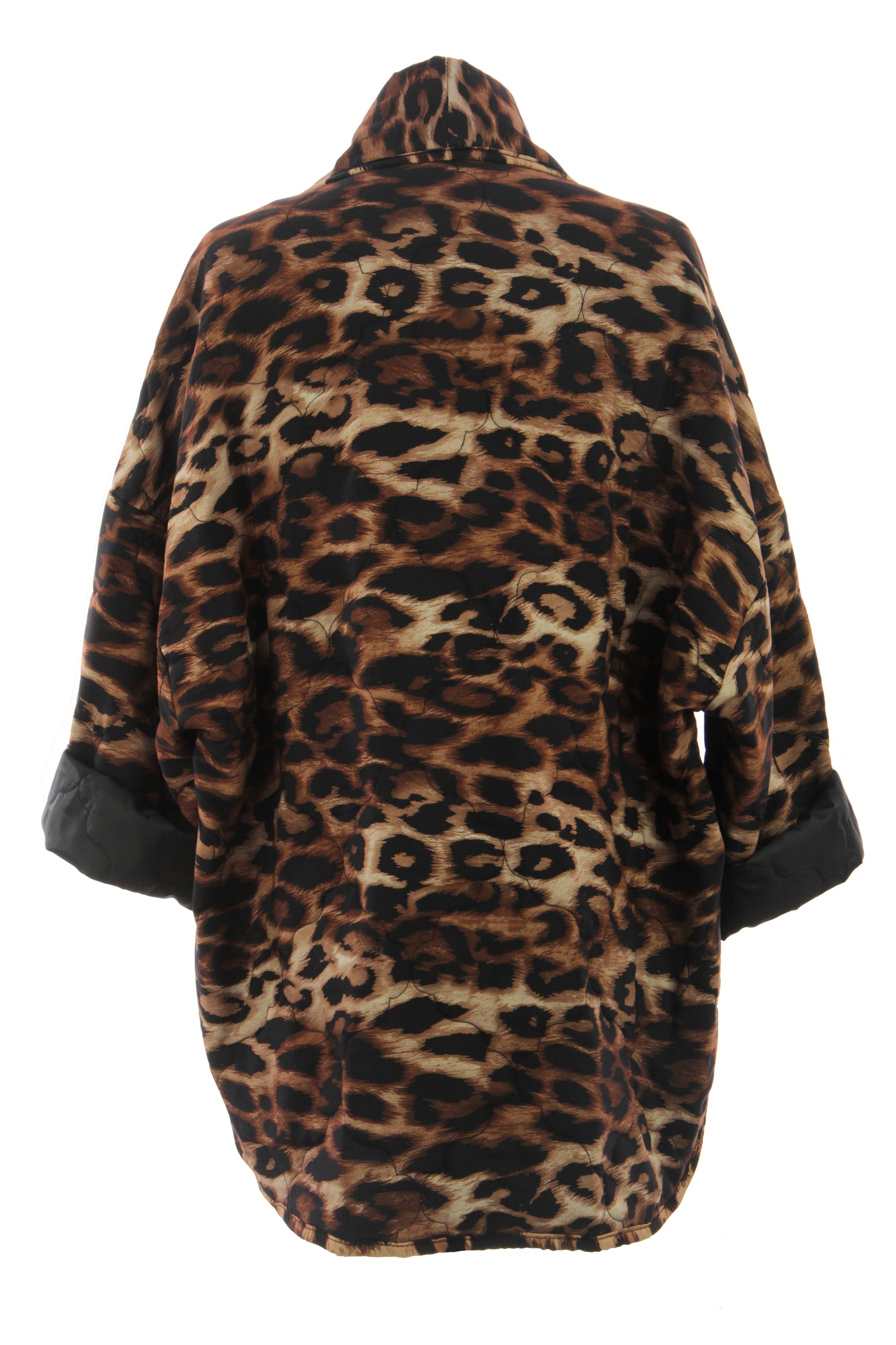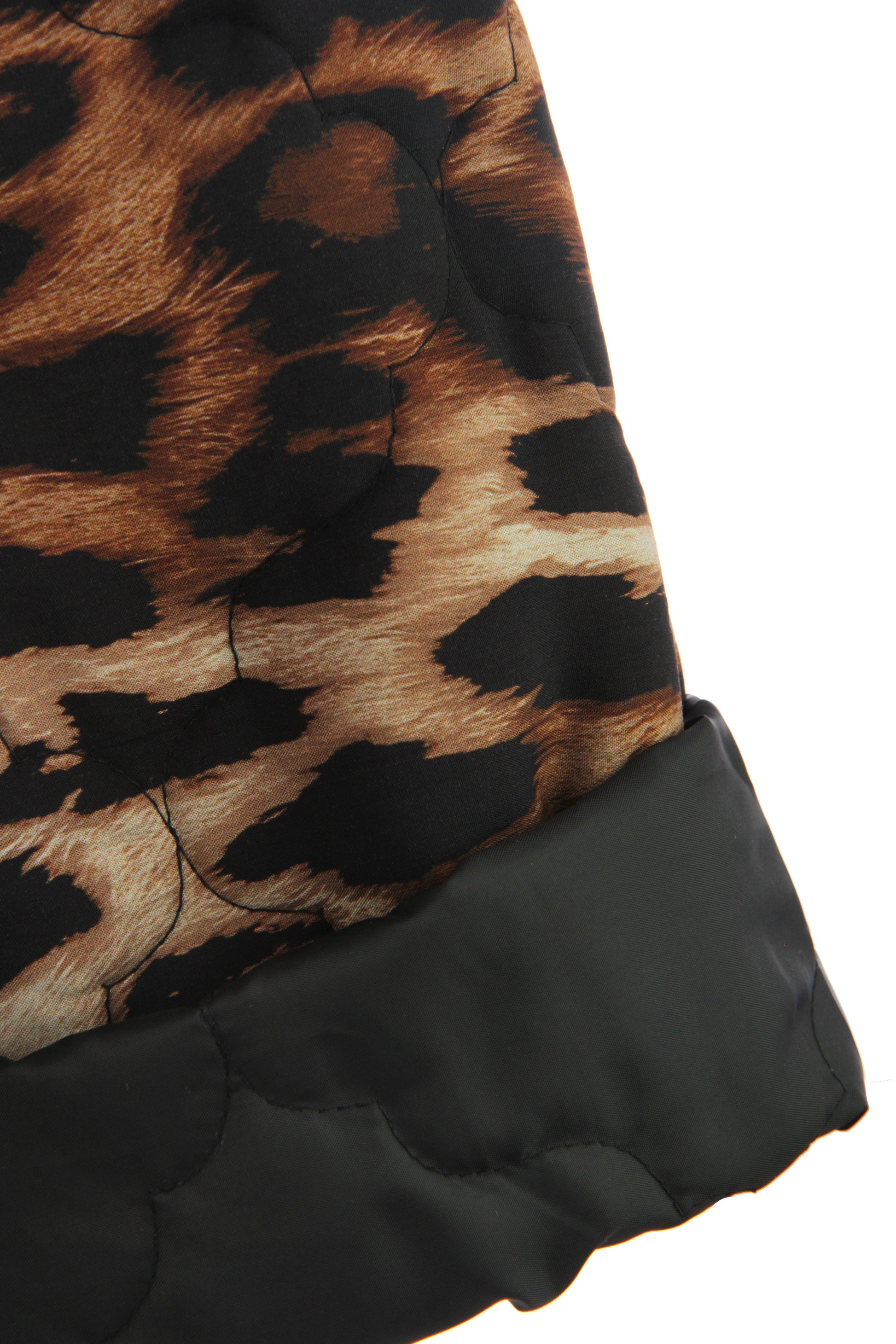 Indulge in the timeless elegance of this quilted jacket, adorned with a captivating leopard print pattern.