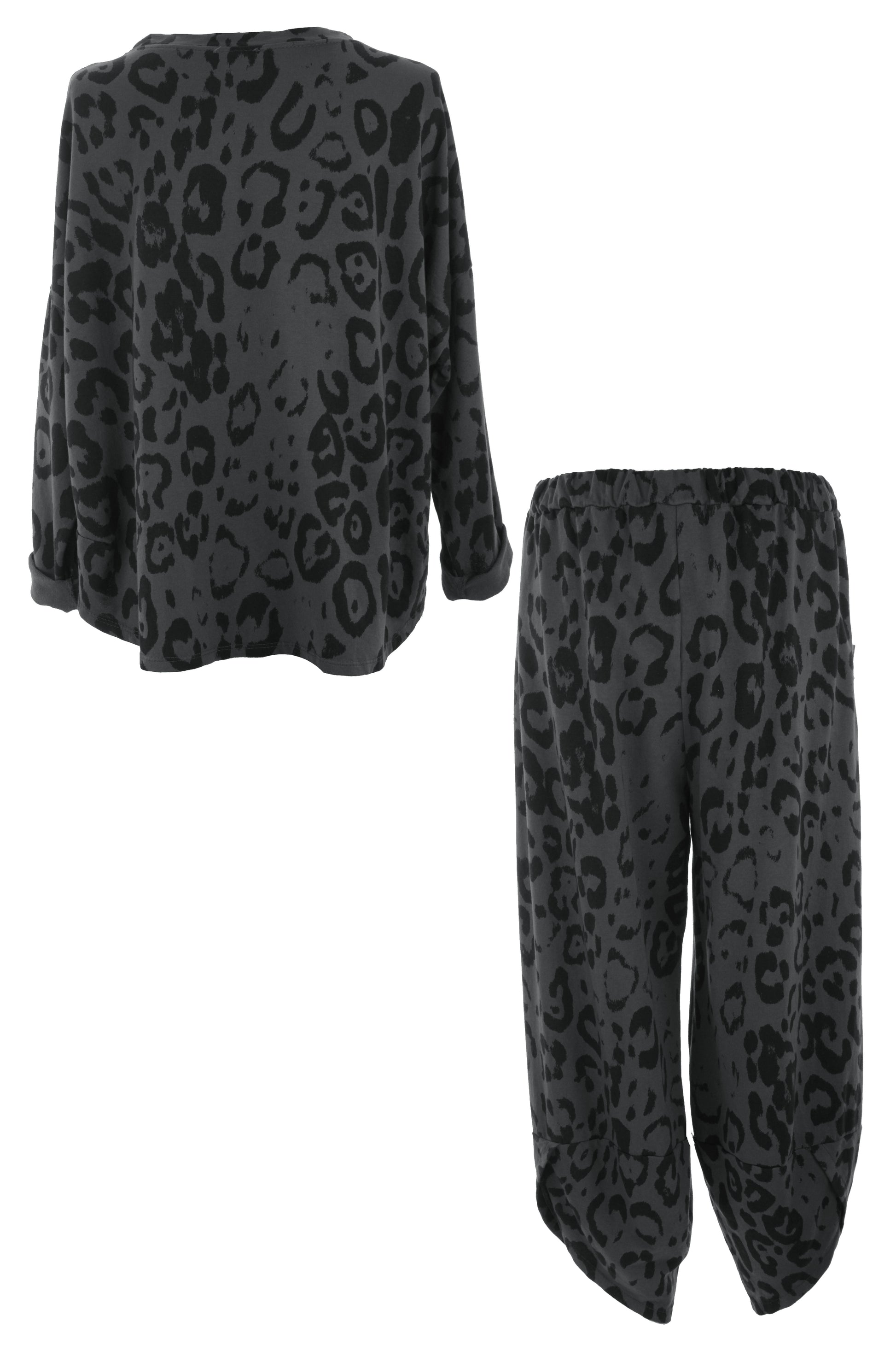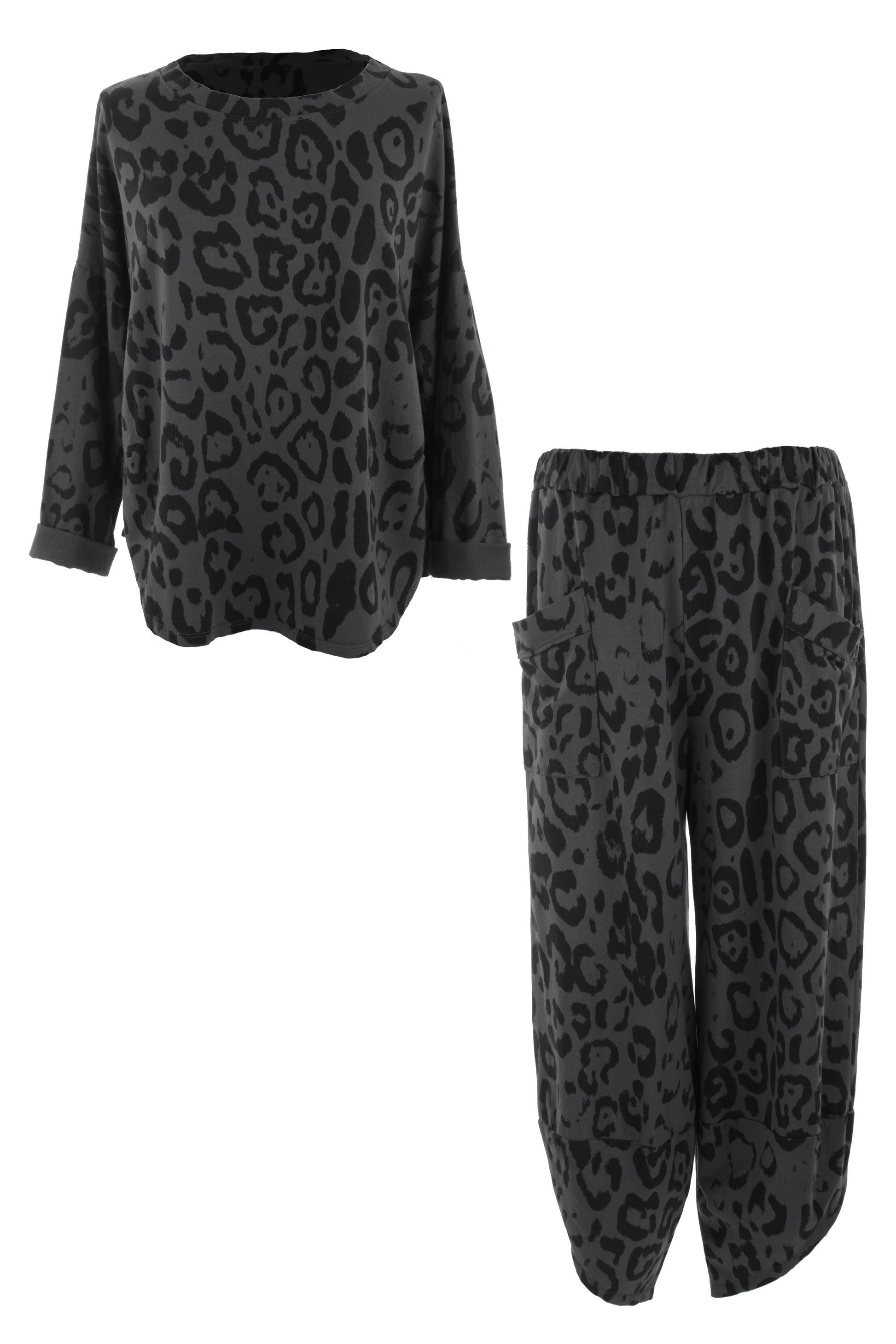 Make a bold style statement with this Italian-inspired loungewear set featuring an eye-catching leopard print throughout.