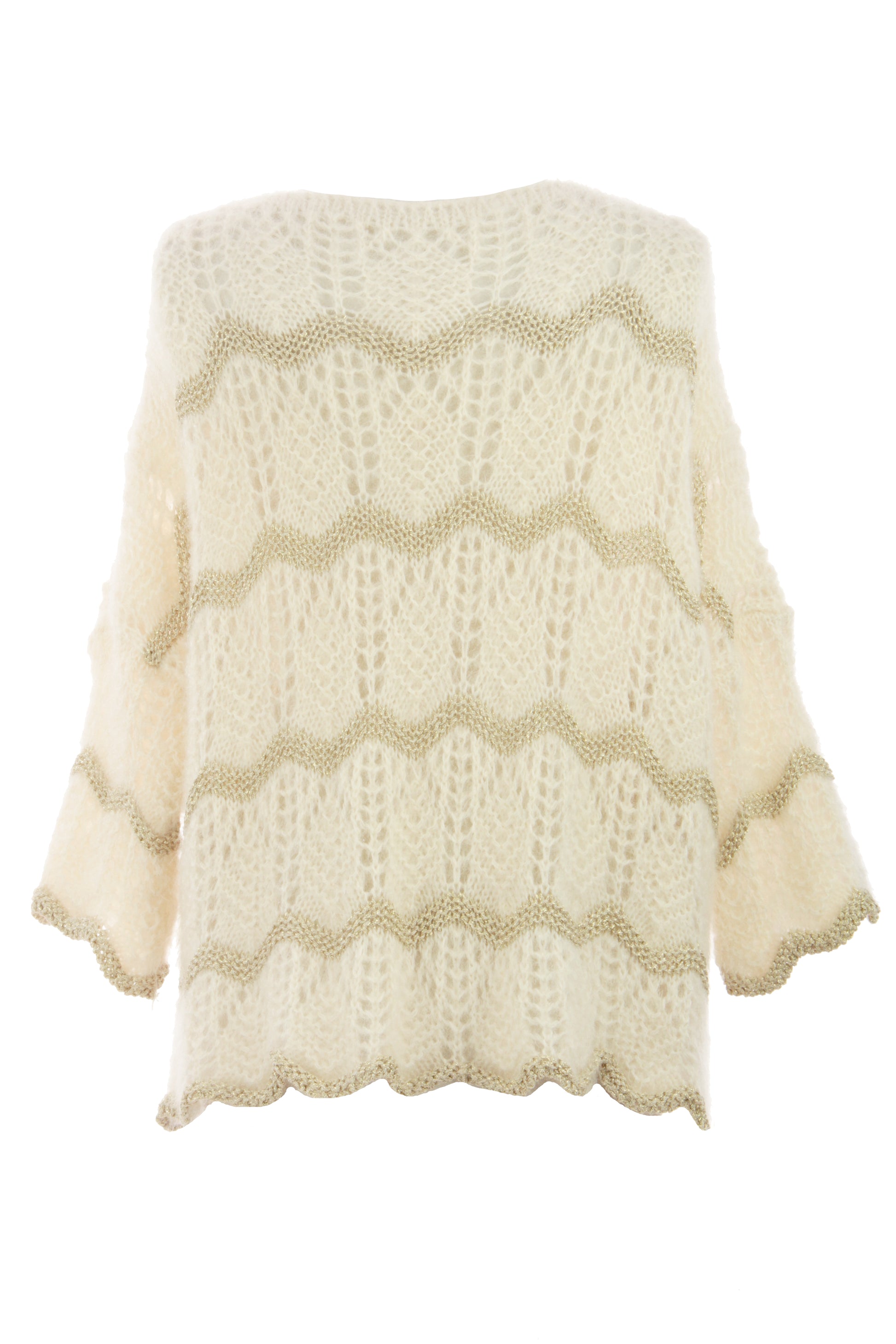 The lightweight eyelash knit is beautifully accented with shimmering gold lurex detailing, creating an eye-catching pattern throughout.