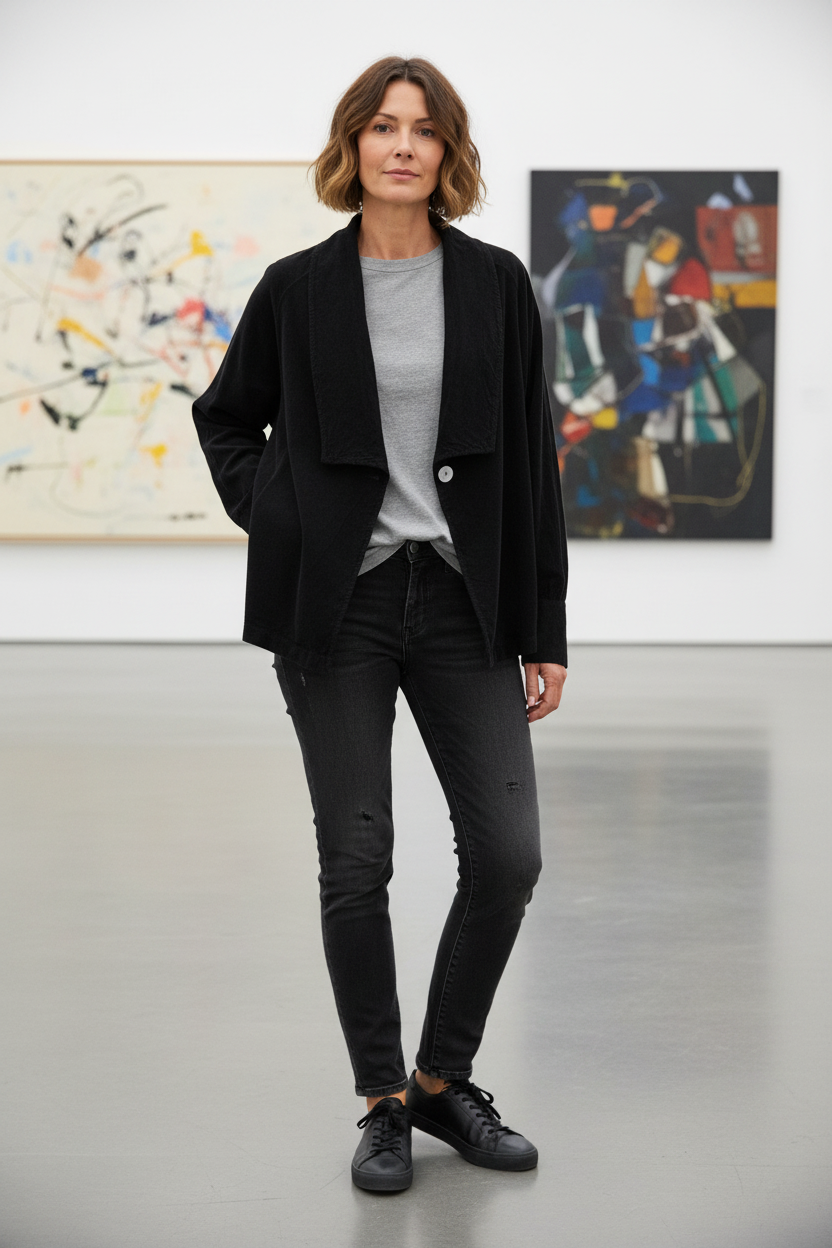 Featuring a classic collar and a single-button closure, this versatile piece combines style with practicality.