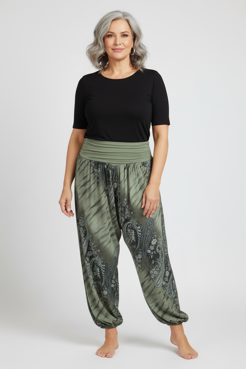 Step into effortless bohemian style with these Italian-designed harem trousers.