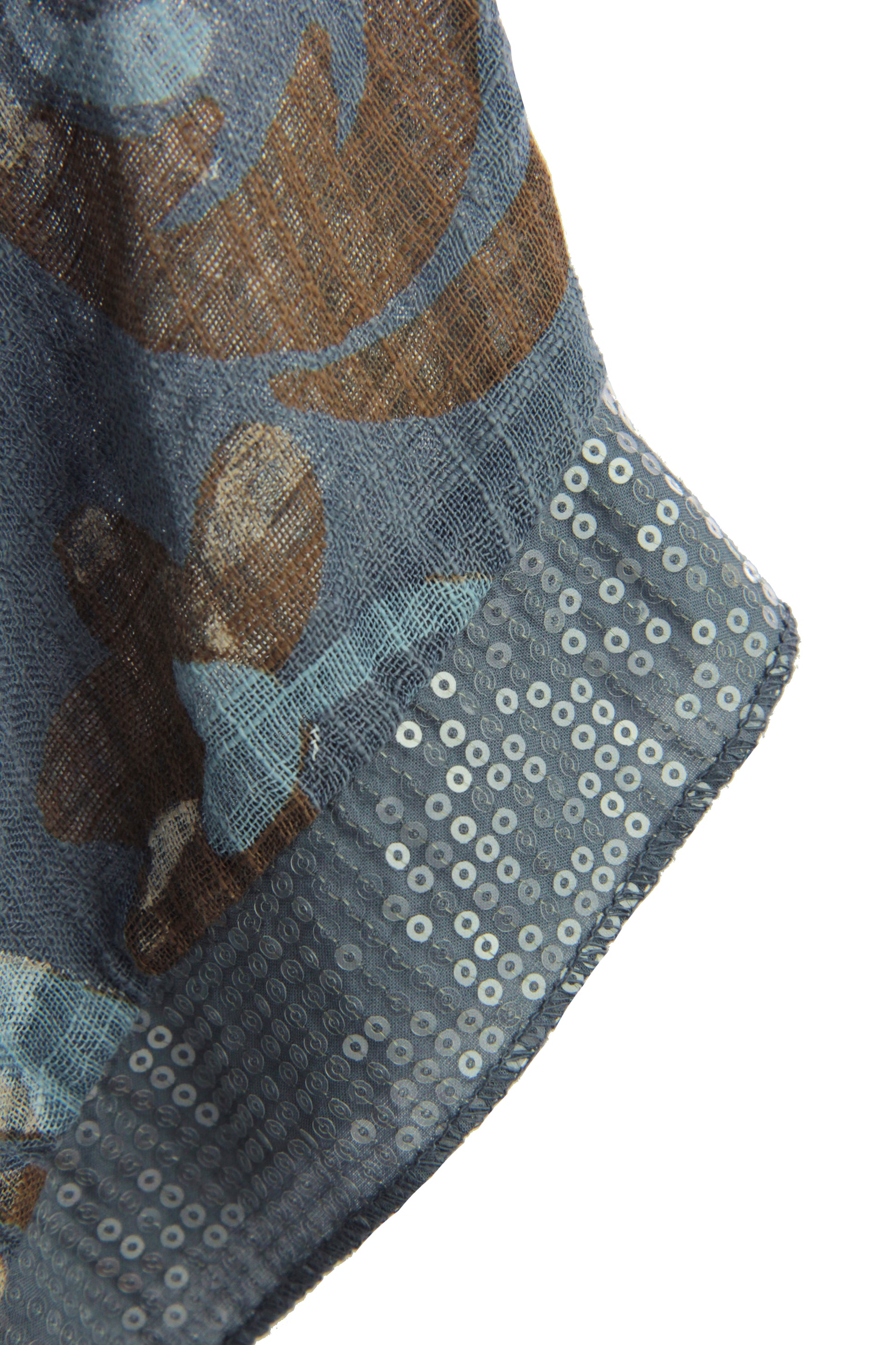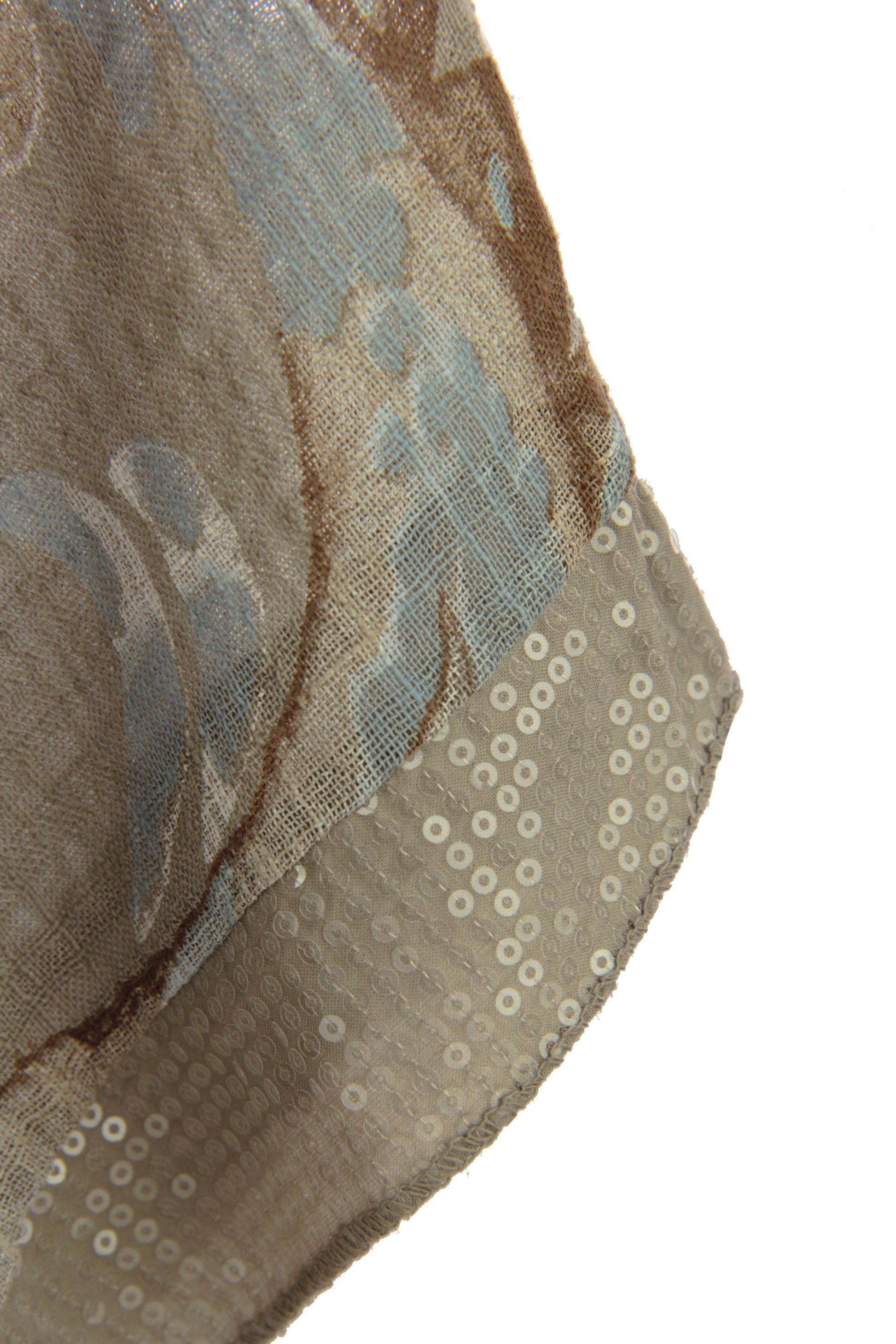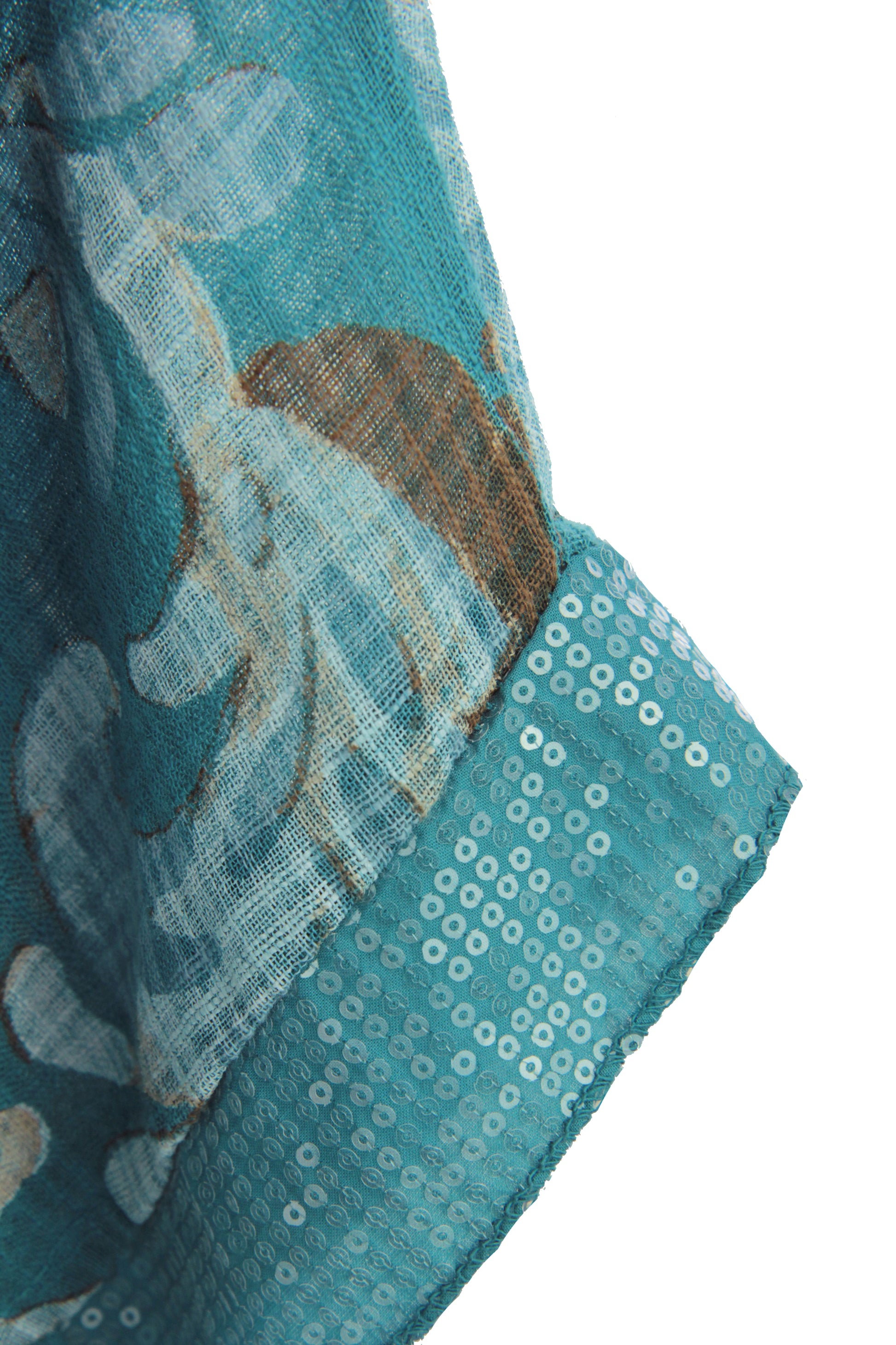 The distinctive batwing sleeves with delicate sequin trim details that add a subtle sparkle.