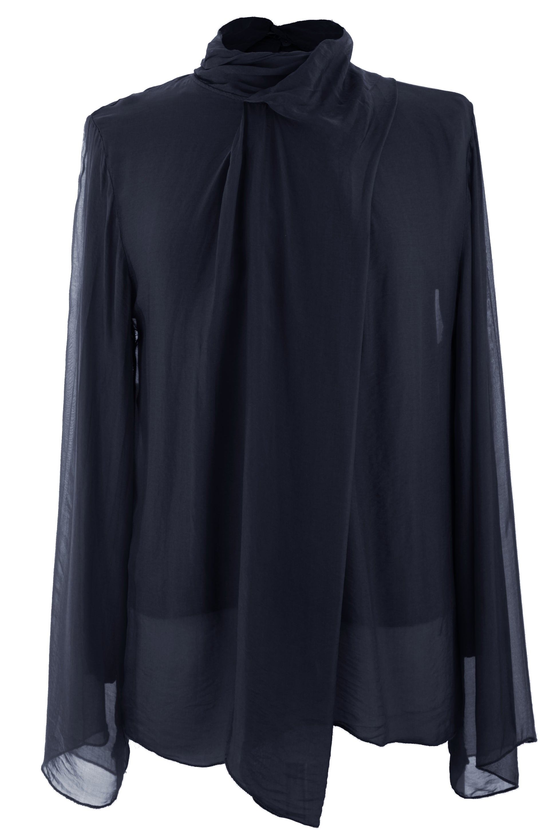 Crafted from flowing silk, this long-sleeve blouse offers both luxury and comfort with its relaxed, flattering silhouette.
