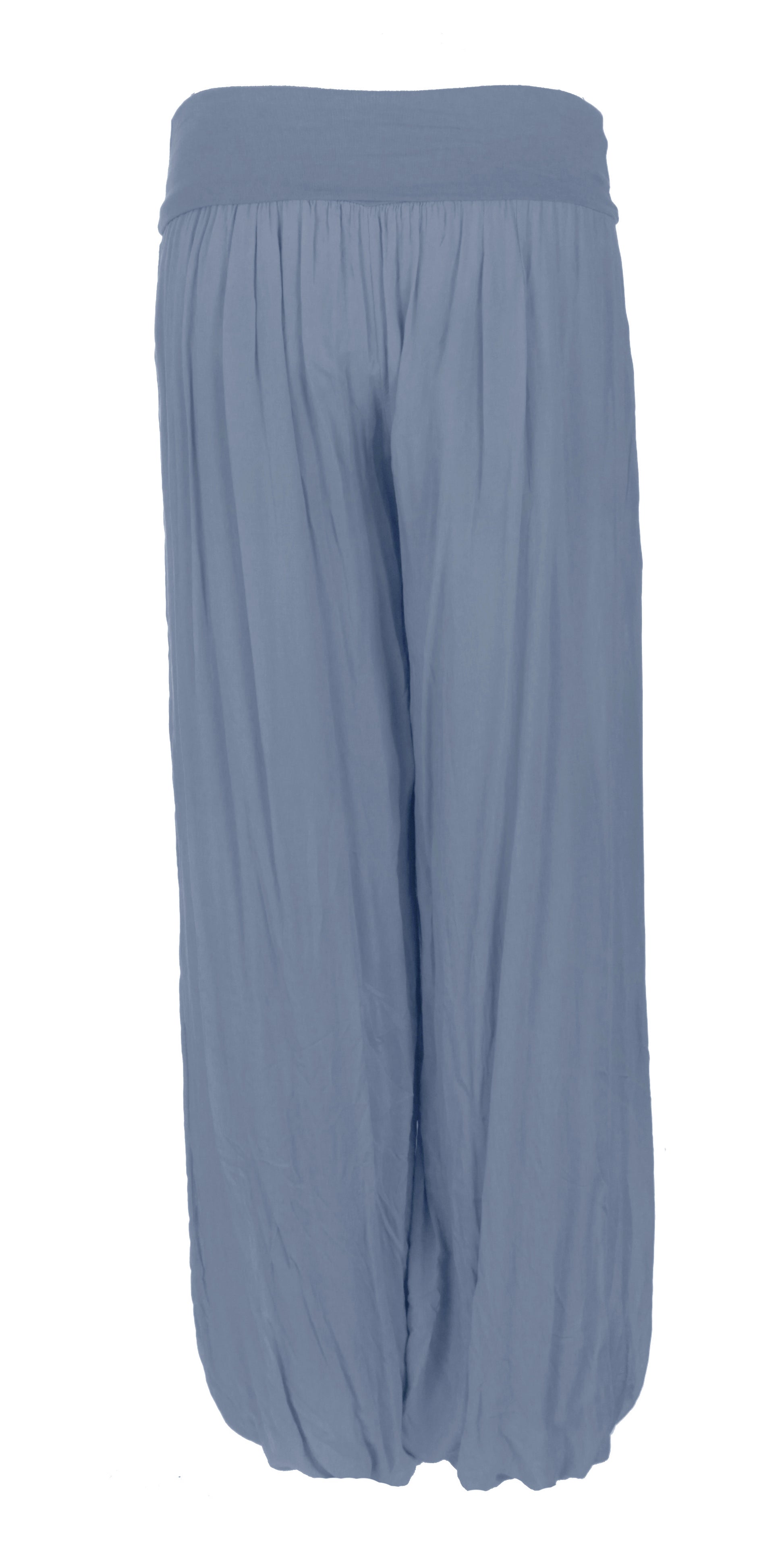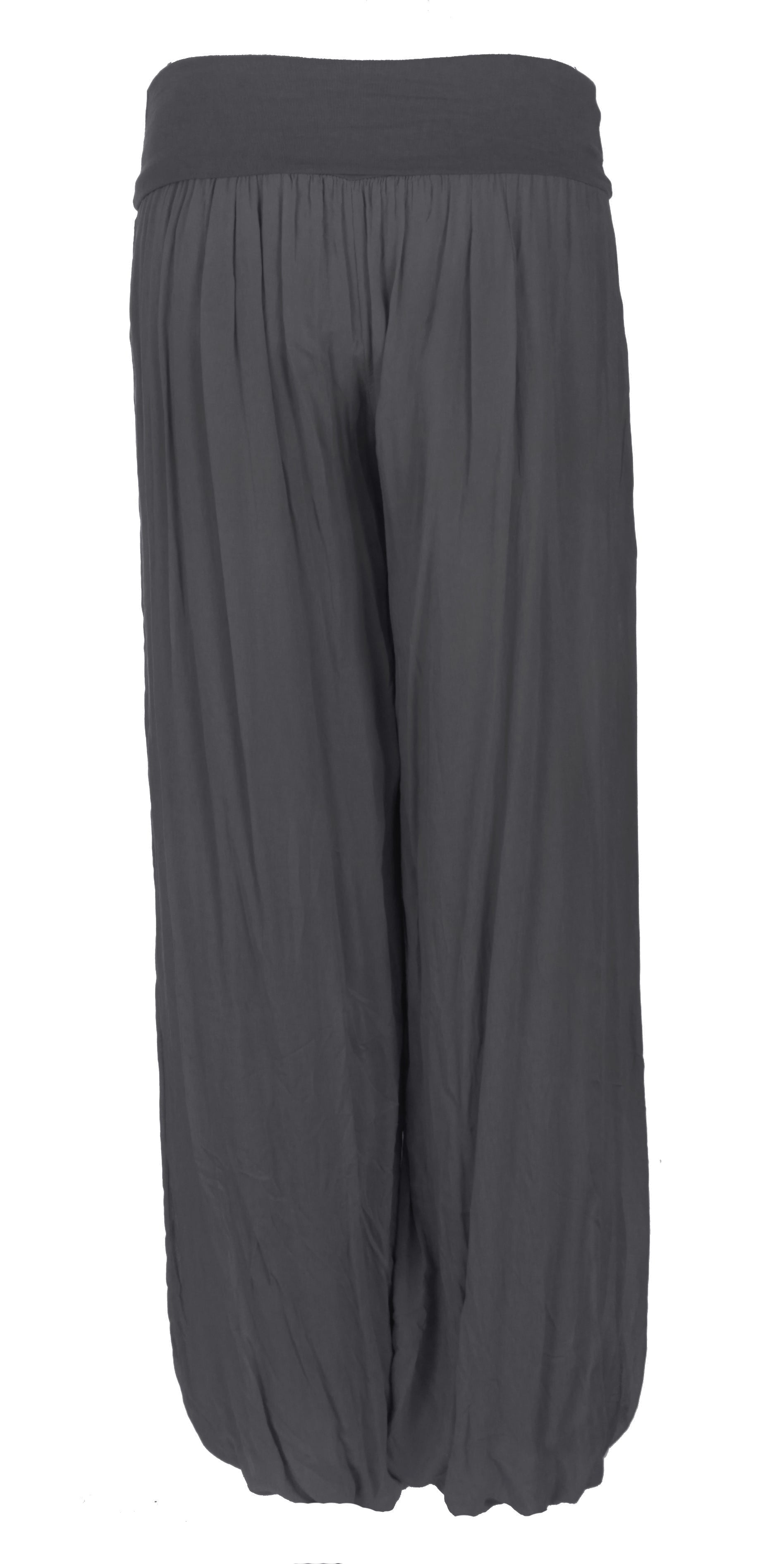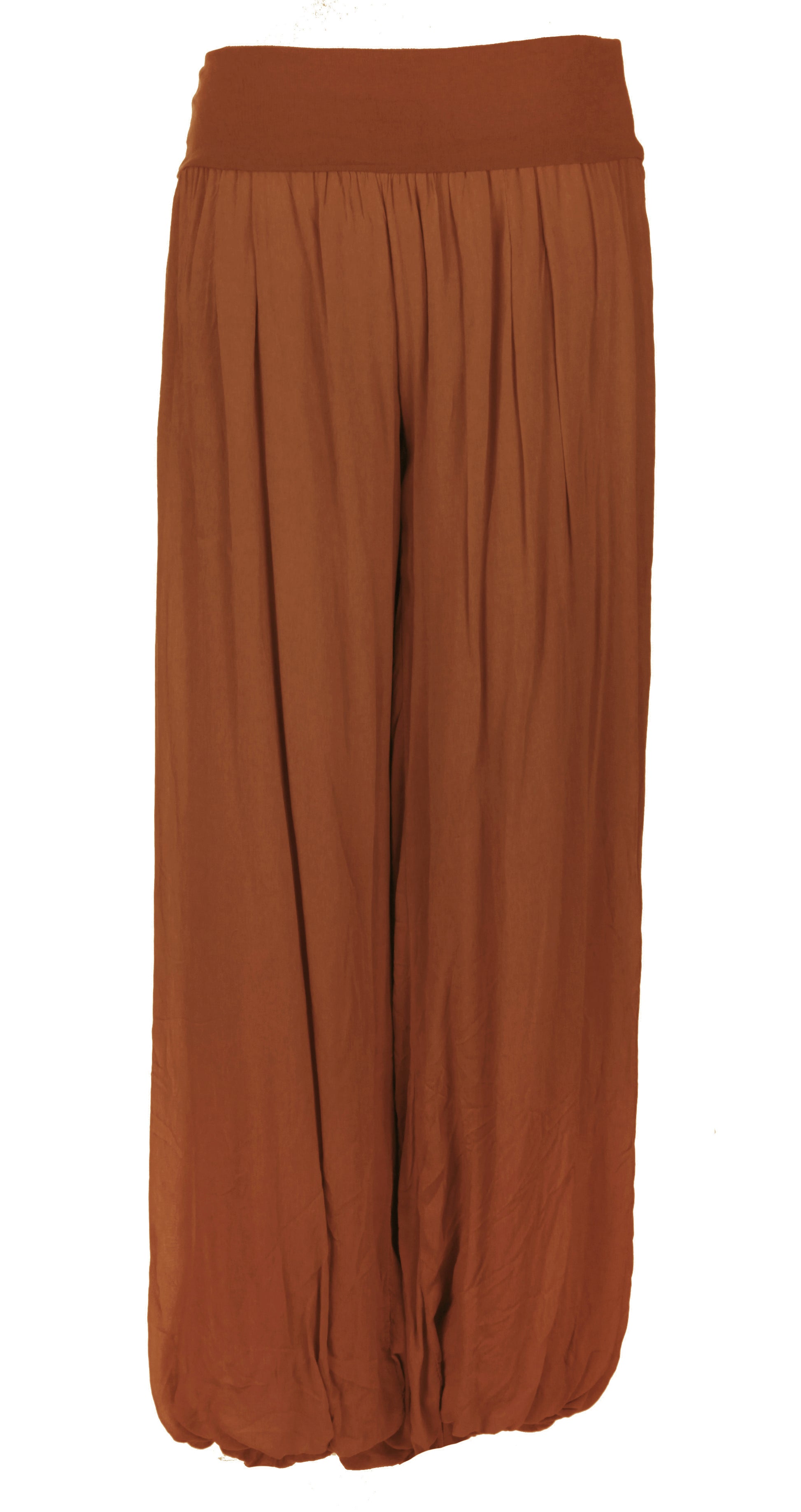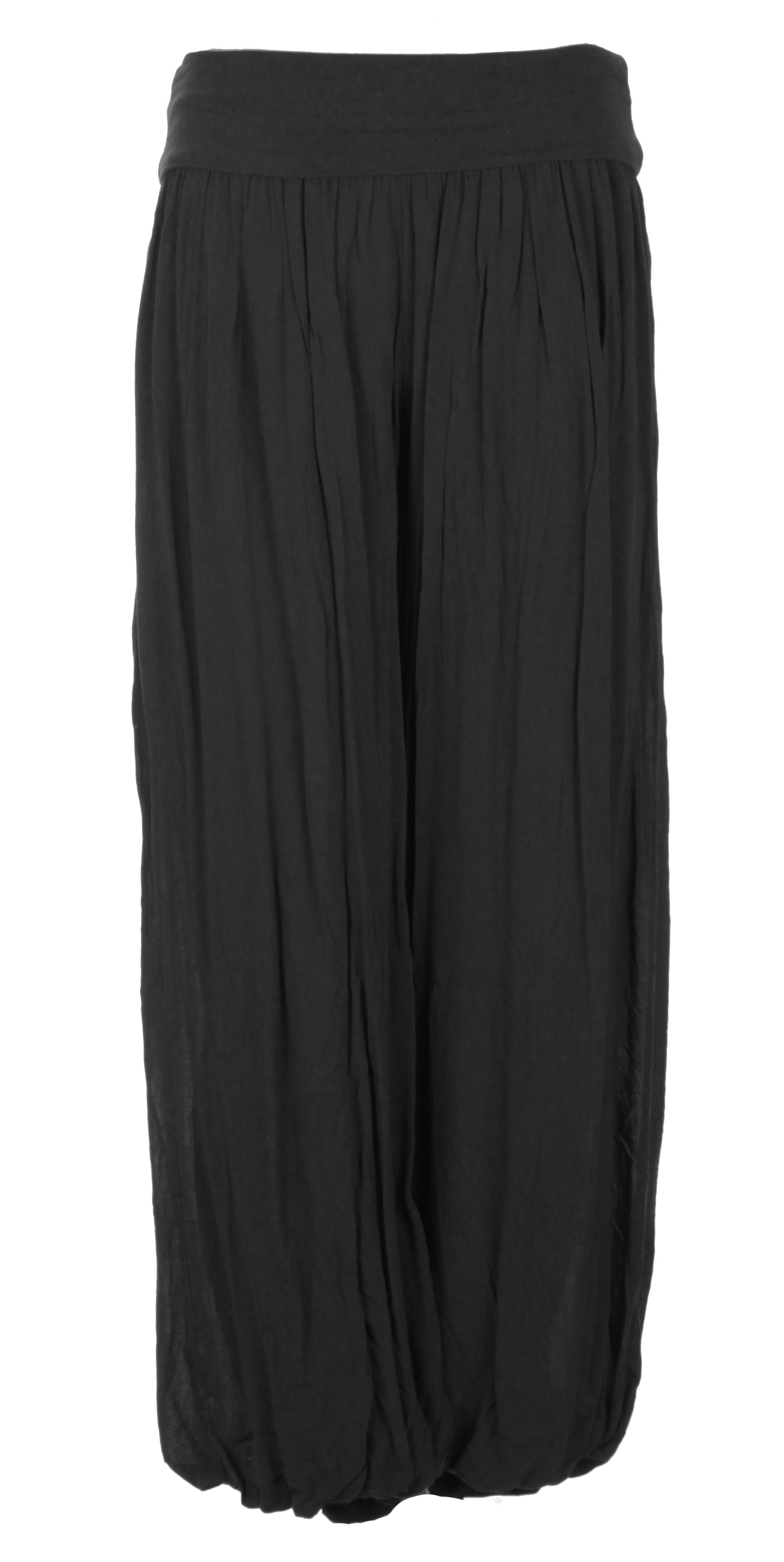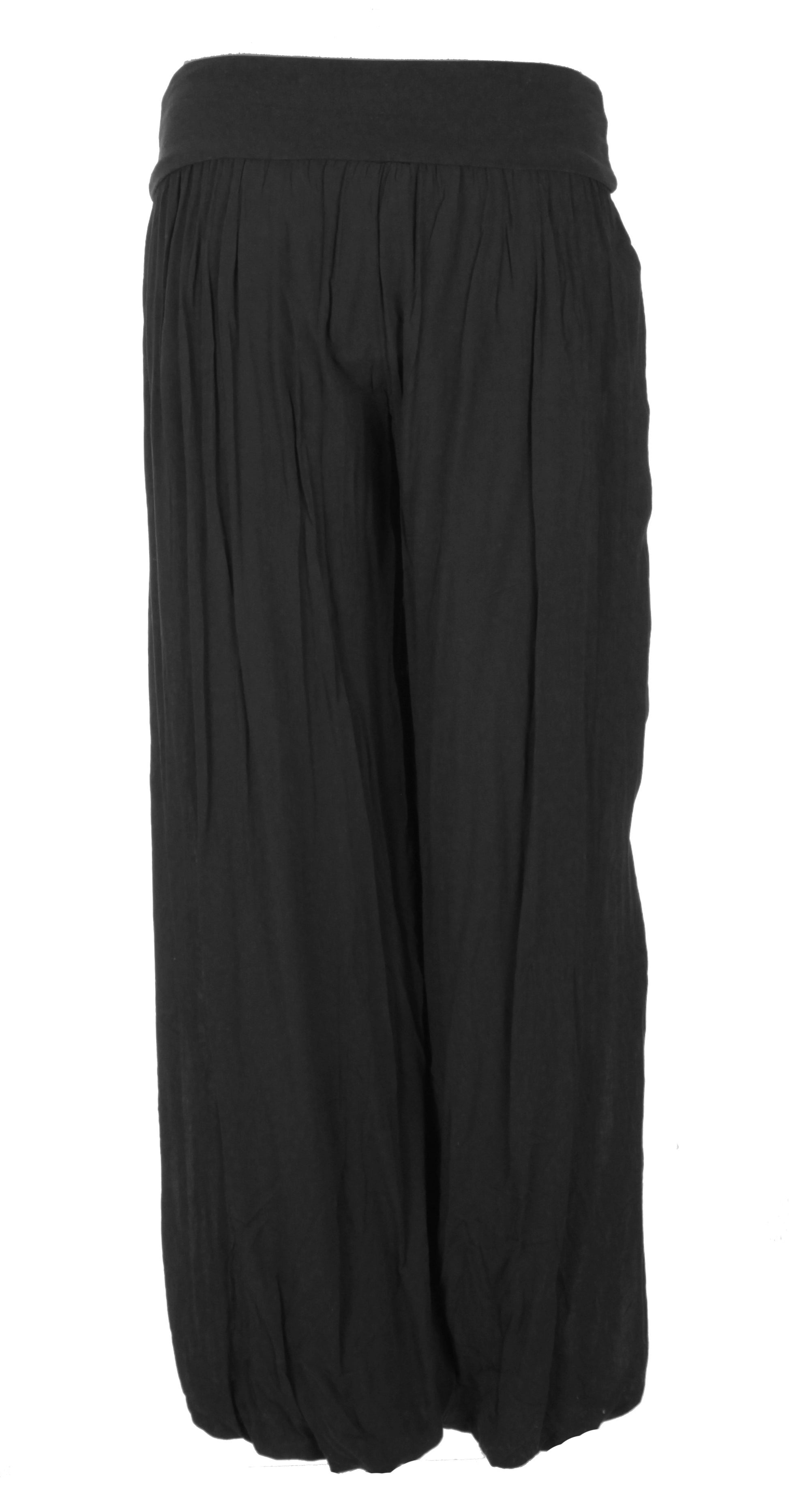 I have now got a few of these trousers, 2 brown, 1 black, 1 navy, 1 dark grey and 1 mustard. The first ones (brown and black I bought in a boutique in Cornwall about 4 years ago. When I saw them on this site I was so pleased. They are super, super comfortable. At only 5'2" I have to fold them over quite high but for anyone with a tender tummy who bloats out like a beach ball after eating these are perfect. I am normally a size 8-10 and a 10 is sent as a medium which fits just fine. I'd like to get another one in black but they haven't had it in my size since I first saw them (to the company, please can you get some more black in in a smaller size).