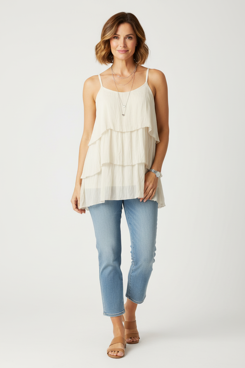 Elevate your summer wardrobe with this ethereal Italian-style silk blend vest top.