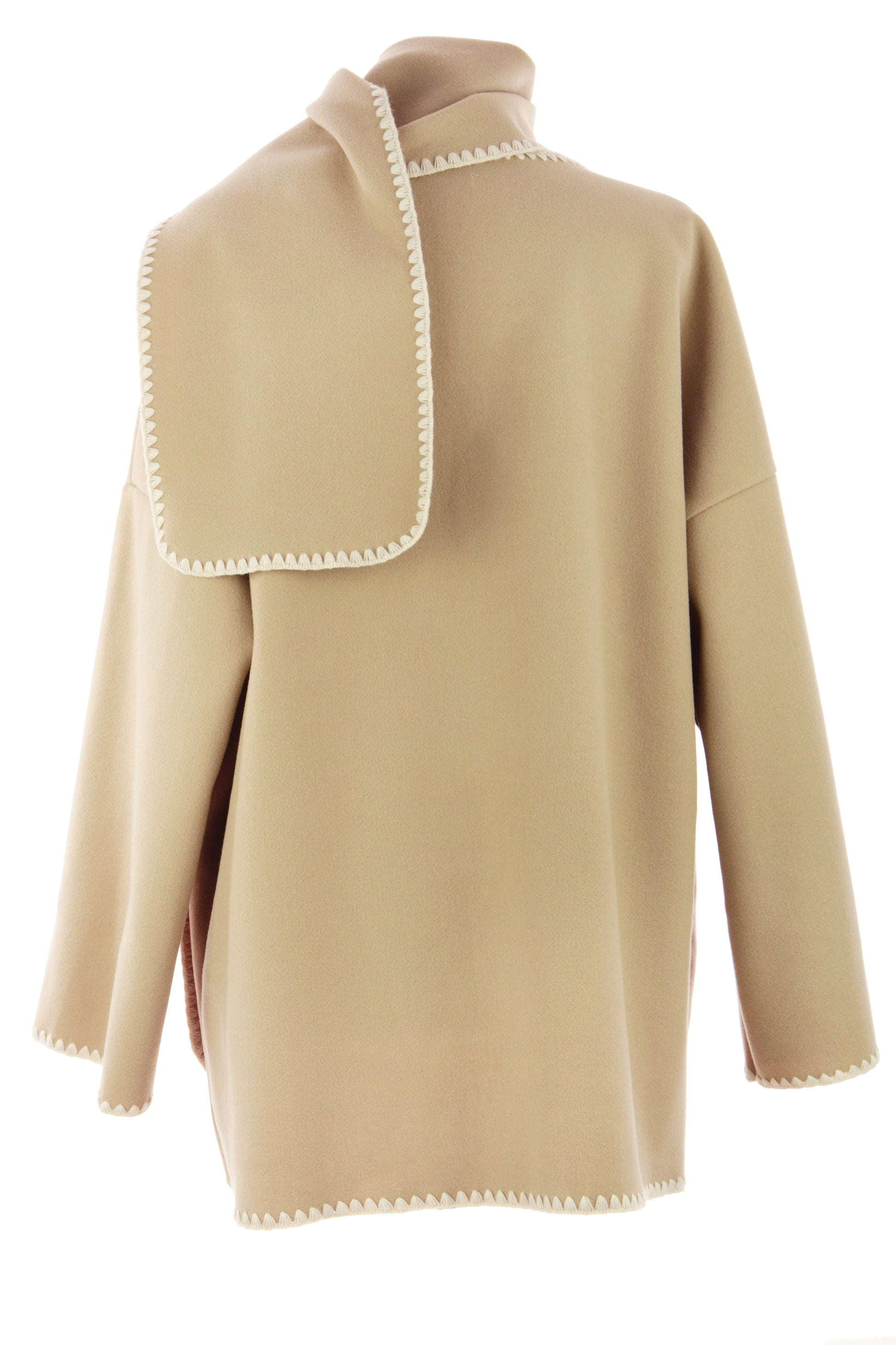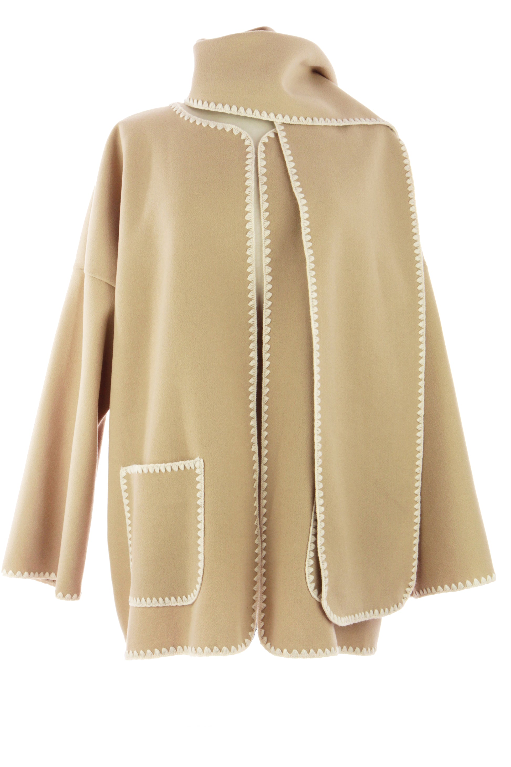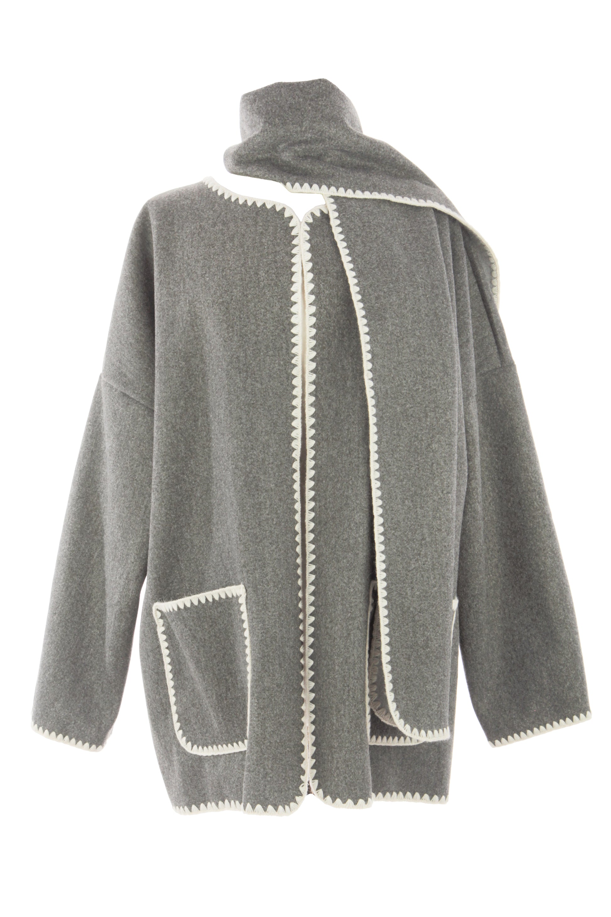 - Cut to an oversized silhouette, the outerwear design comes with a matching scarf, so you don’t have to worry about carrying one during the colder months – simply throw it over your neck to stay protected from the harsh winds.