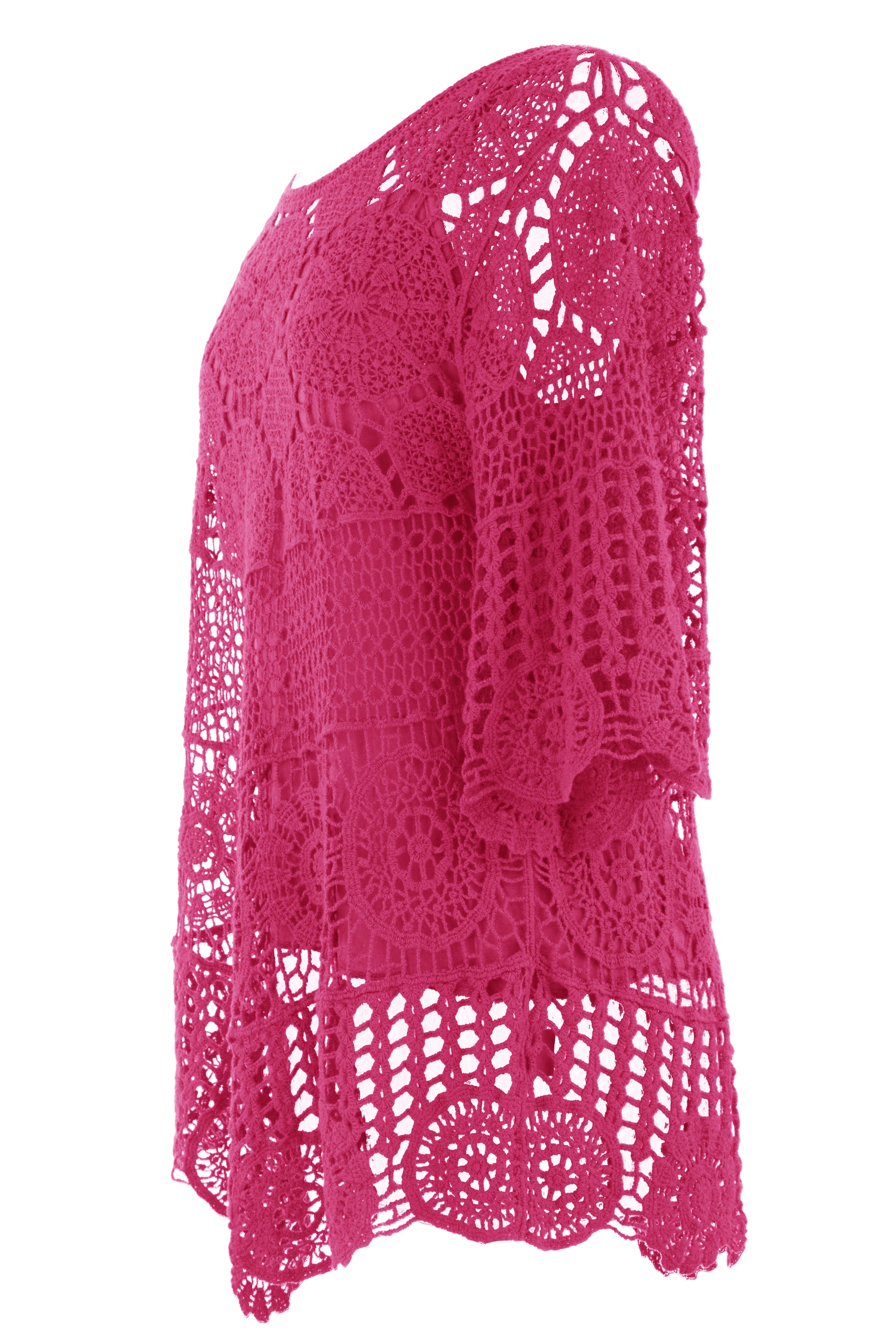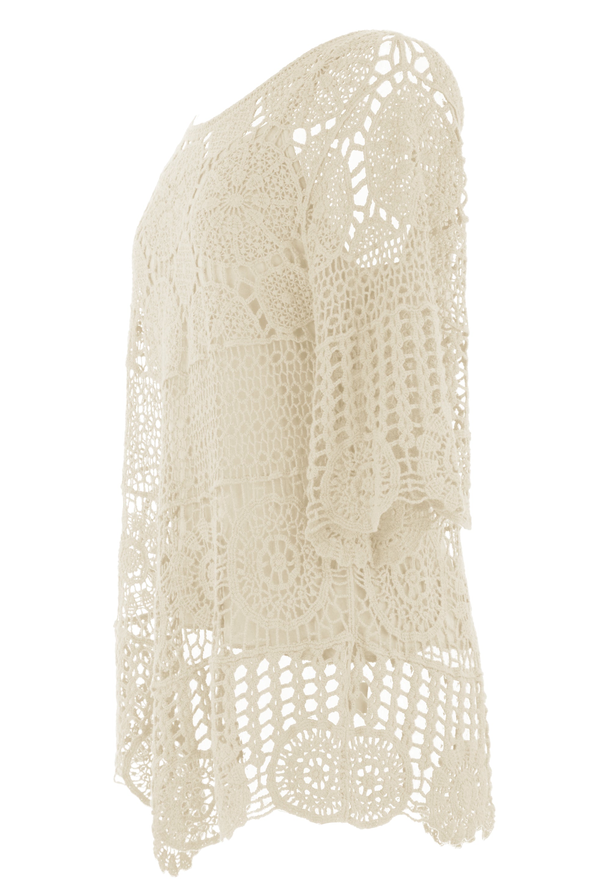 An essential addition to your wardrobe, this beautiful crochet knit blouse is full of texture for an elevated touch.
