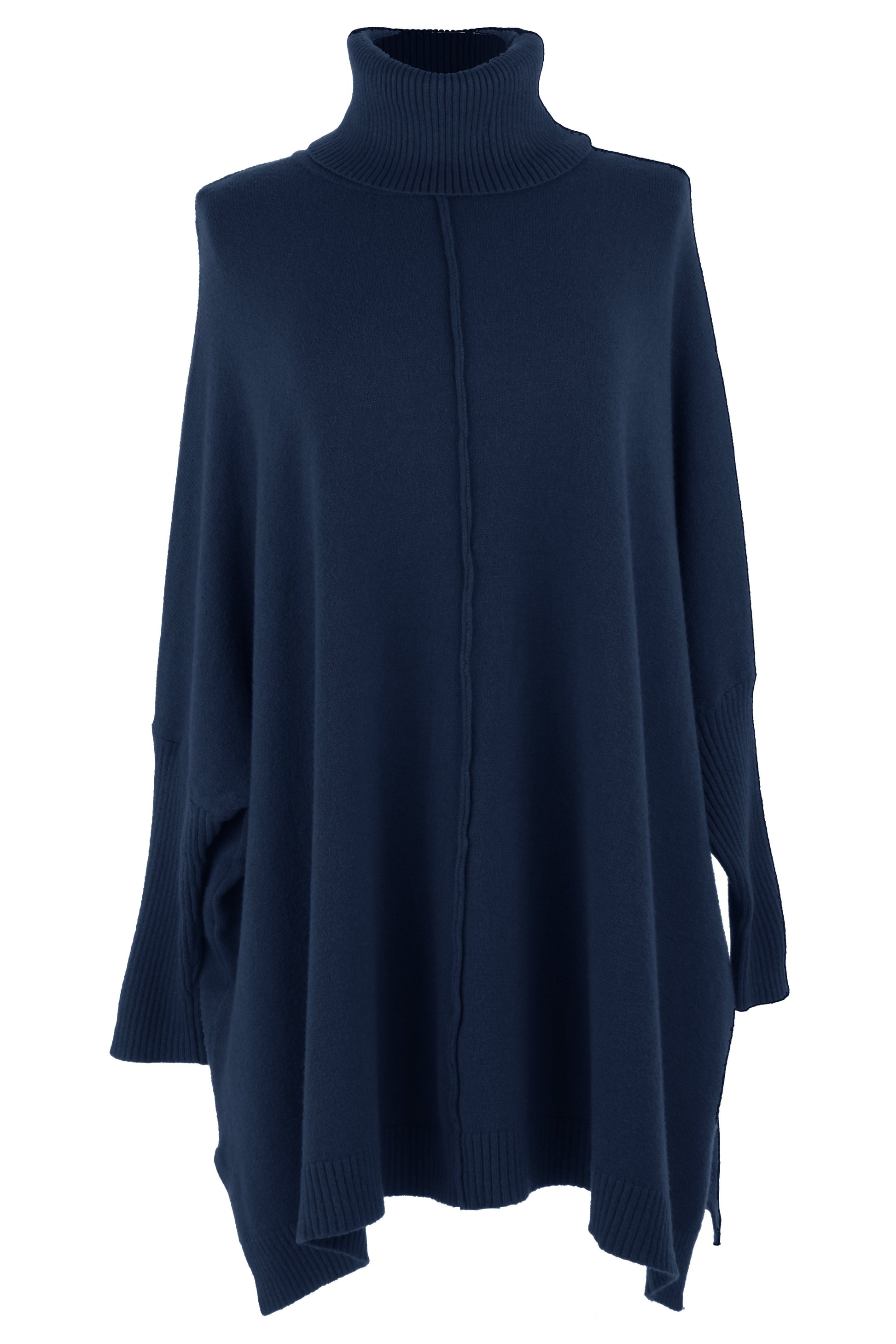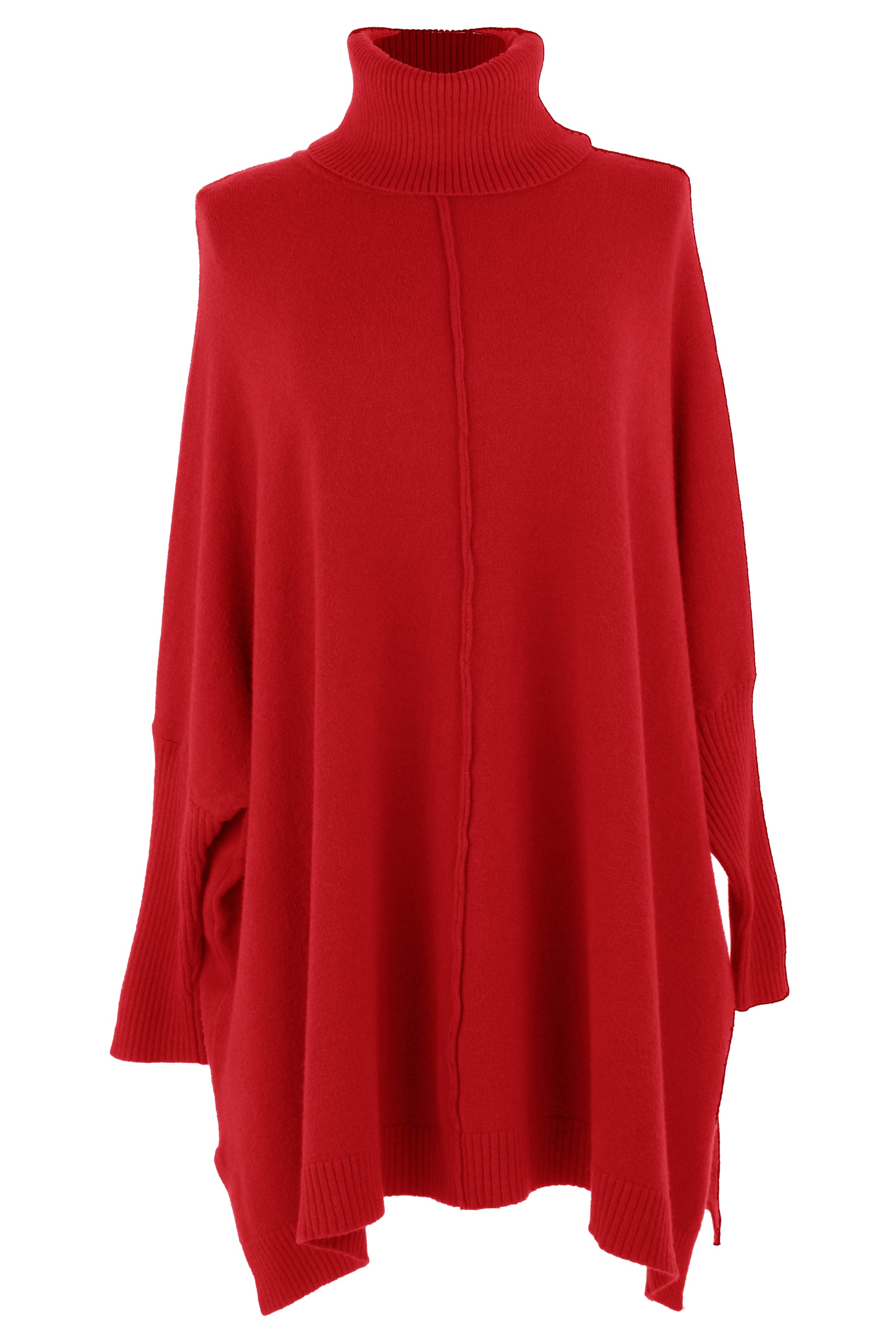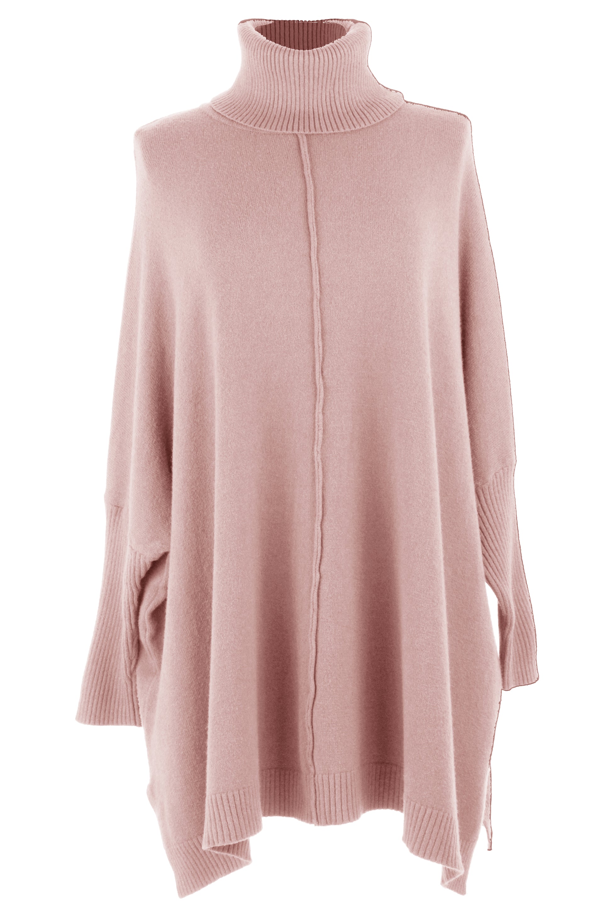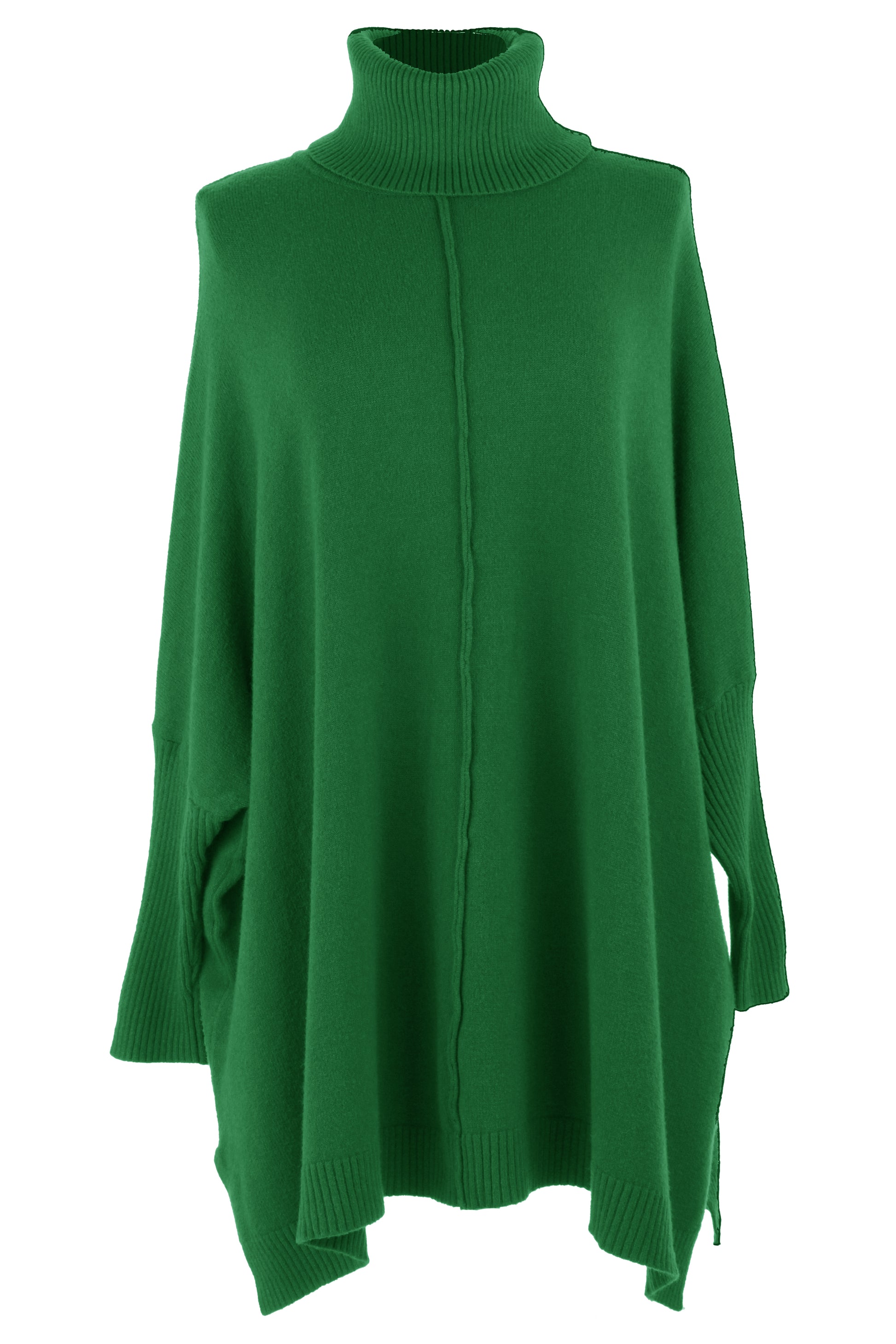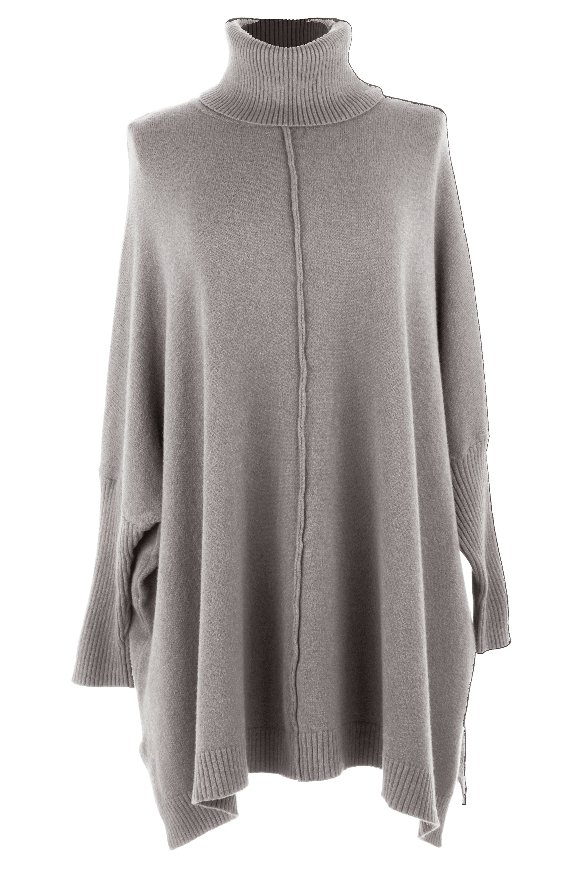 The batwing long sleeves with ribbed cuffs and oversize silhouette create a chic, laid-back look.