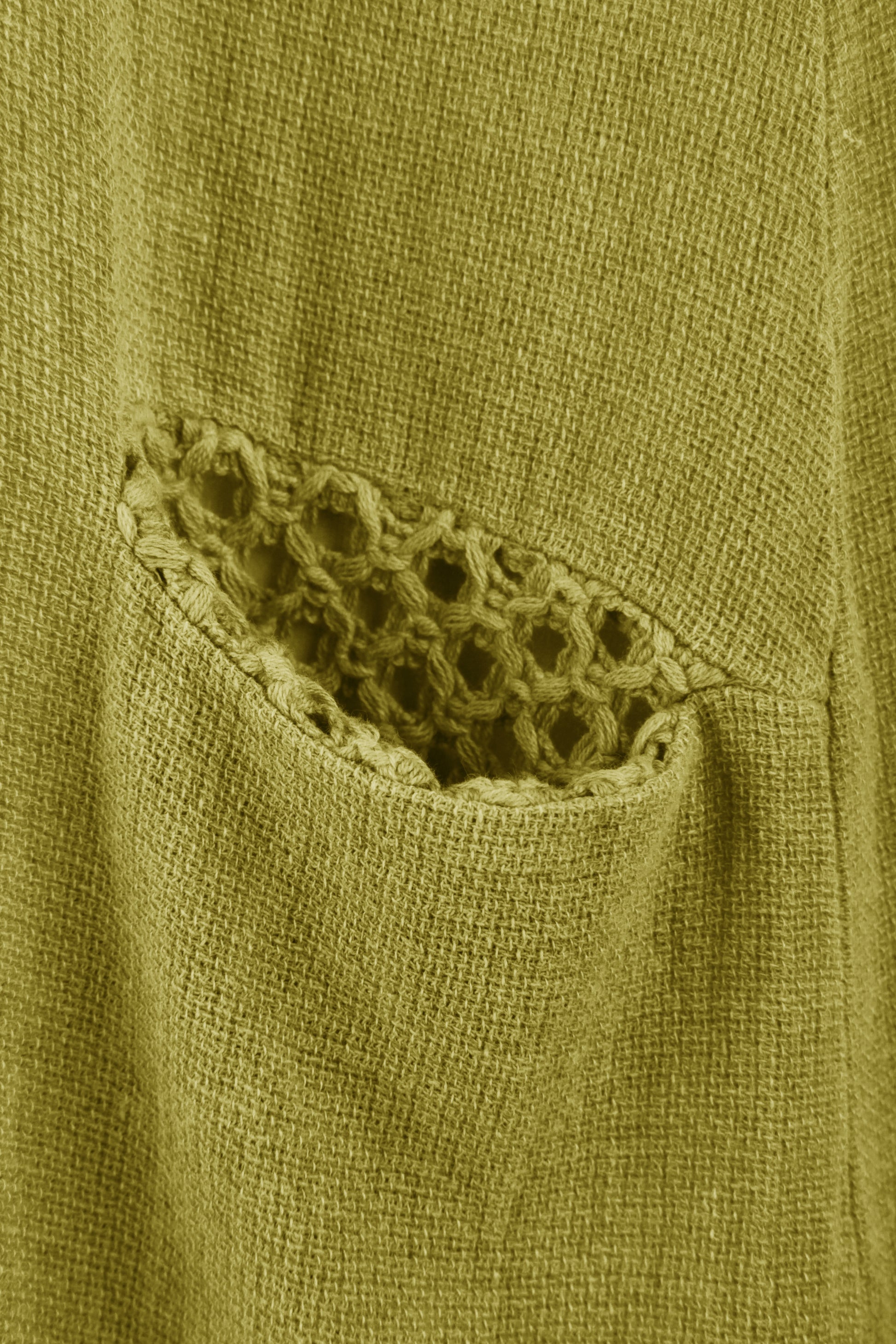 Practical slit pockets with matching crochet detailing on the inside provide everyday functionality without compromising on style.