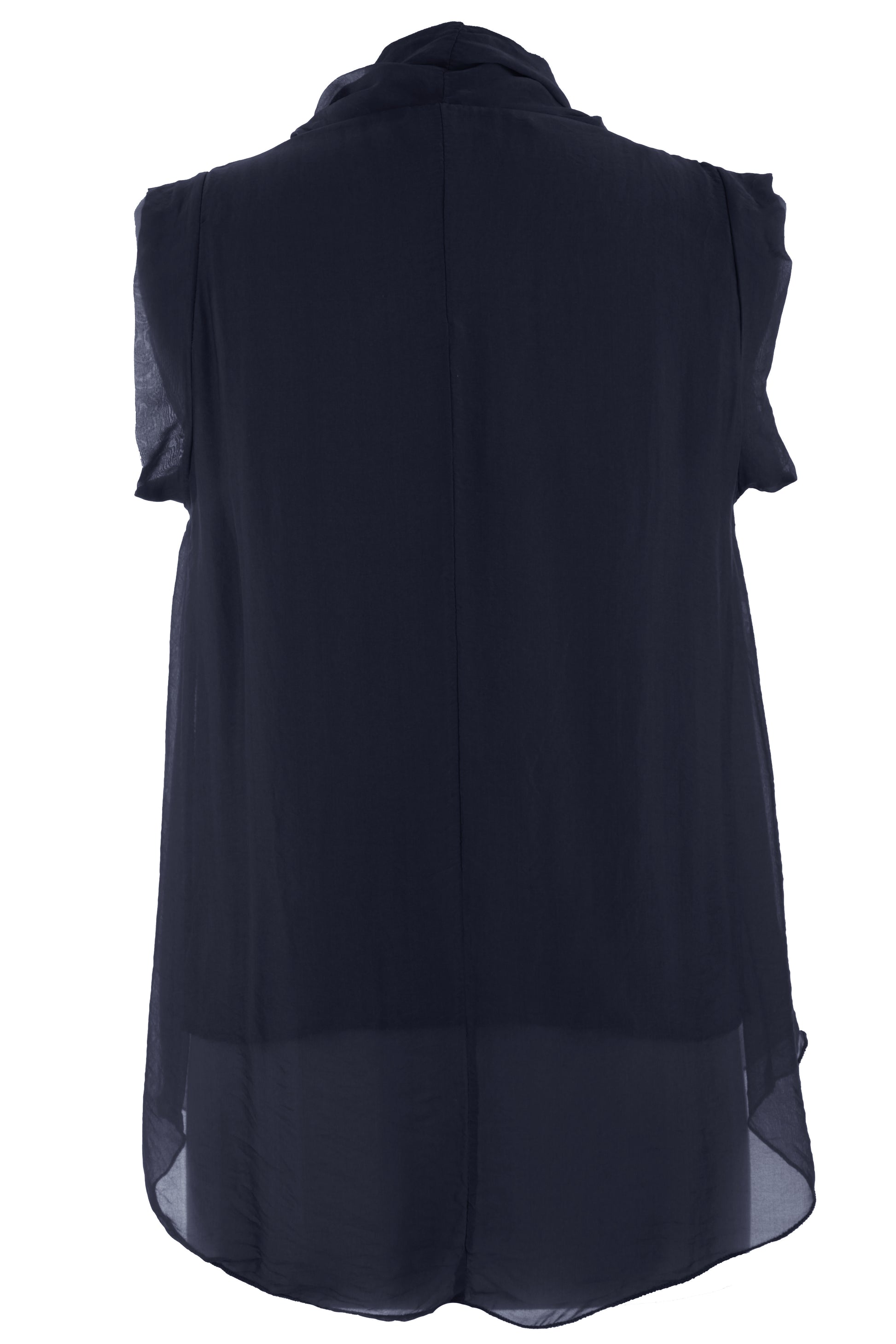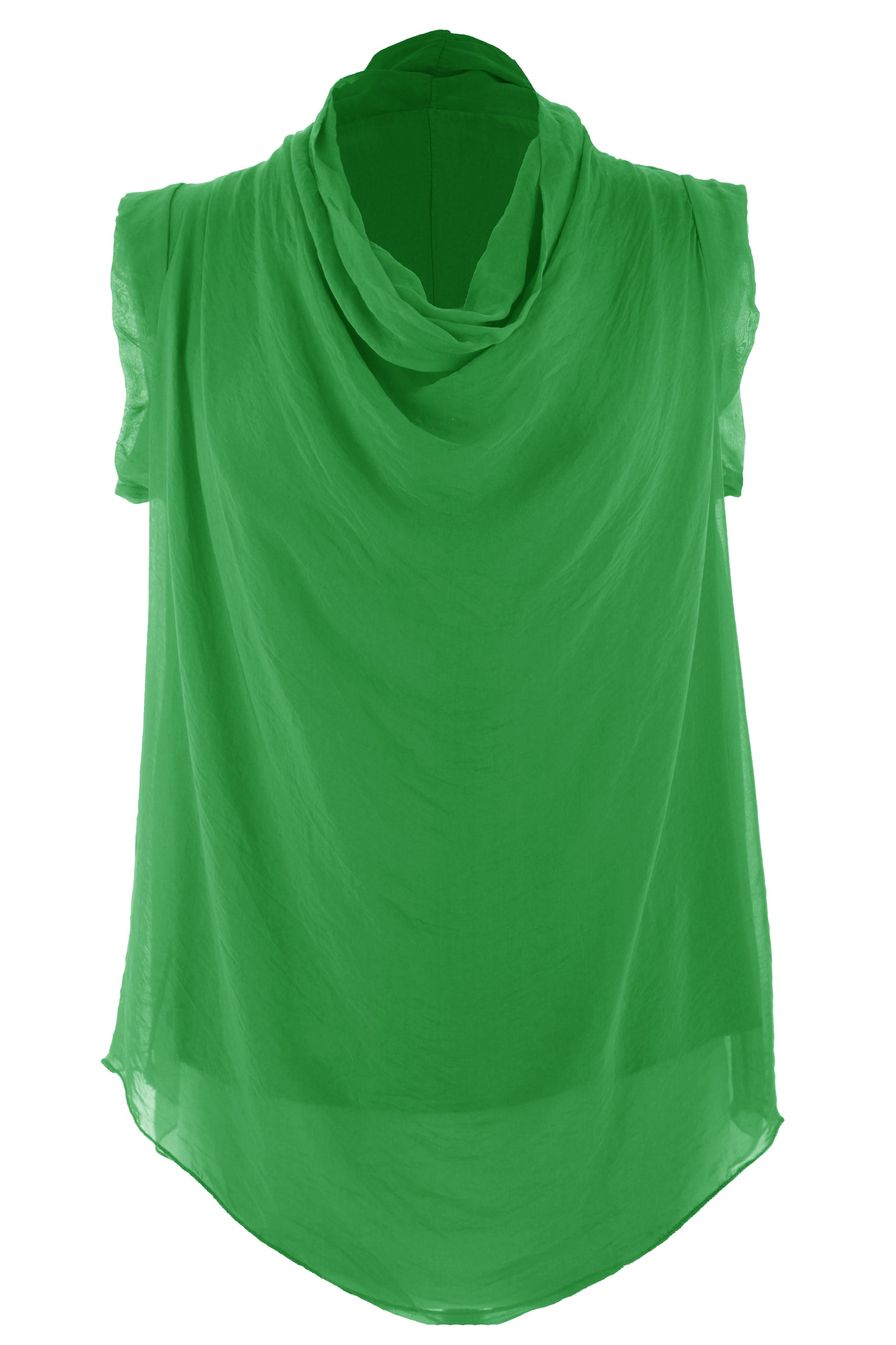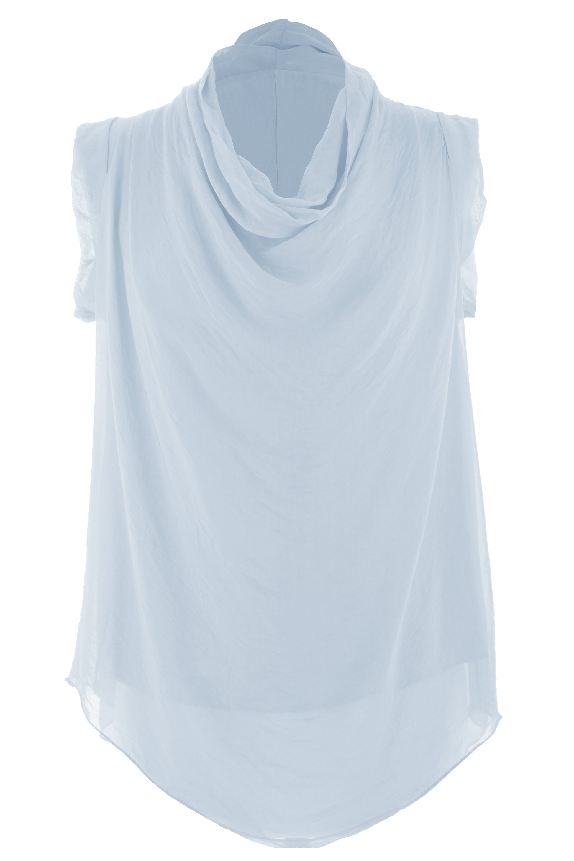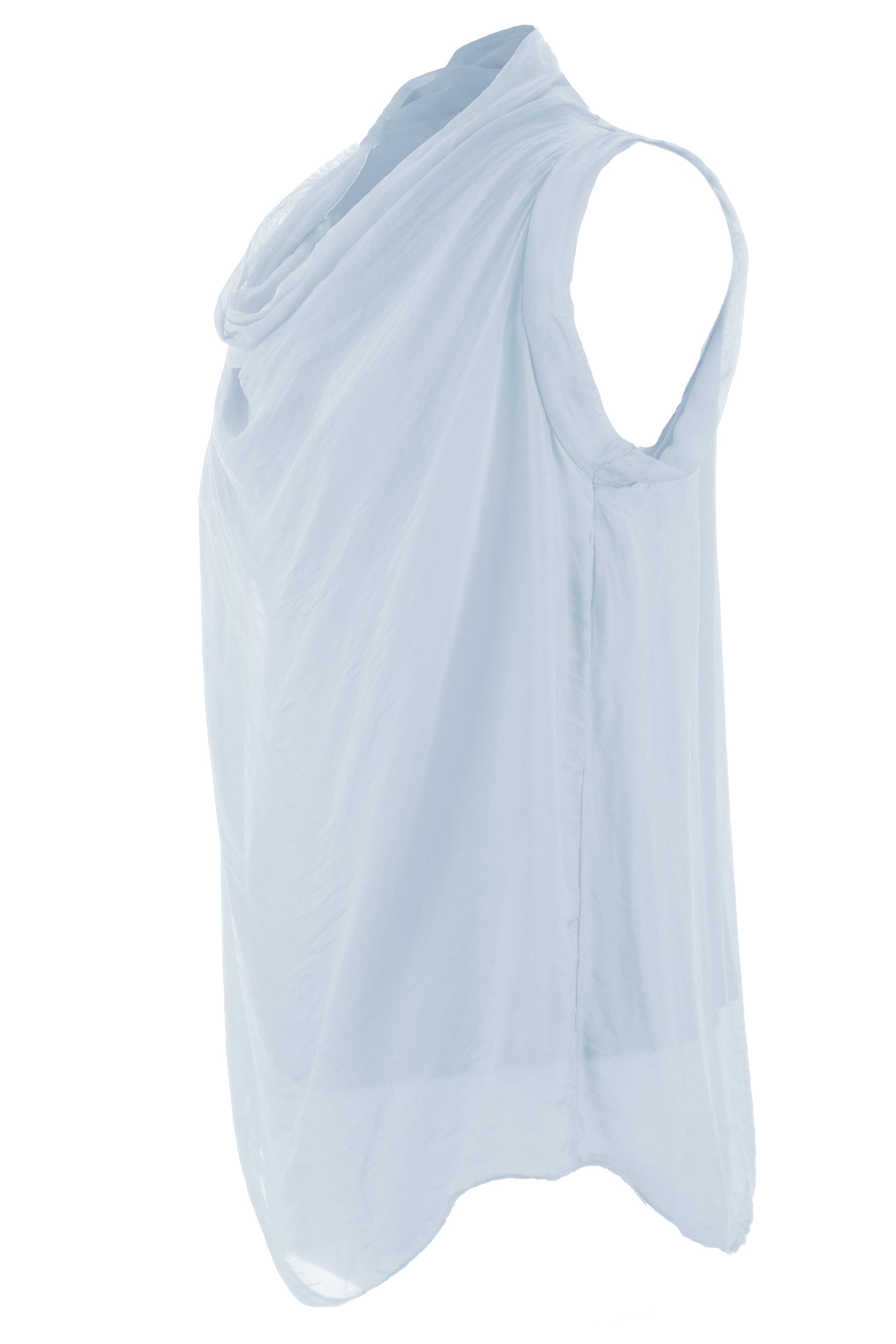 This sleeveless silk top features an elegant cowl neck that drapes beautifully, creating a flattering silhouette.