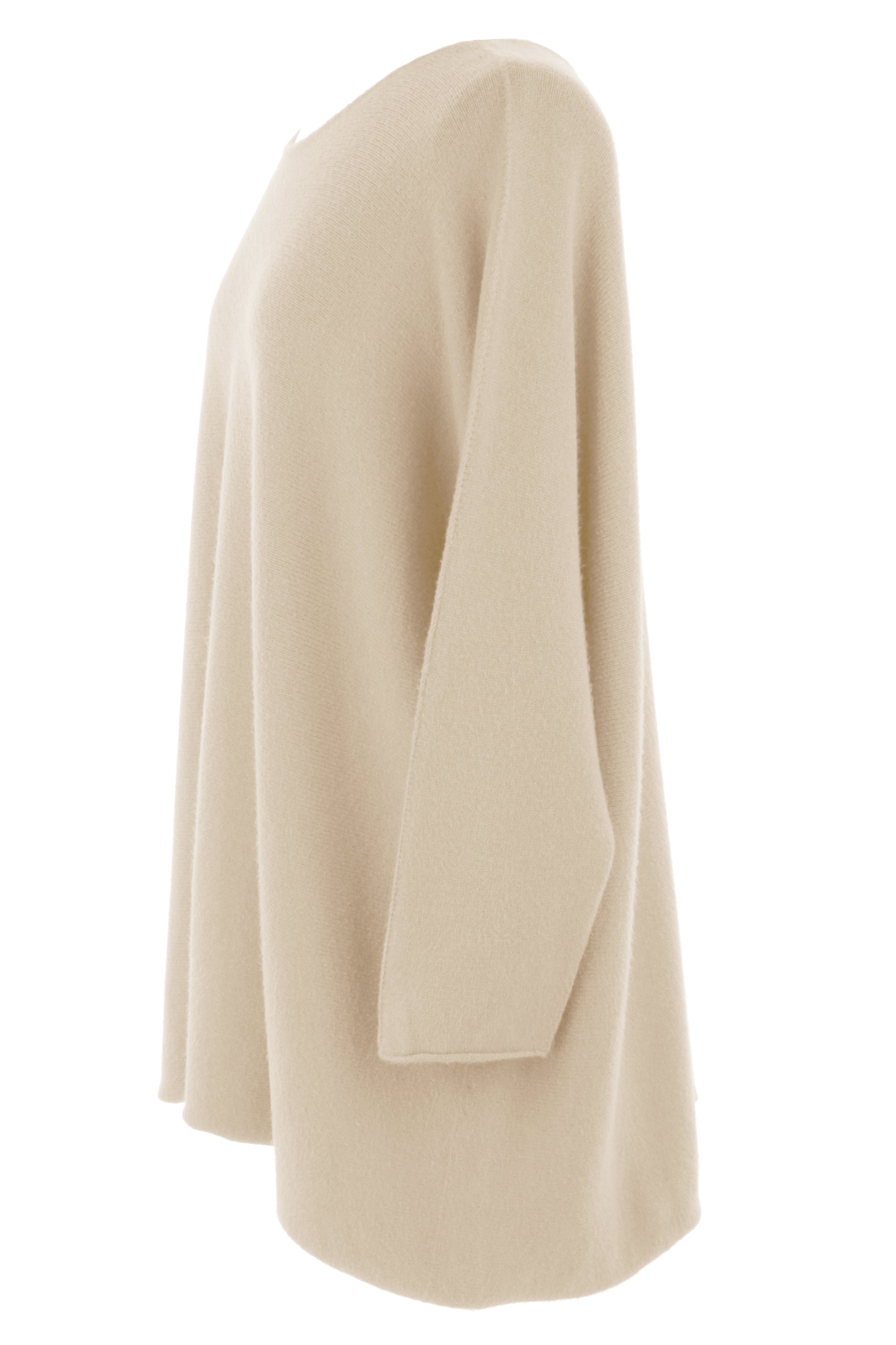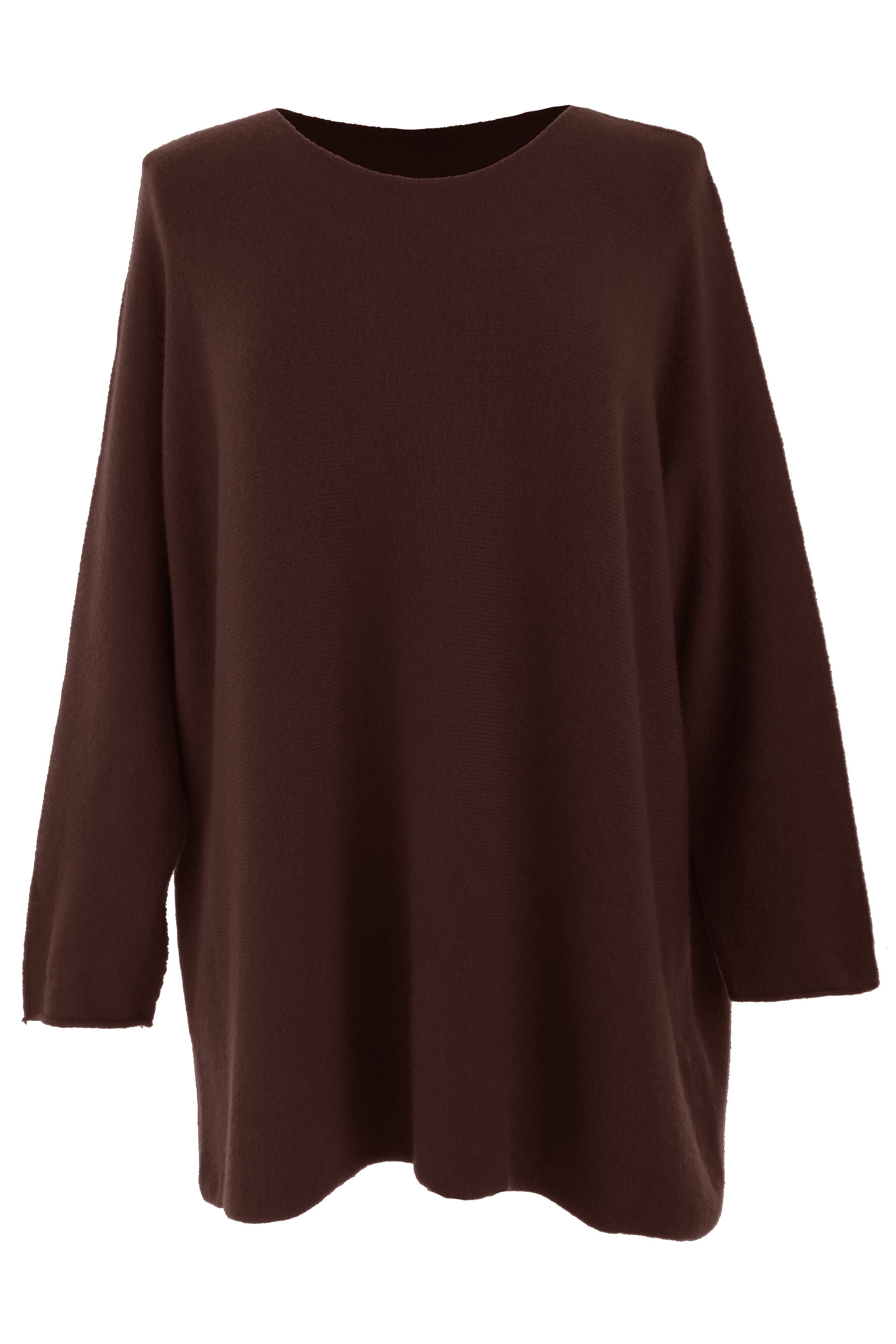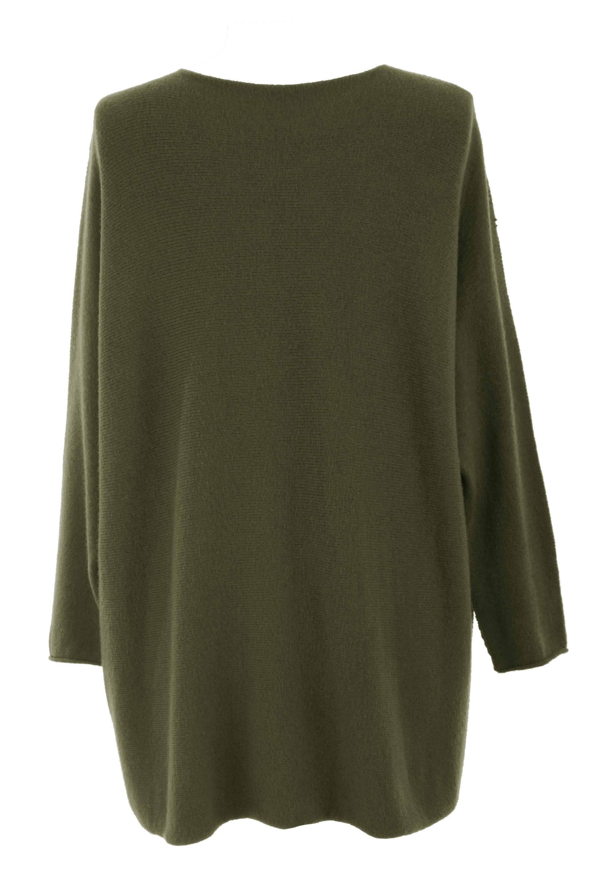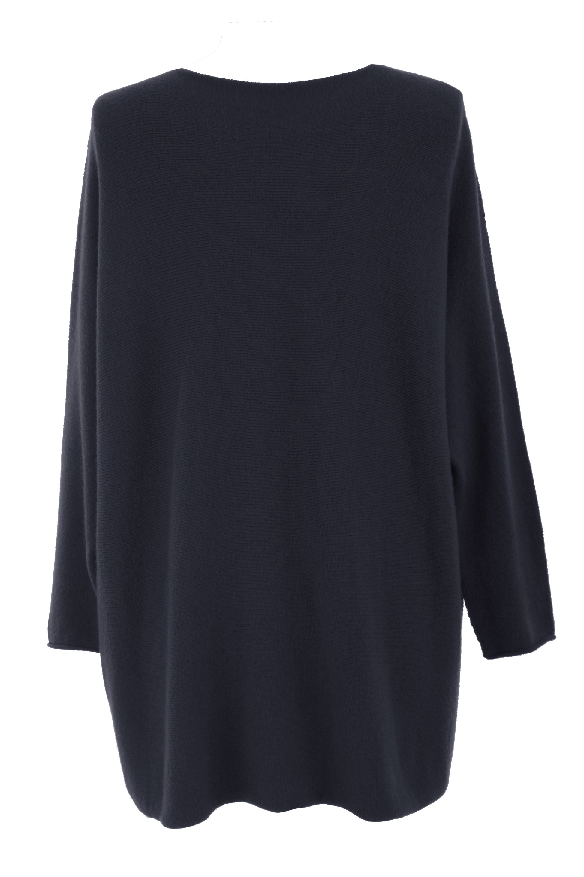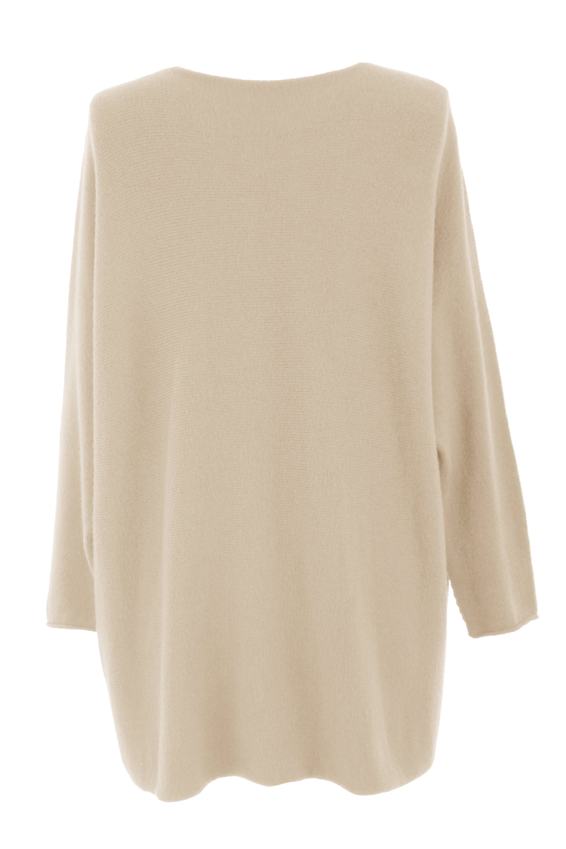 The oversized silhouette features a flattering scoop neckline and relaxed long sleeves that create a graceful drape.