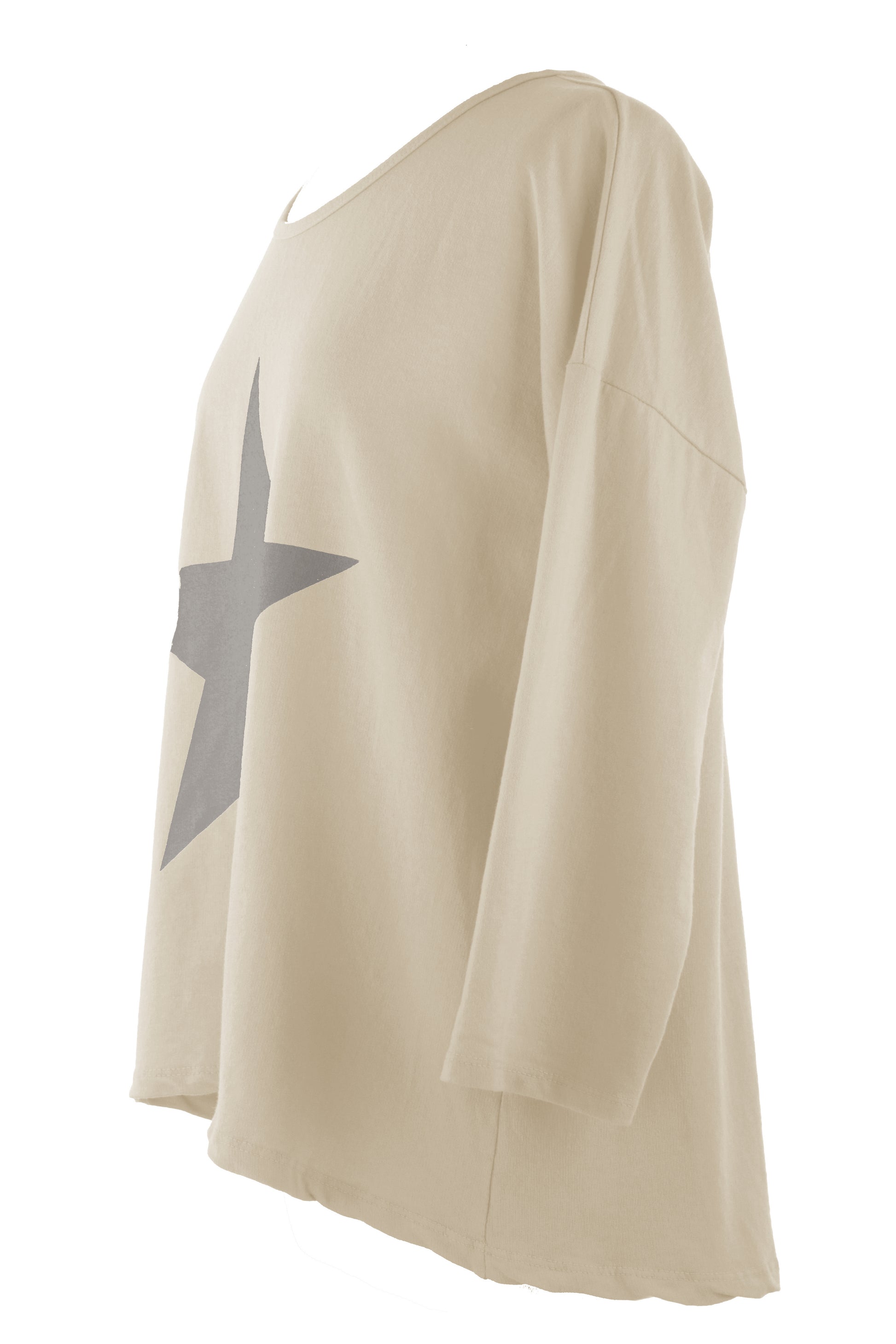 - Designed in a relaxed silhouette with a scoop neckline, star detail on the front and long sleeves.