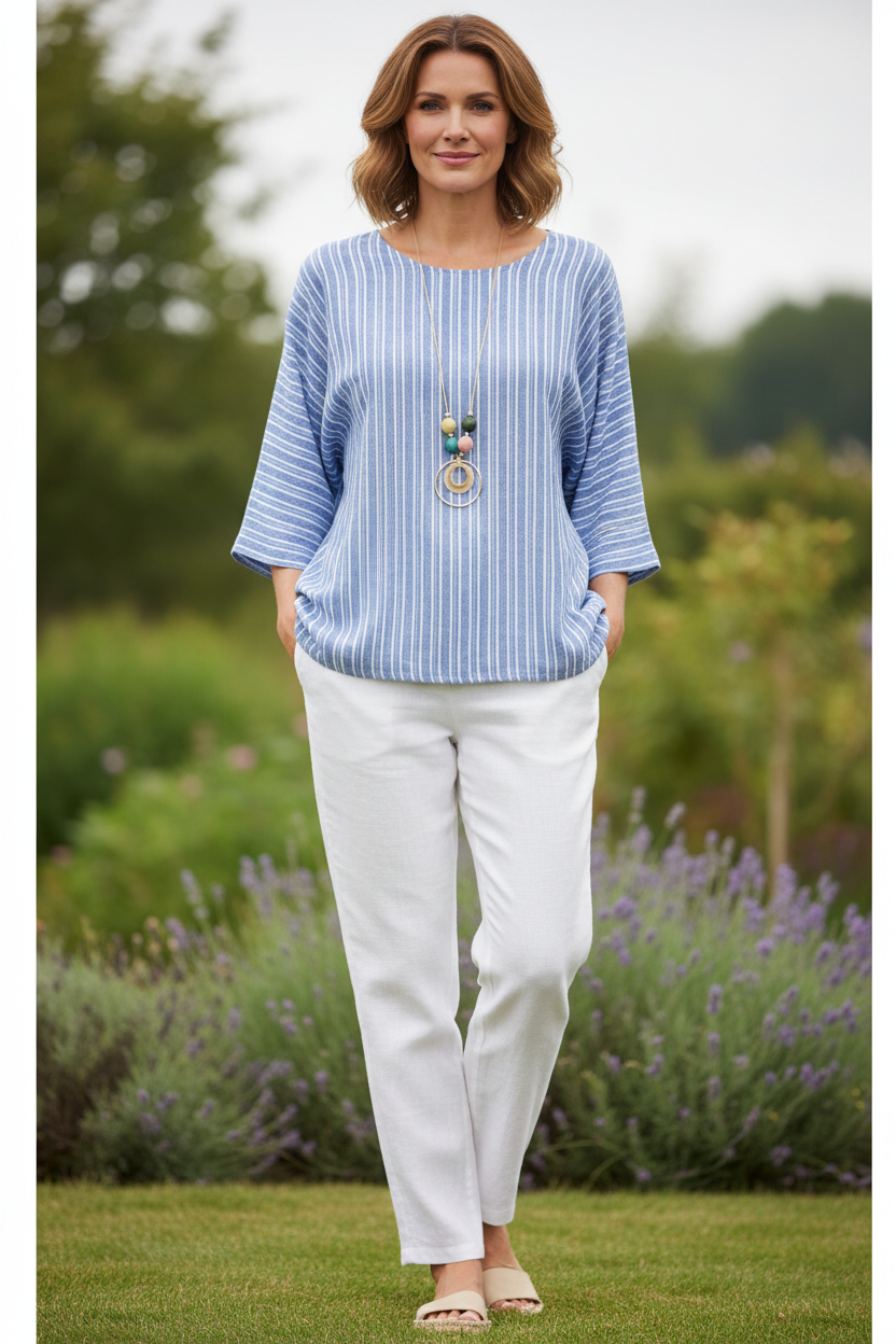 Whether paired with our matching stripe trousers as a co-ord set, jeans, or skirt, this top transitions seamlessly from casual daywear to a smart evening look.