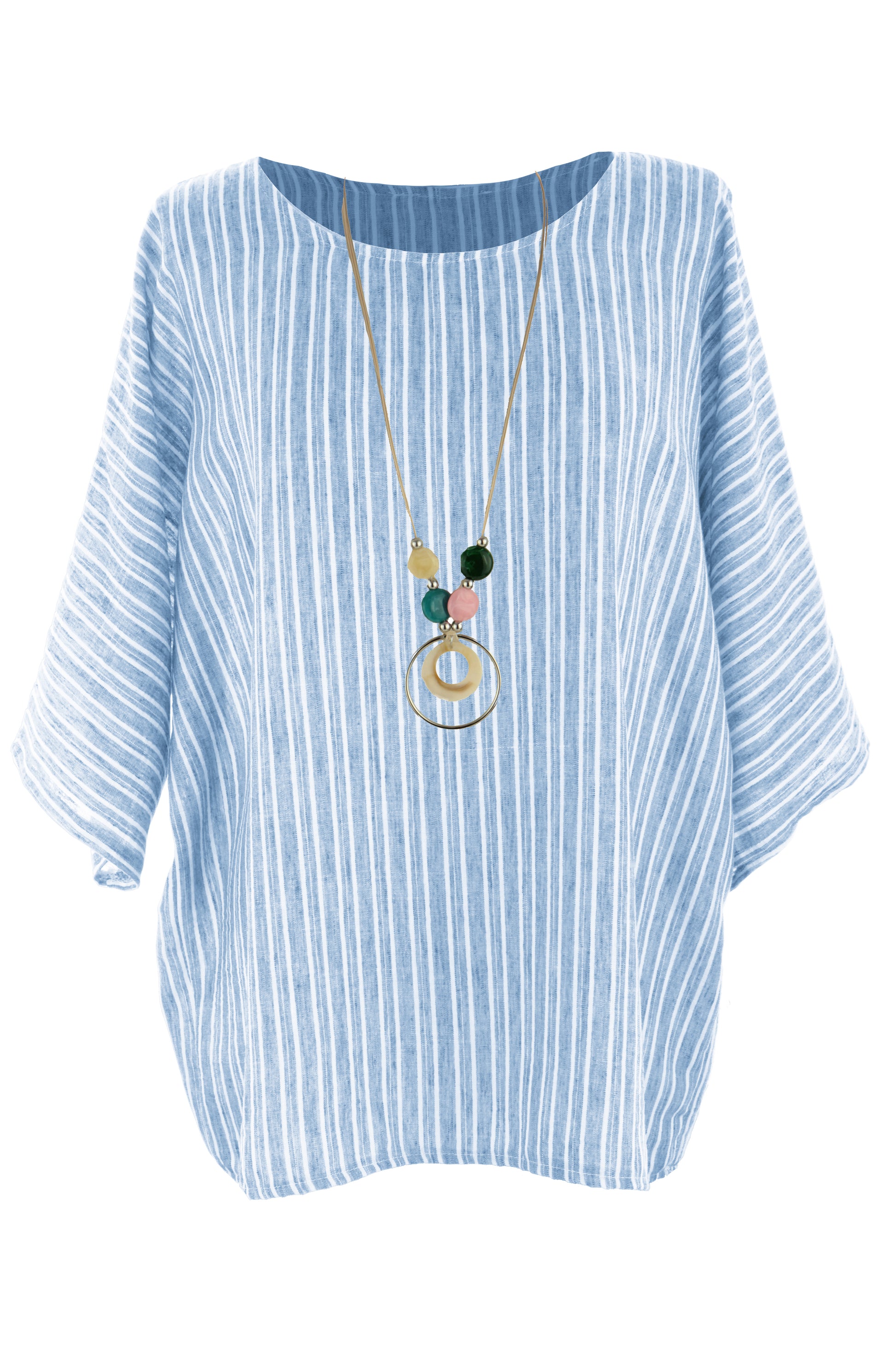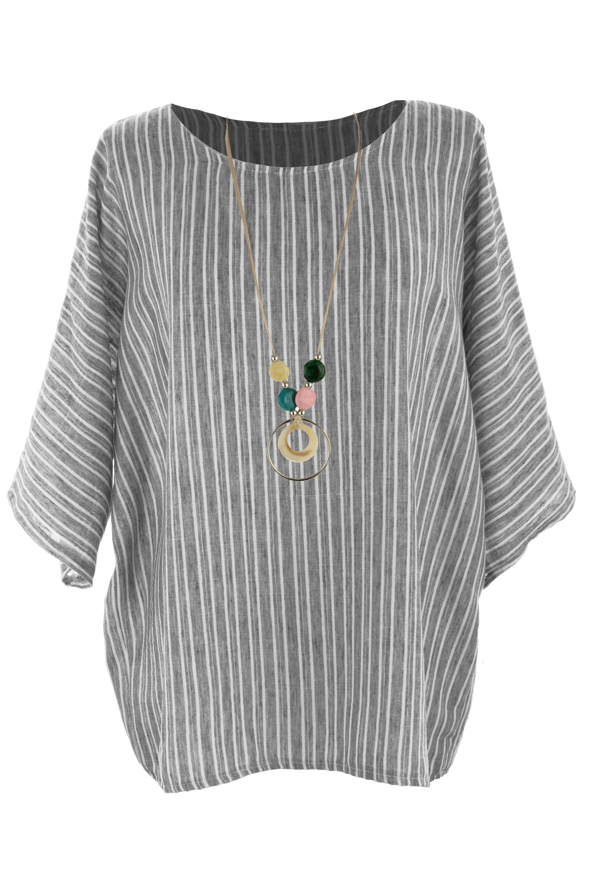The eye-catching vertical stripes create a flattering silhouette, while the generous one-size fit ensures a relaxed, comfortable feel that suits a range of body shapes.