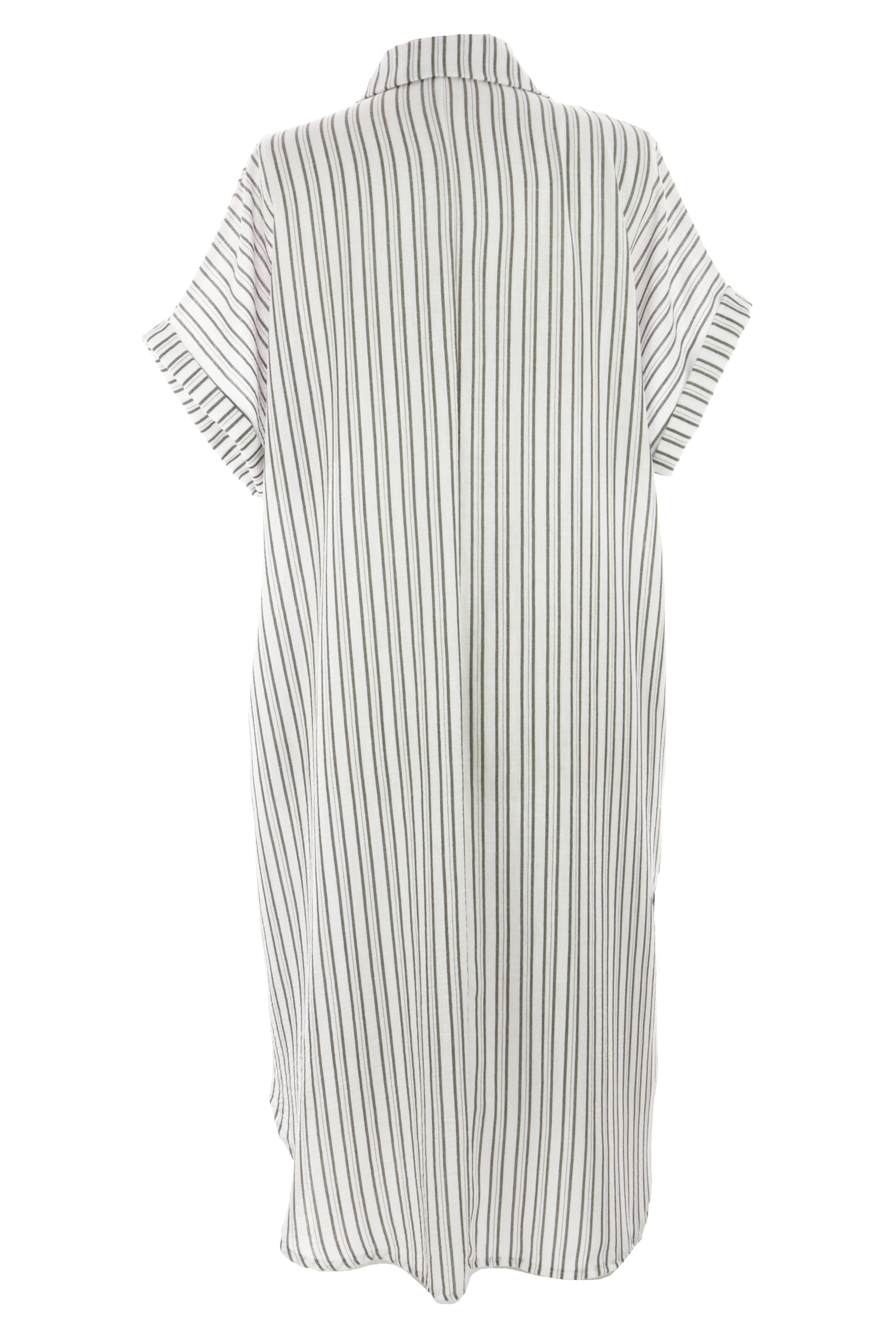 Crafted from cotton blend fabric, this dress features a classic vertical stripe pattern that lends a timeless, elegant touch to any occasion.