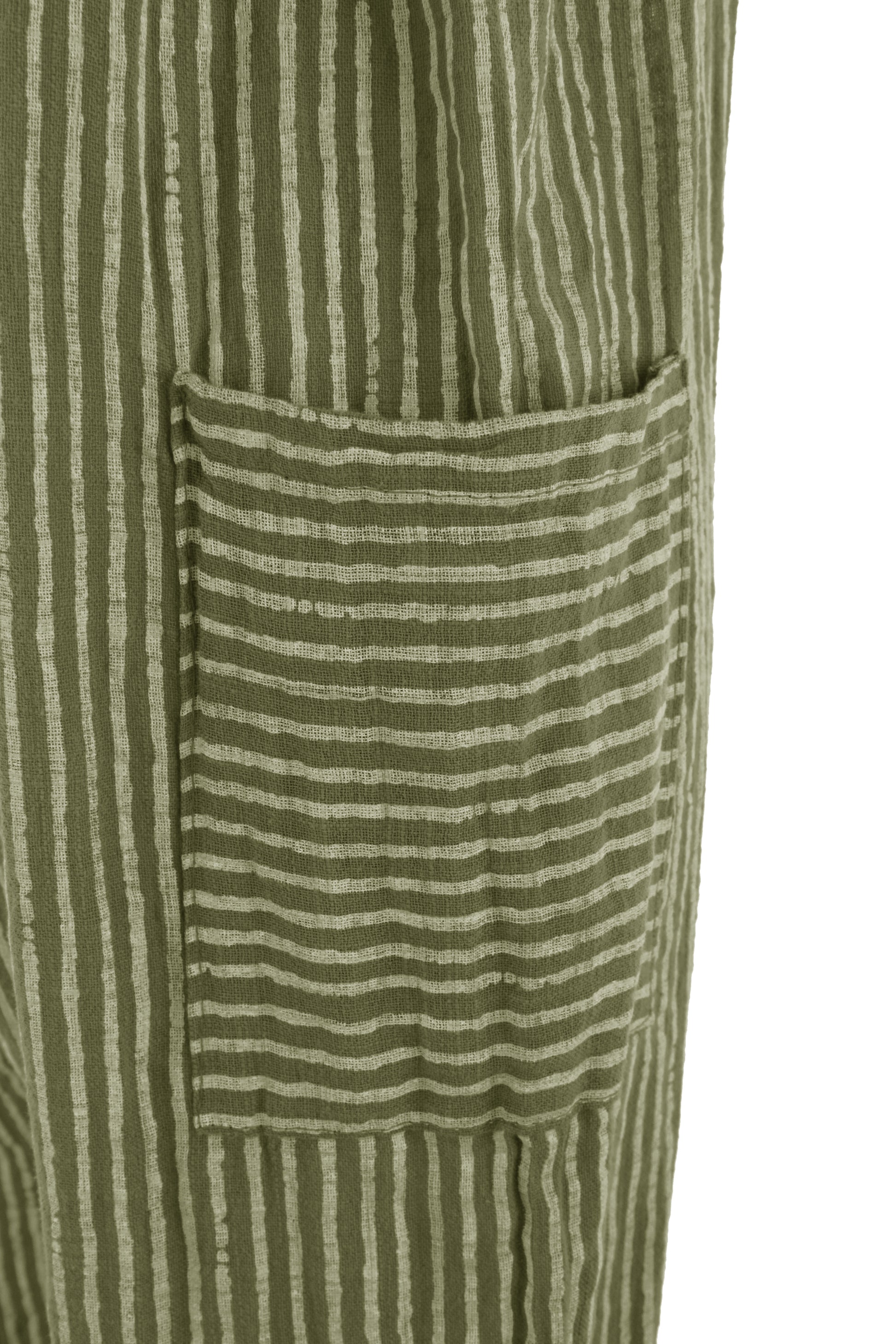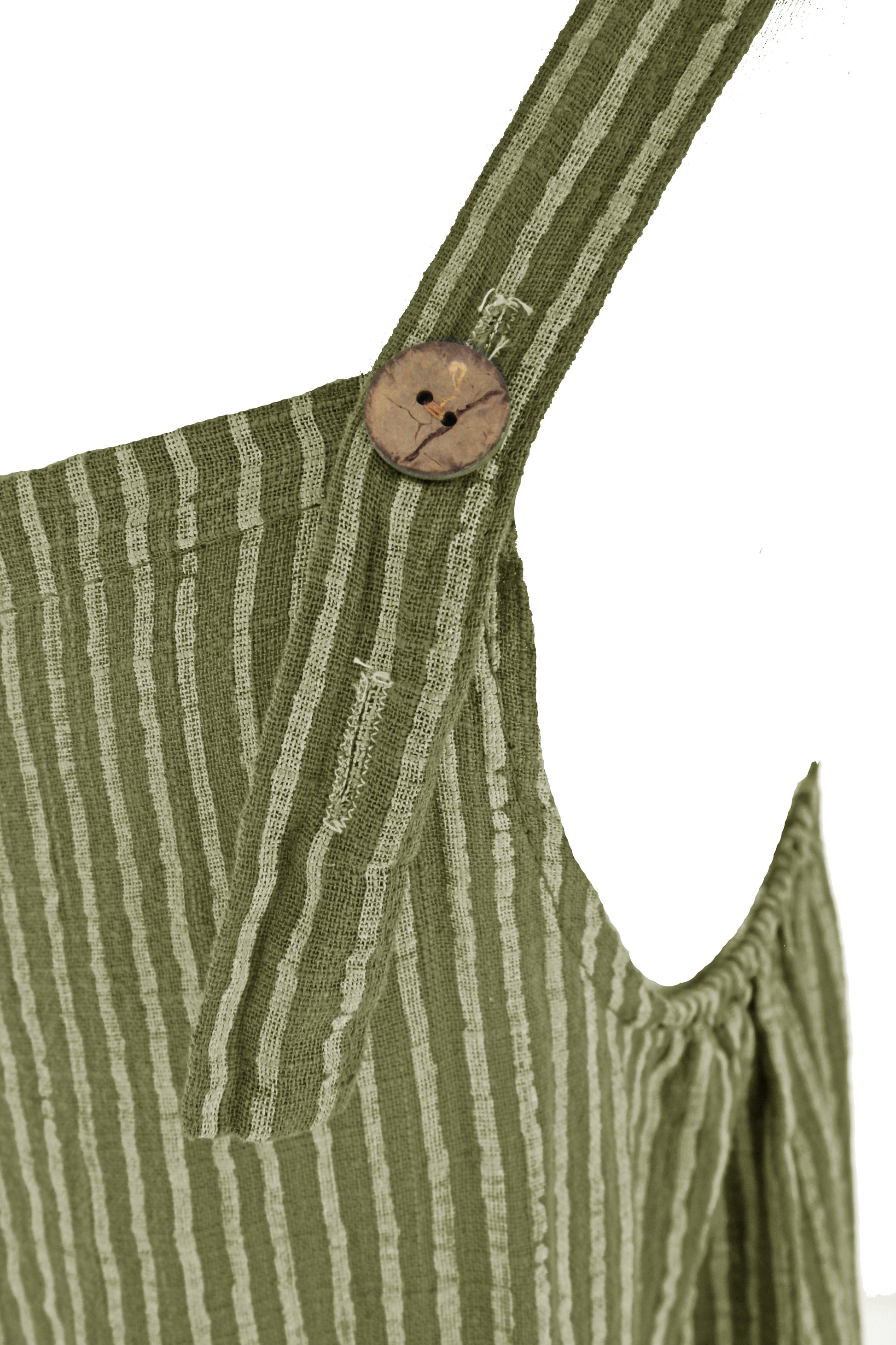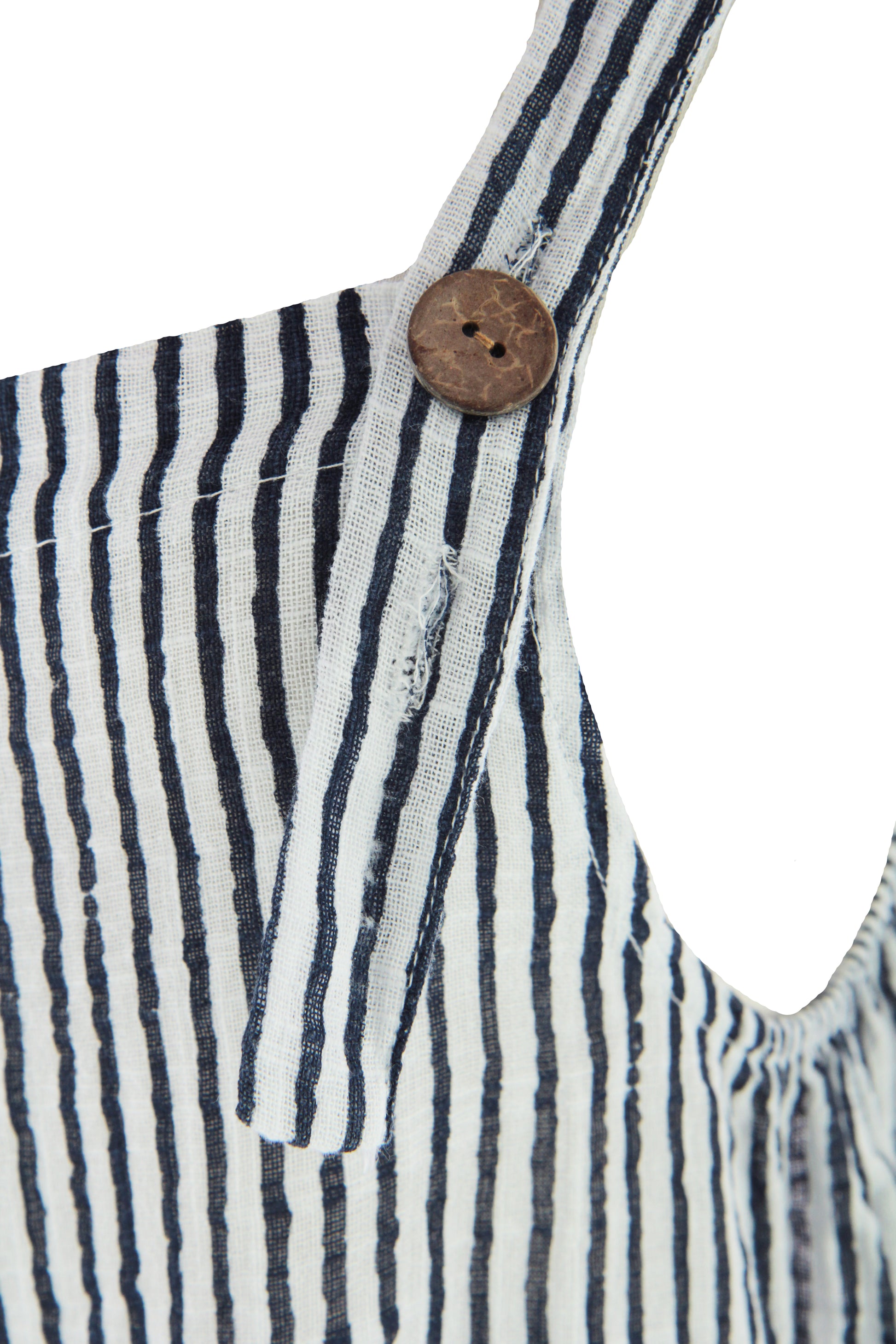 Crafted from lightweight, breathable cotton, these overalls feature a classic striped pattern.
