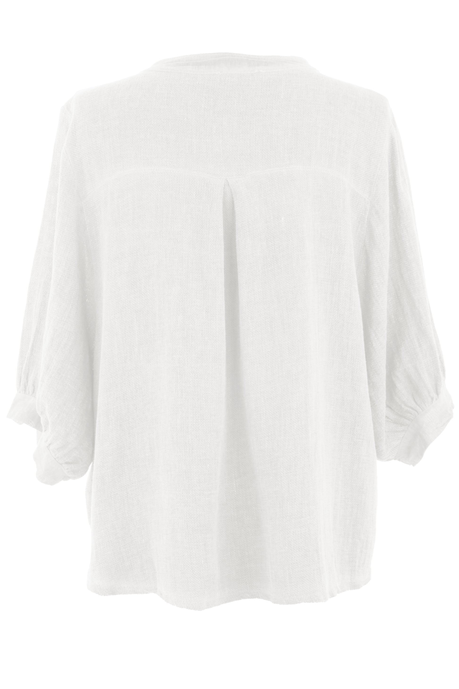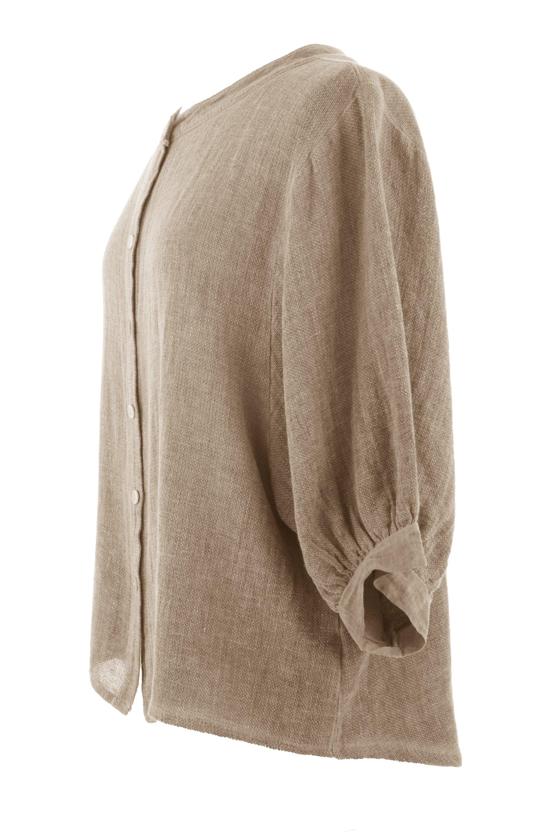 Crafted from breathable linen blend, this blouse offers both comfort and elegance.