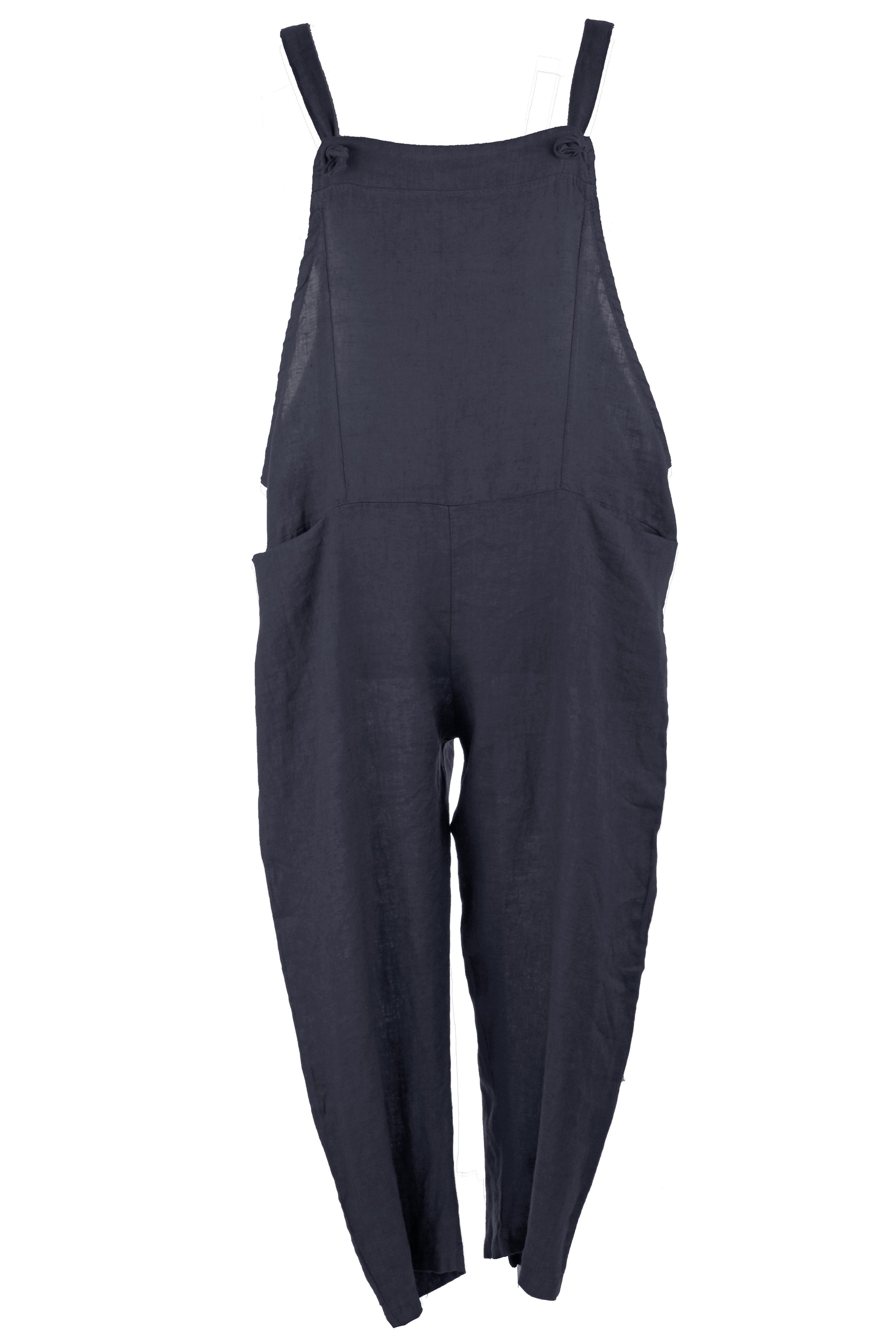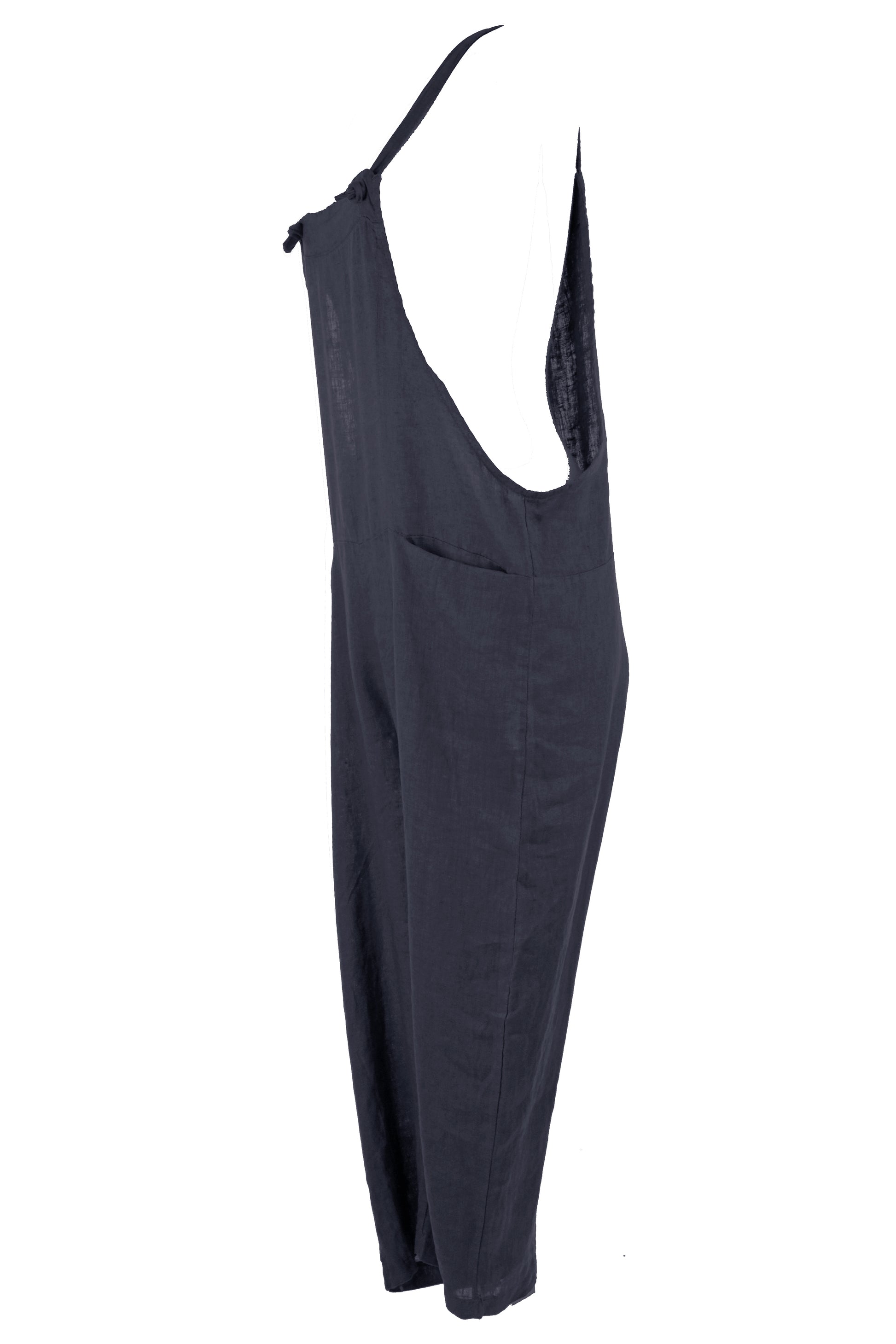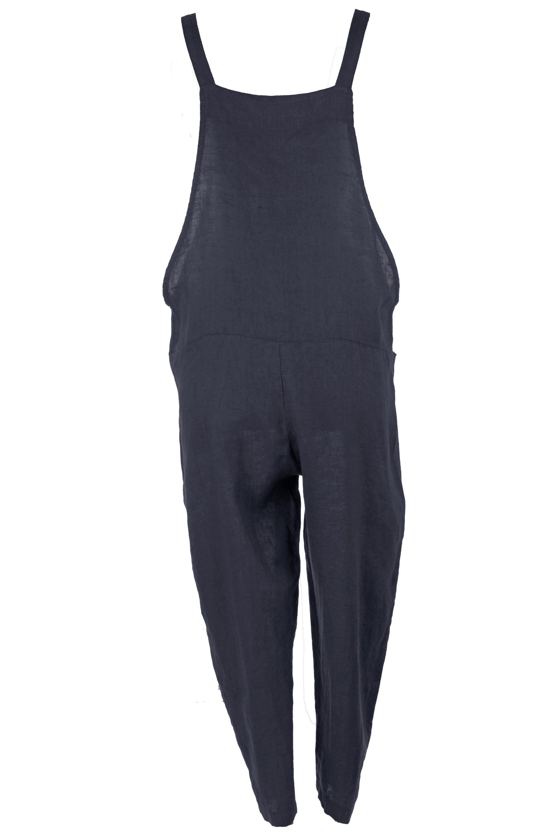 - Absolutely perfect for casual summer days, this ankle length pure linen dungarees comes in a comfy, relaxed cut with thick pinafore style straps with functional tie knot closure.