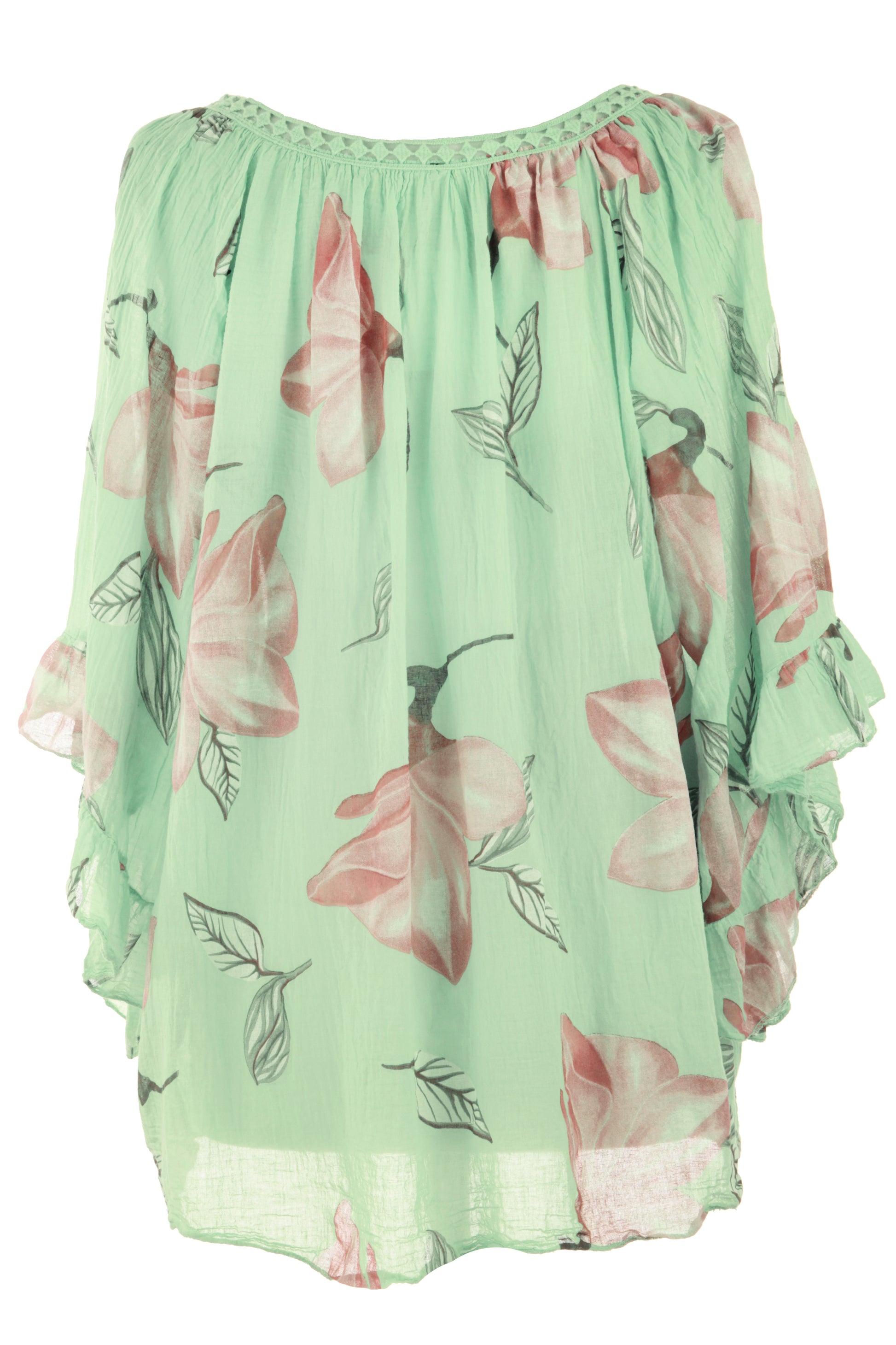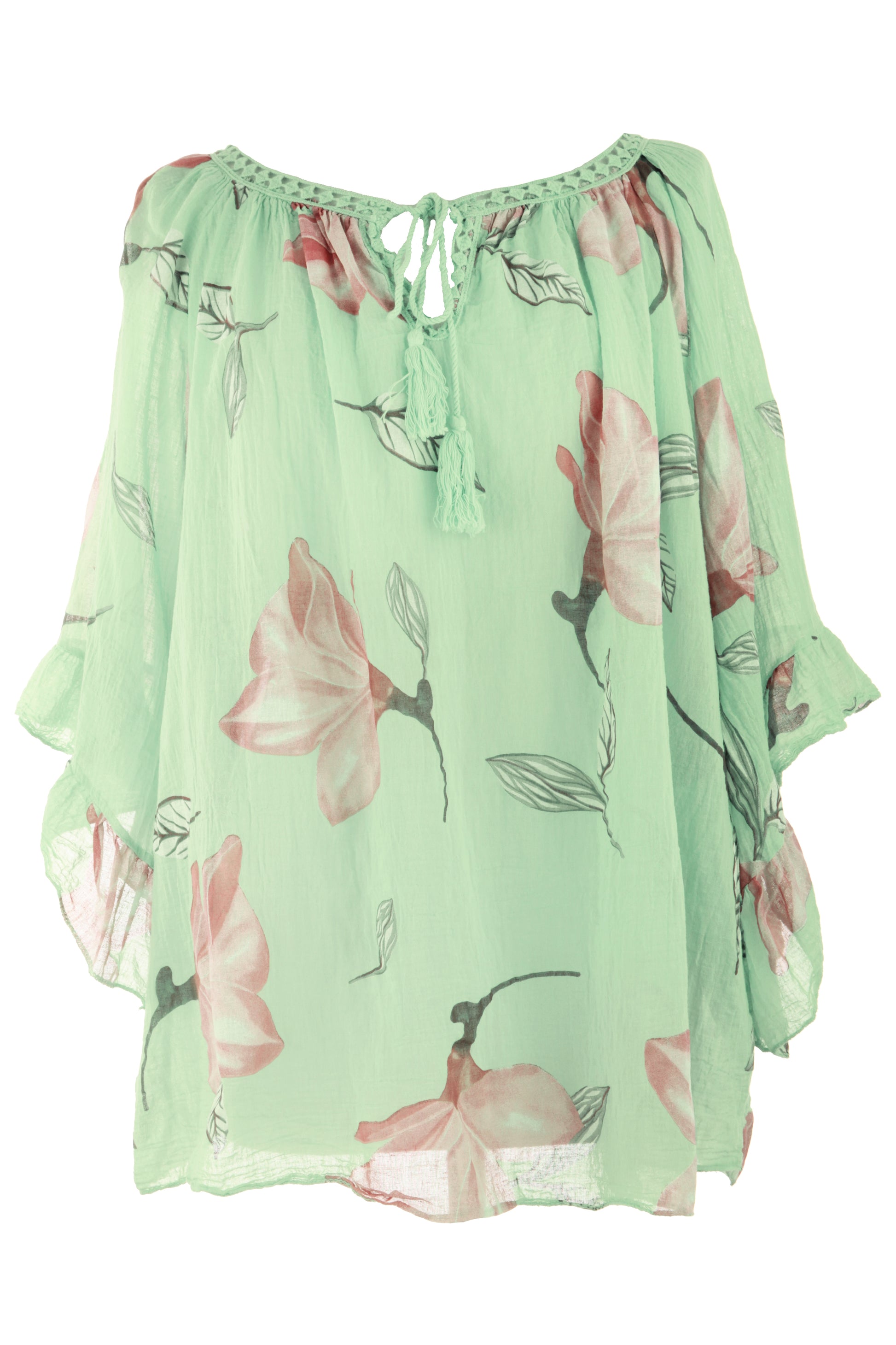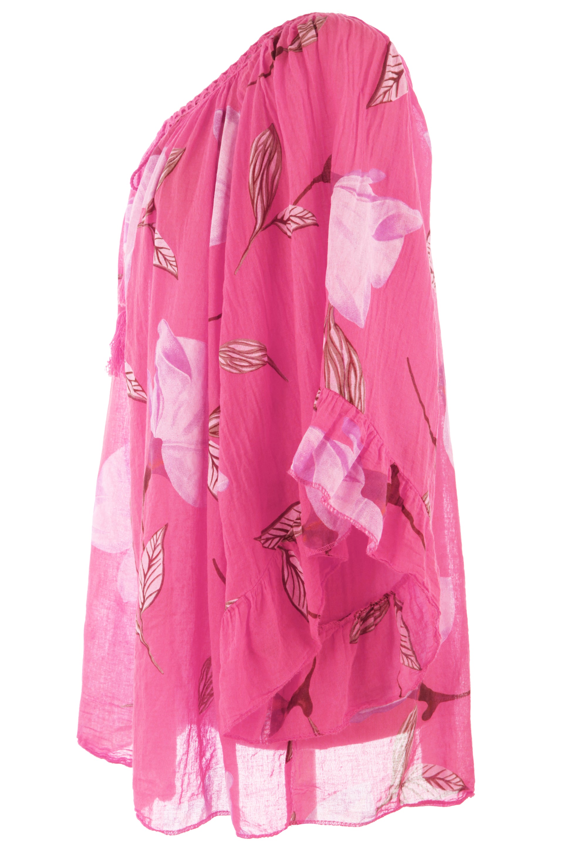 Embrace effortless Italian style with this stunning lagenlook blouse in a captivating floral print.