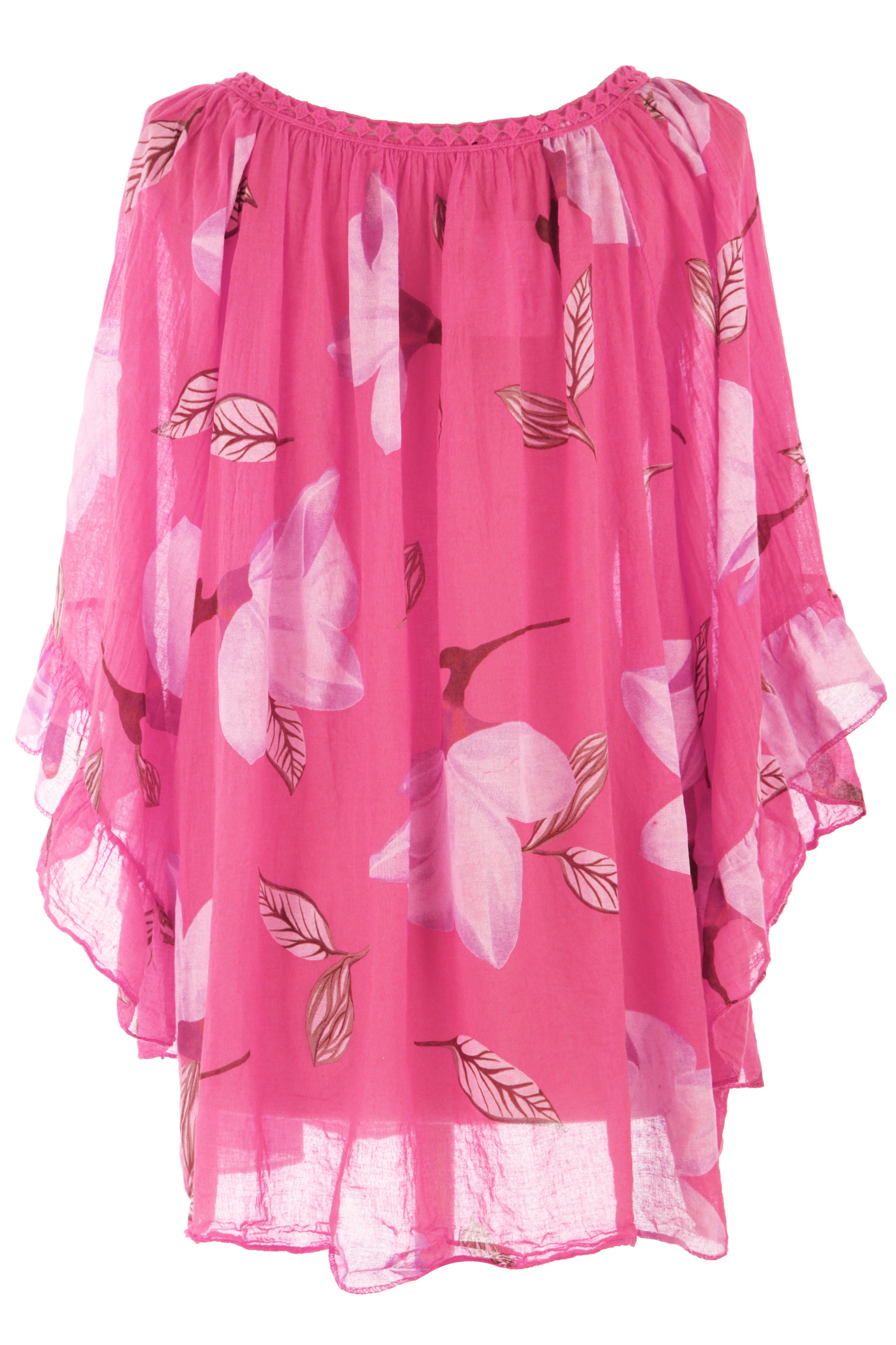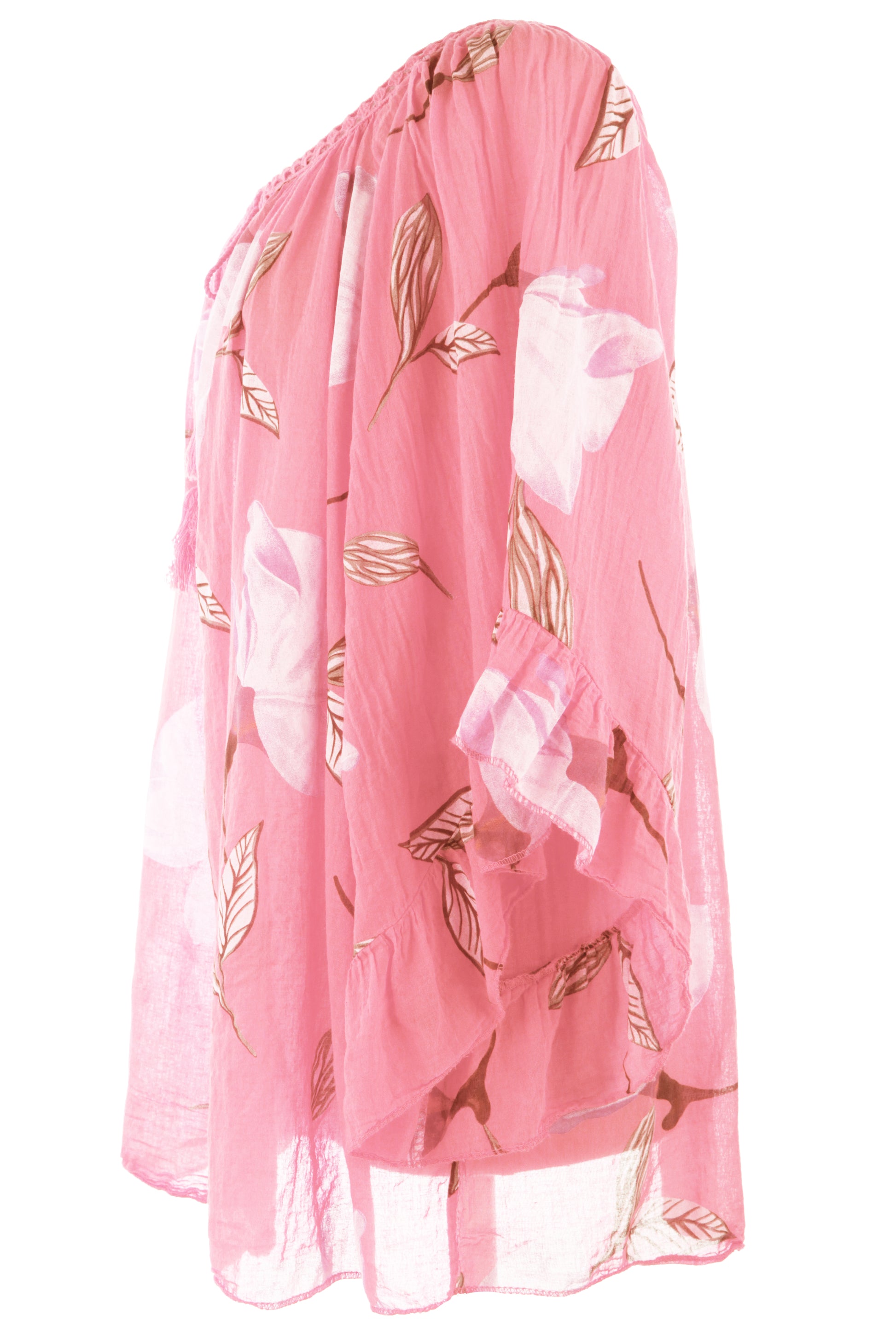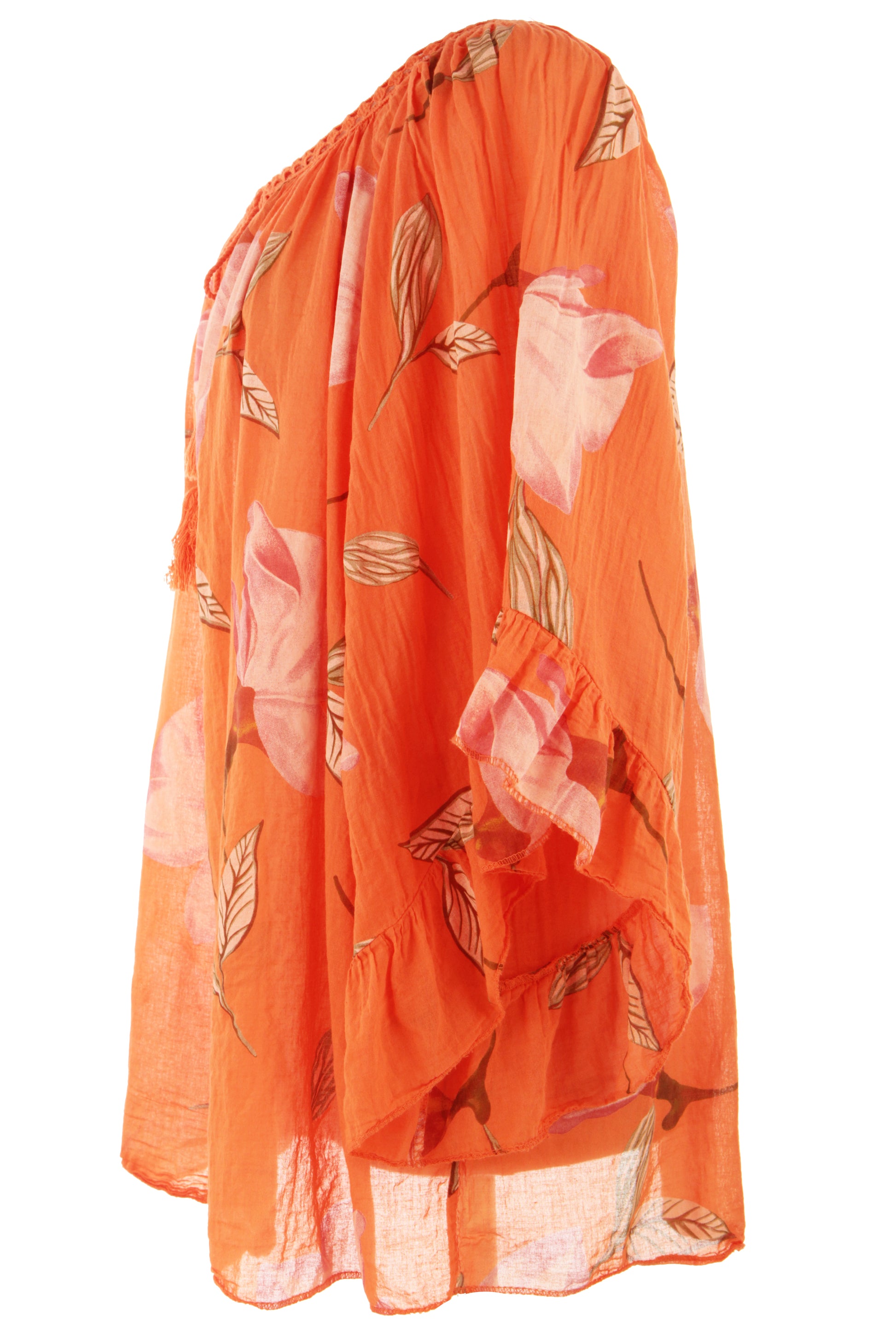 Embrace effortless Italian style with this stunning lagenlook blouse in a captivating floral print.