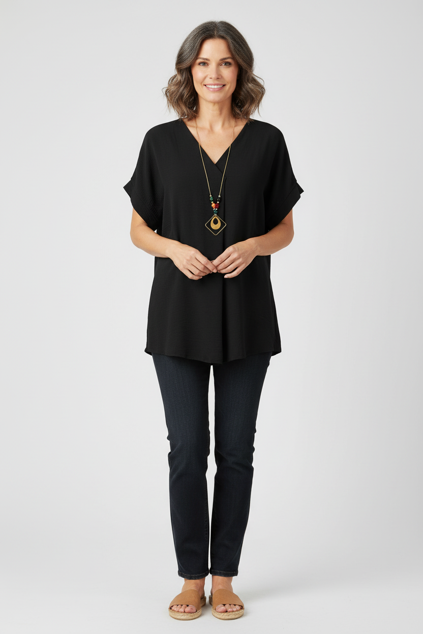 Elevate your wardrobe with this sophisticated Italian-style top featuring an elegant batwing sleeve design.